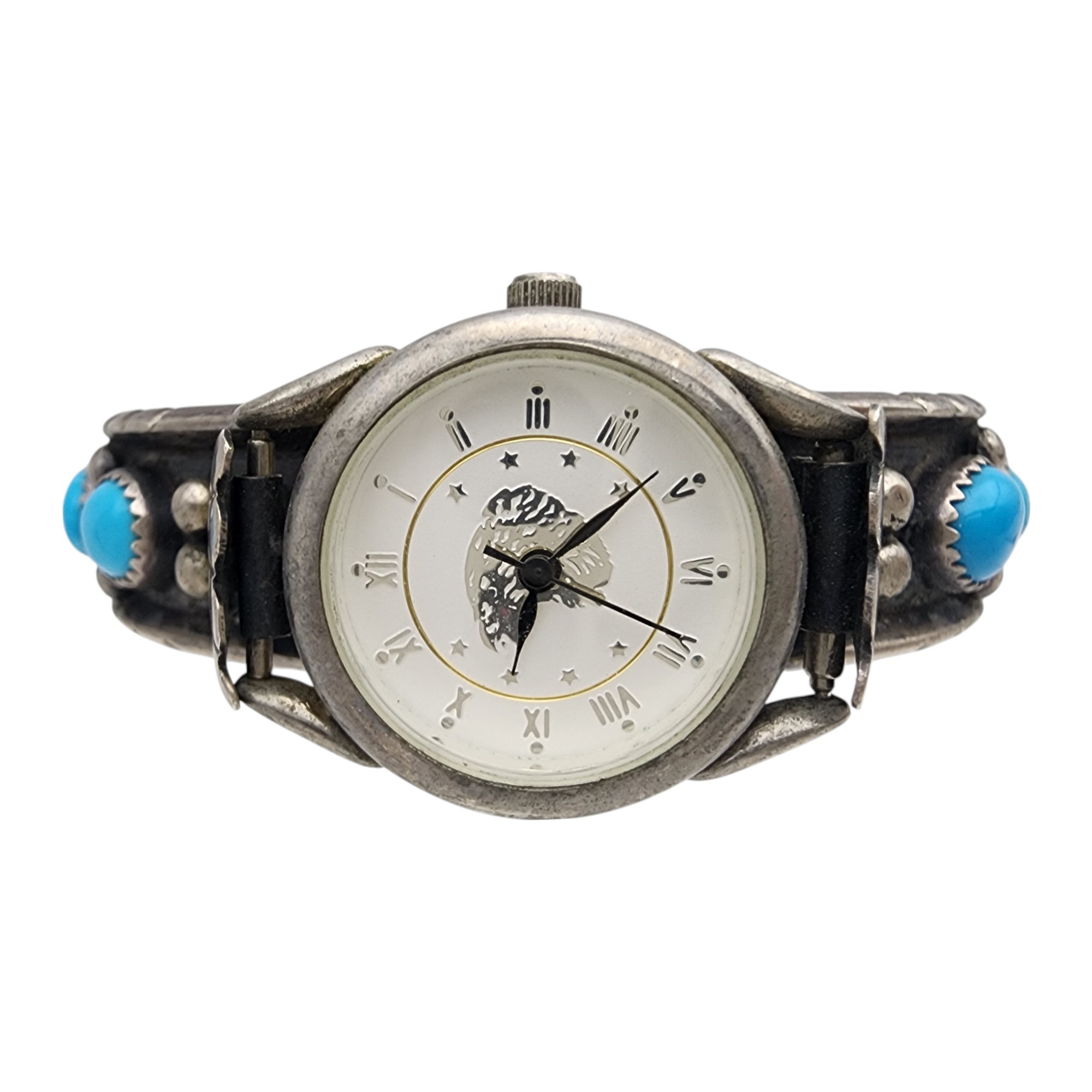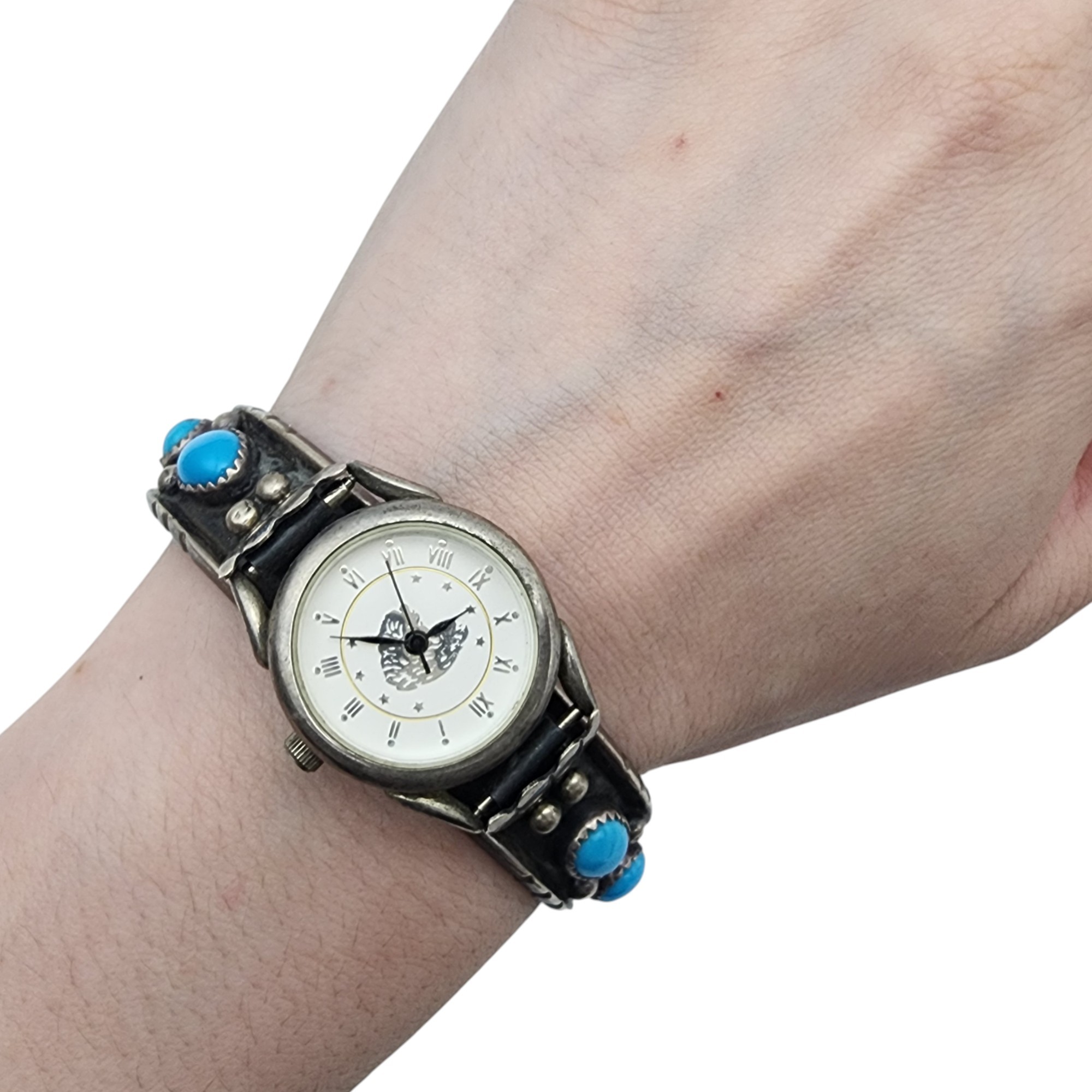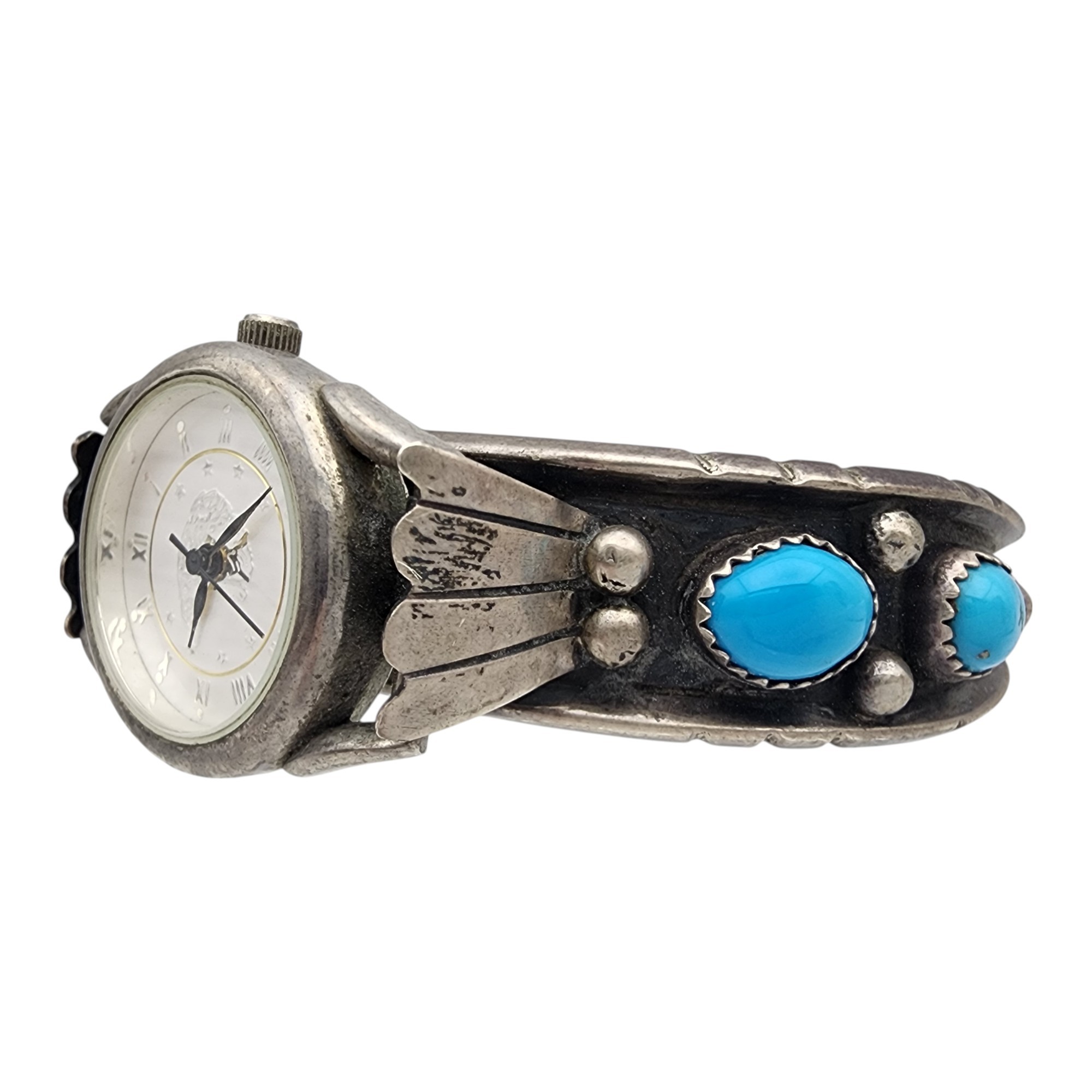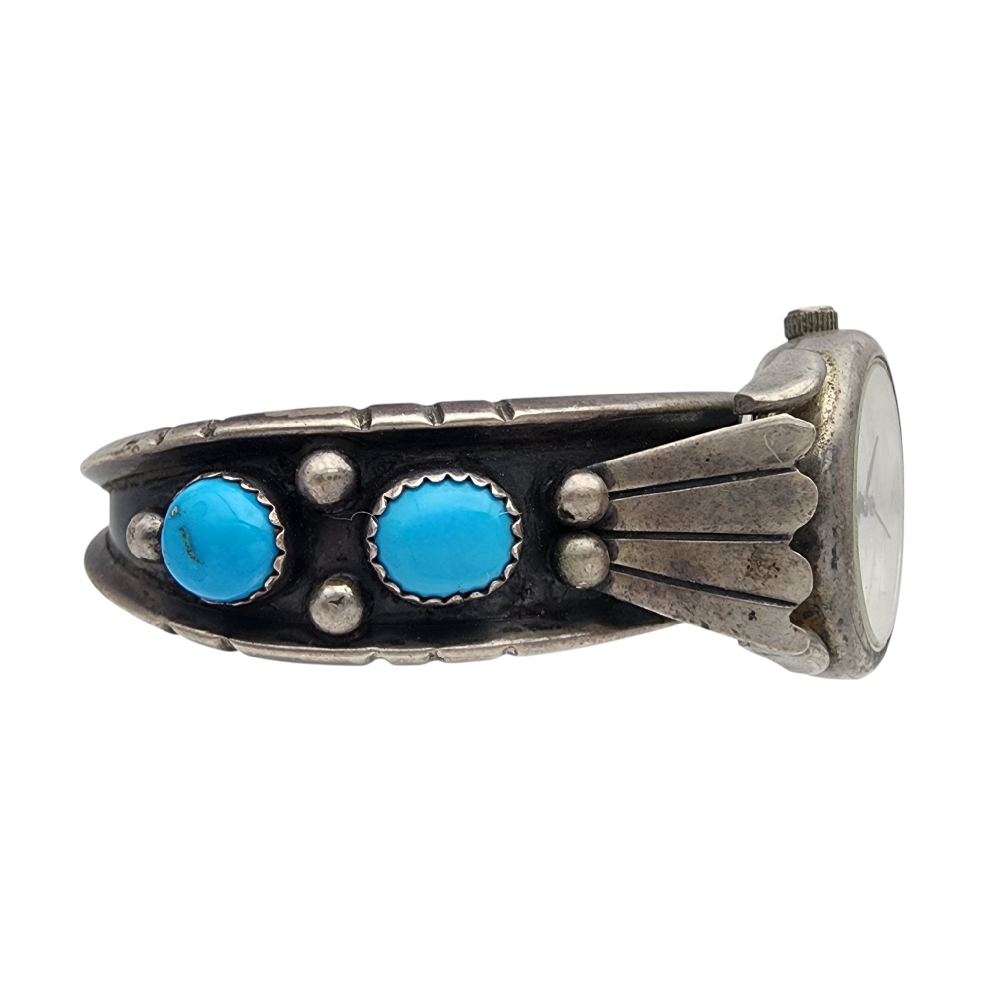 Signed Navajo Sterling Turquoise Watch Cuff Bracelet | 31.2g