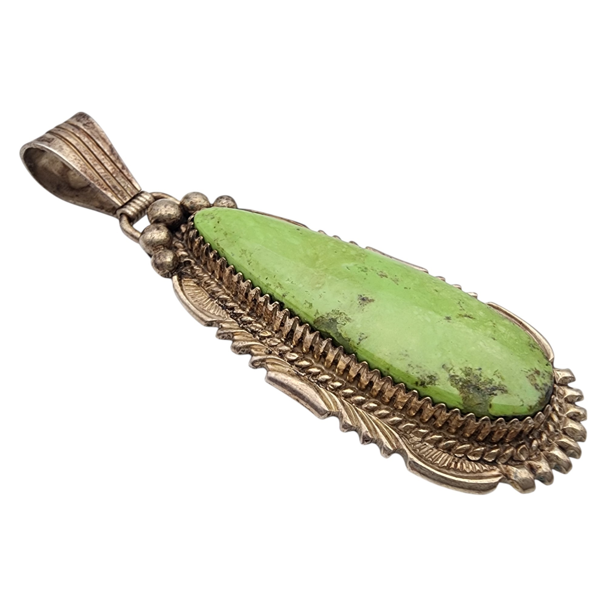 Big! Signed TB Navajo Sterling Gaspeite Pendant | 17.5g