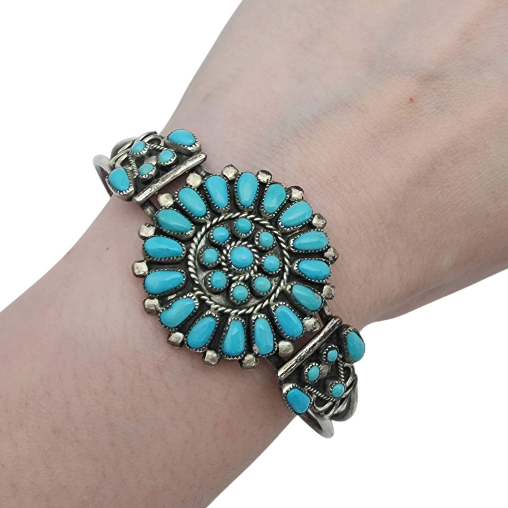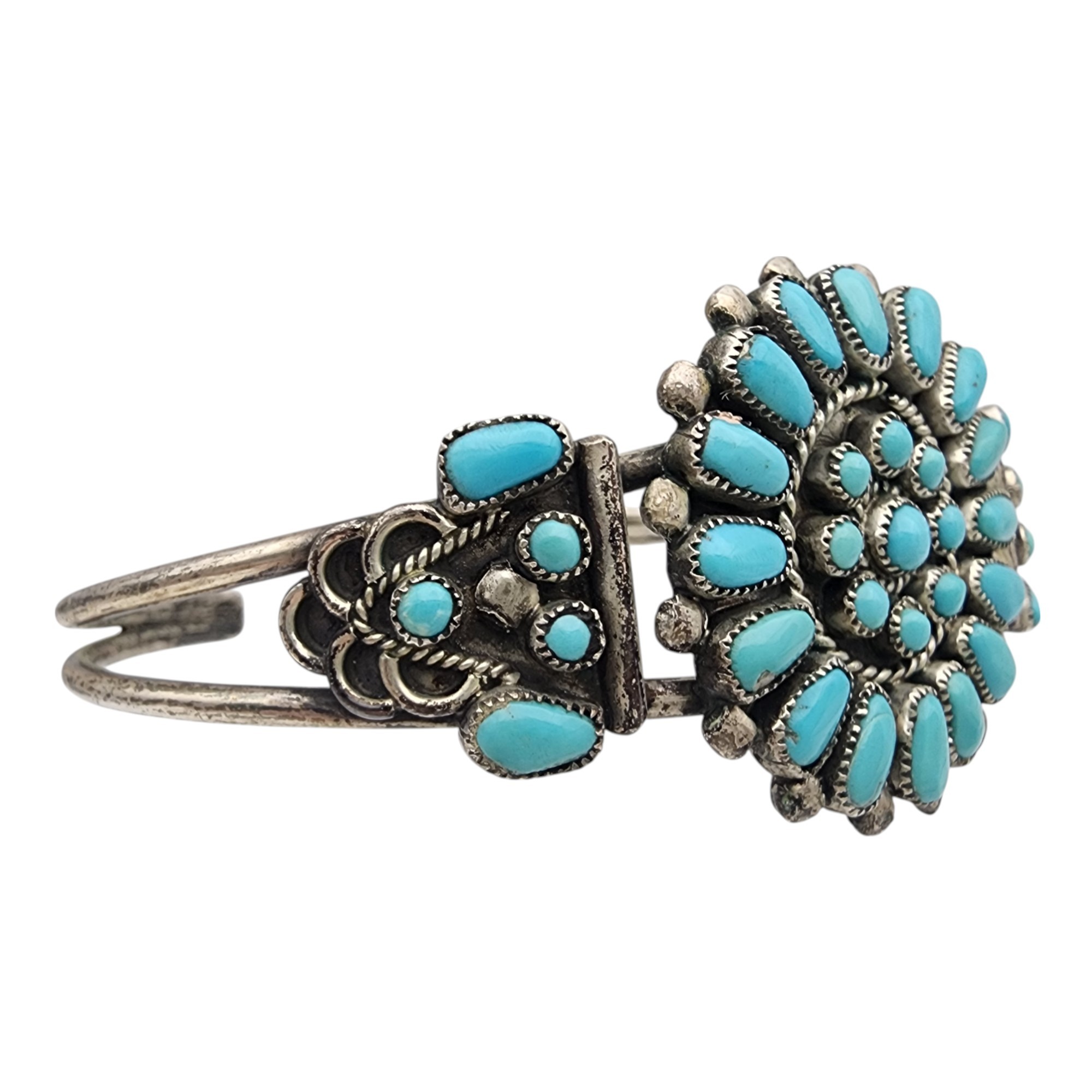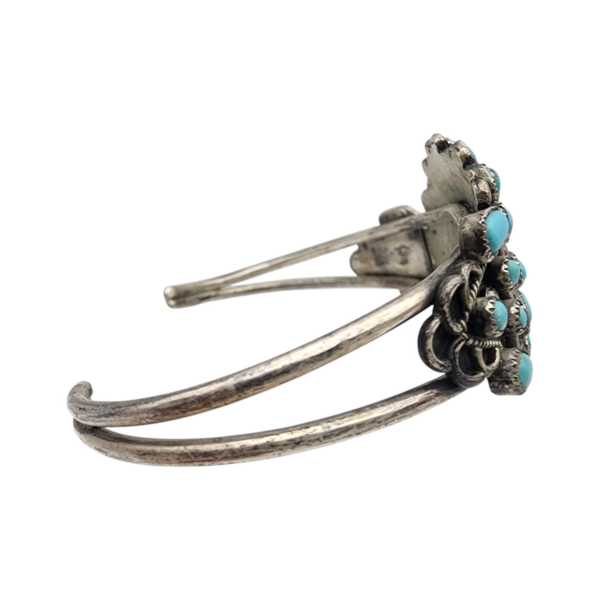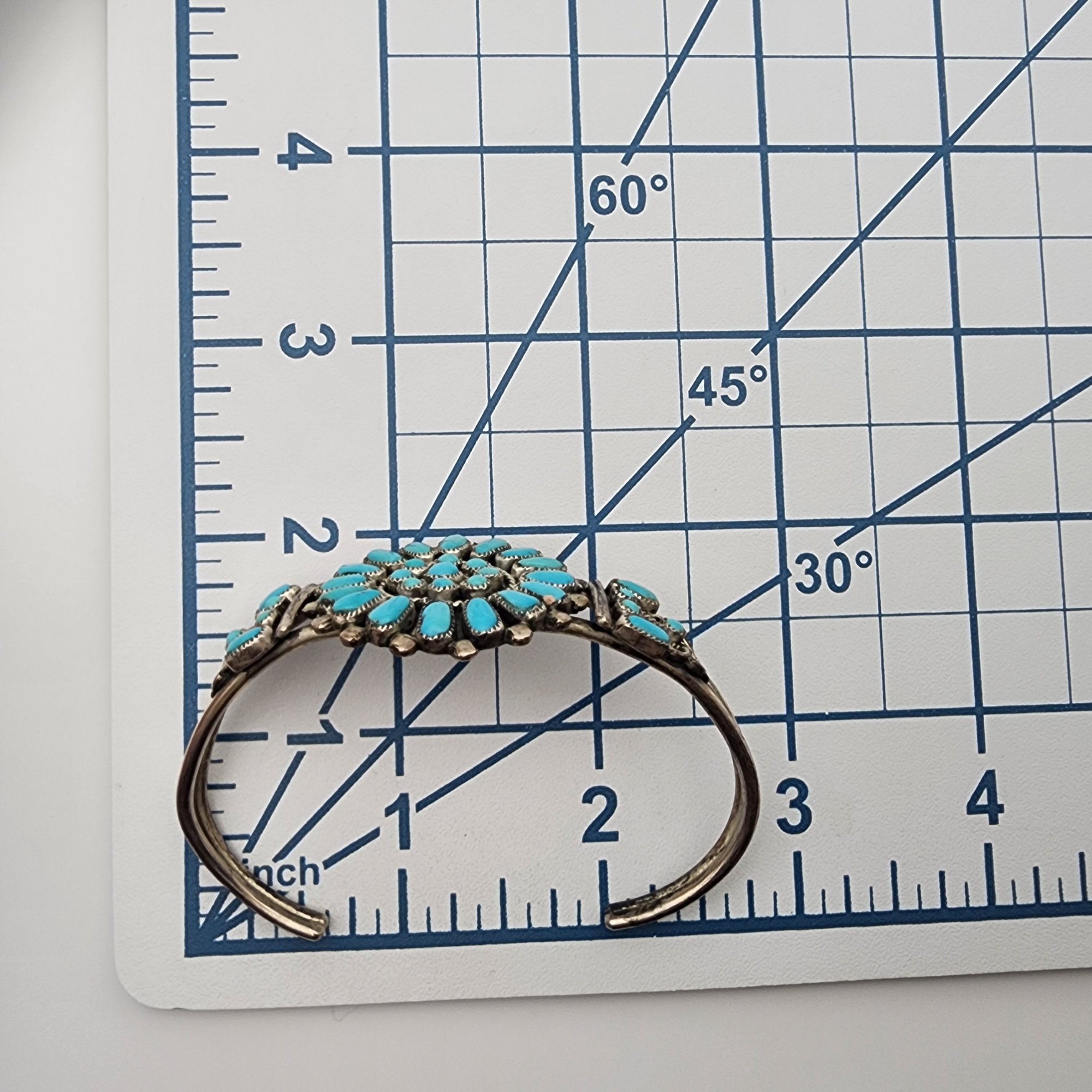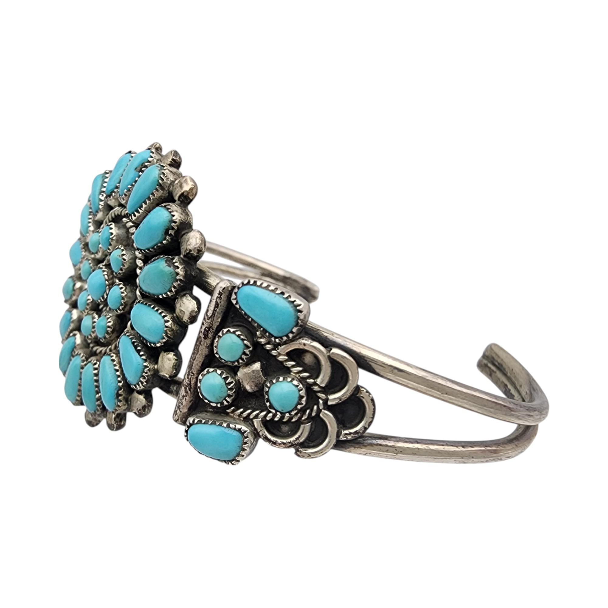 Vintage Navajo Sterling Turquoise Cluster Cuff Bracelet | 19.8g
