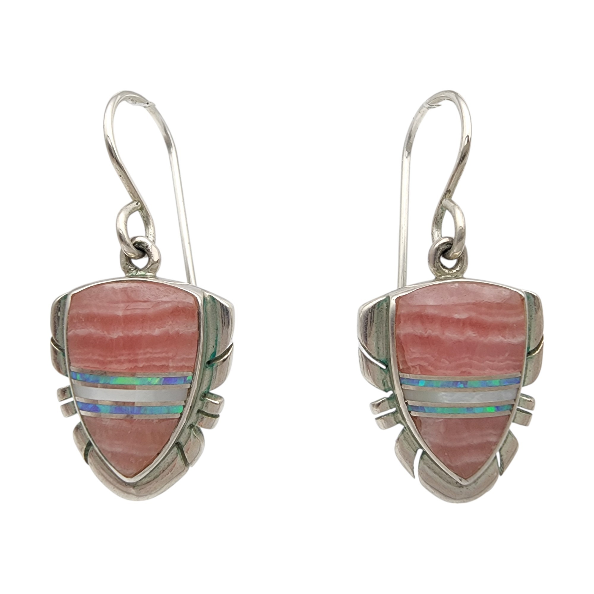 Albert Francisco Navajo Sterling Multistone (Rhodochrosite, Opal, Mother of Pearl) Inlay Earrings | 5.2g