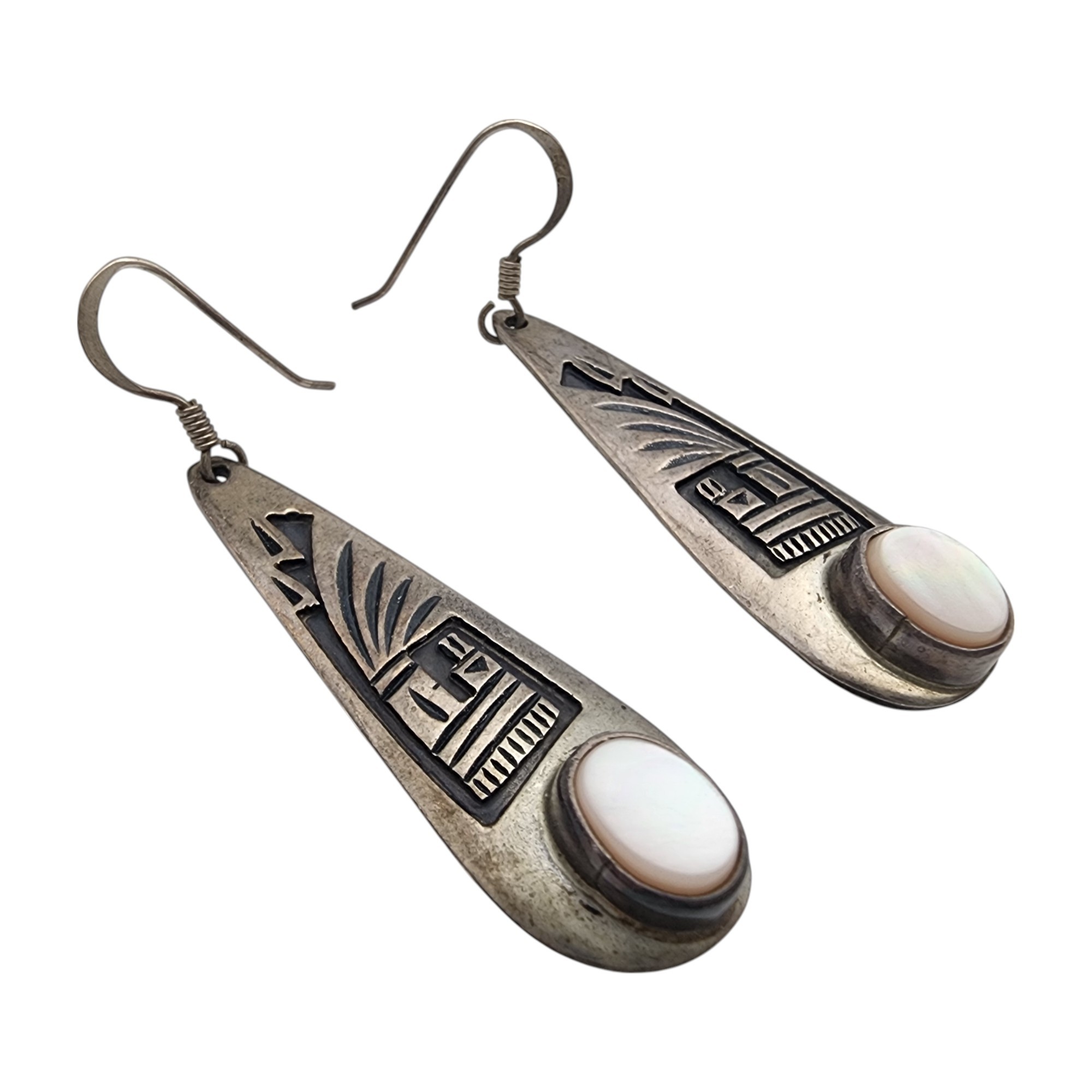 Signed Navajo Sterling Mother of Pearl Overlay Earrings