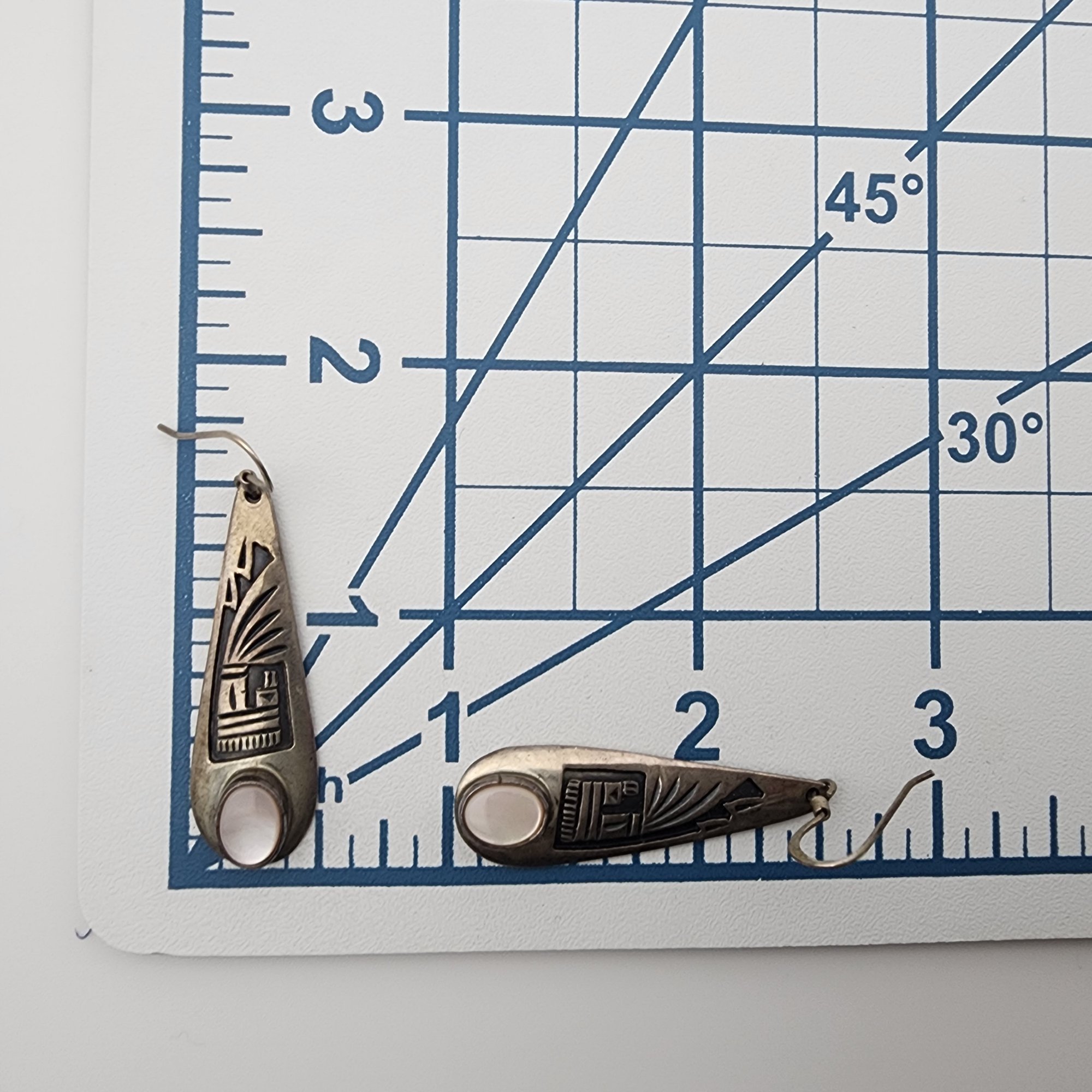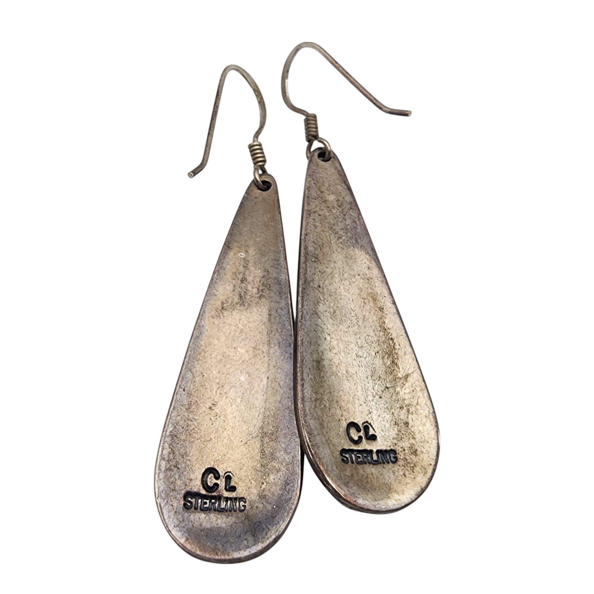 Signed CL Navajo Sterling Mother of Pearl Overlay Earrings | 8.1g