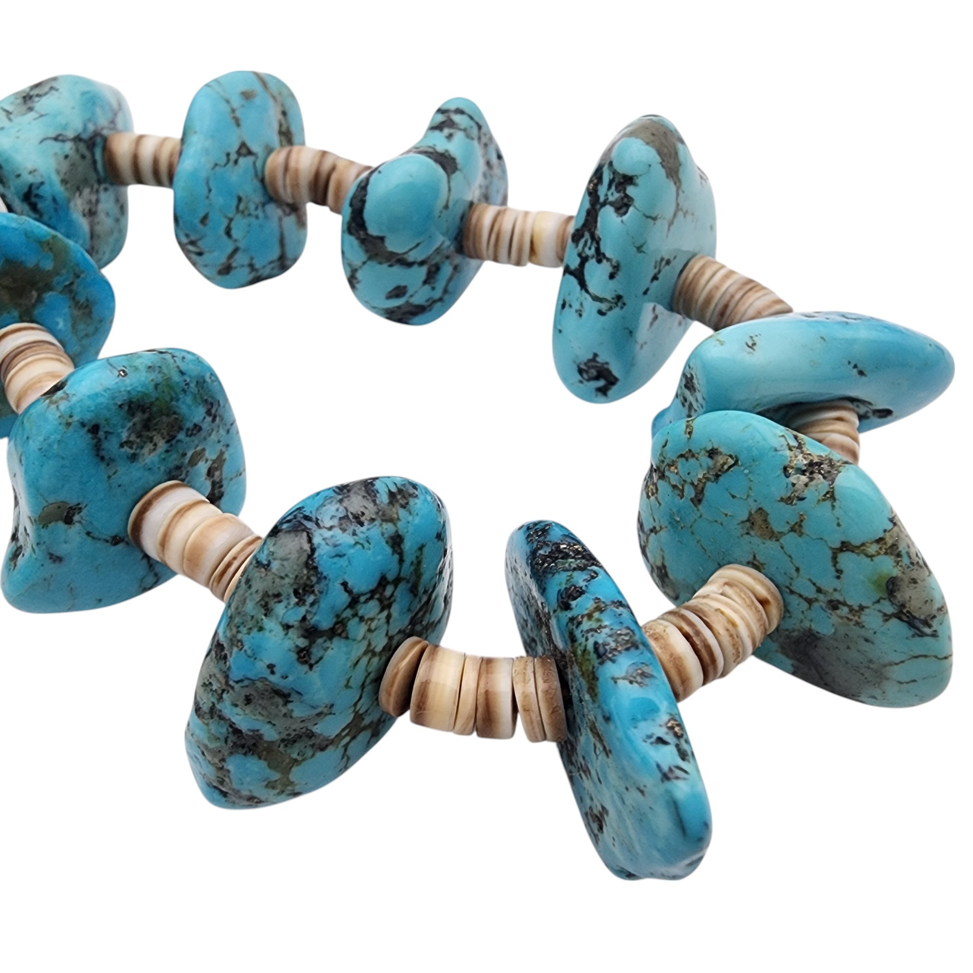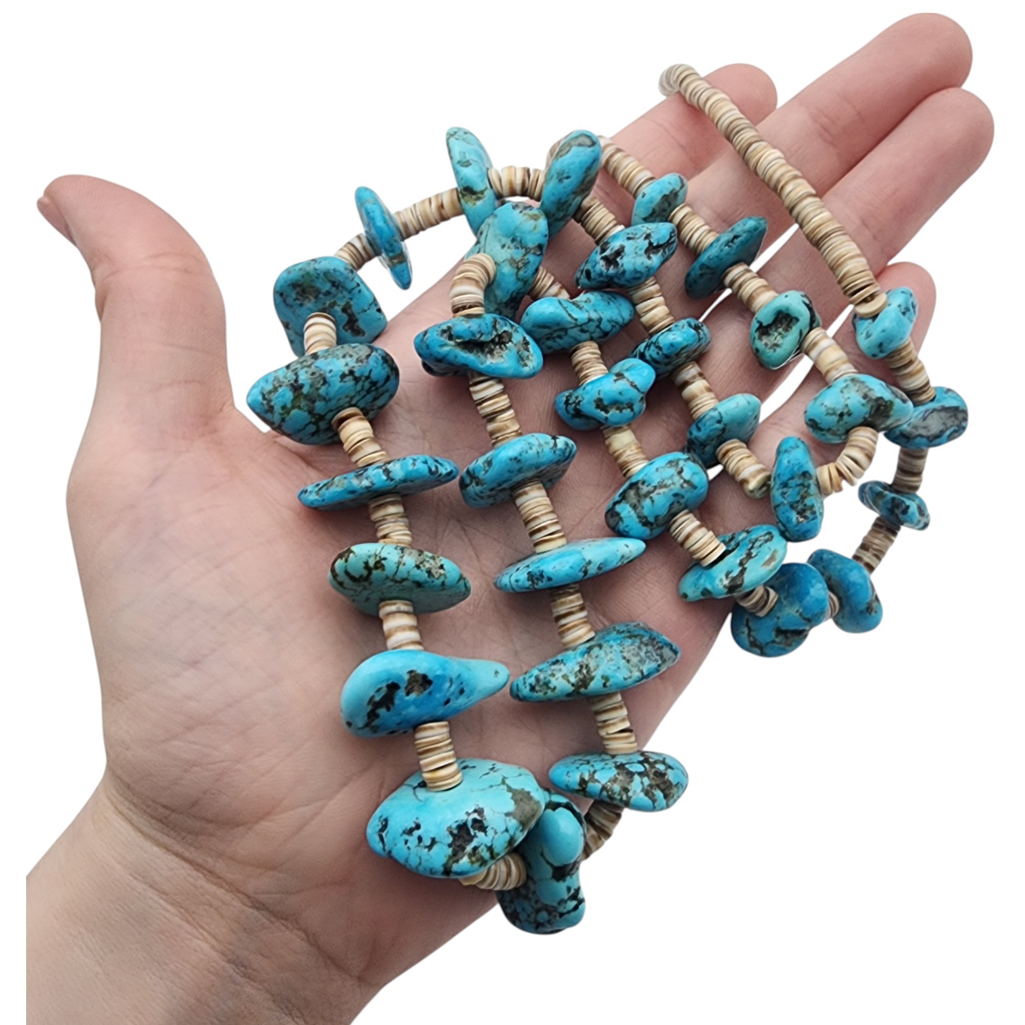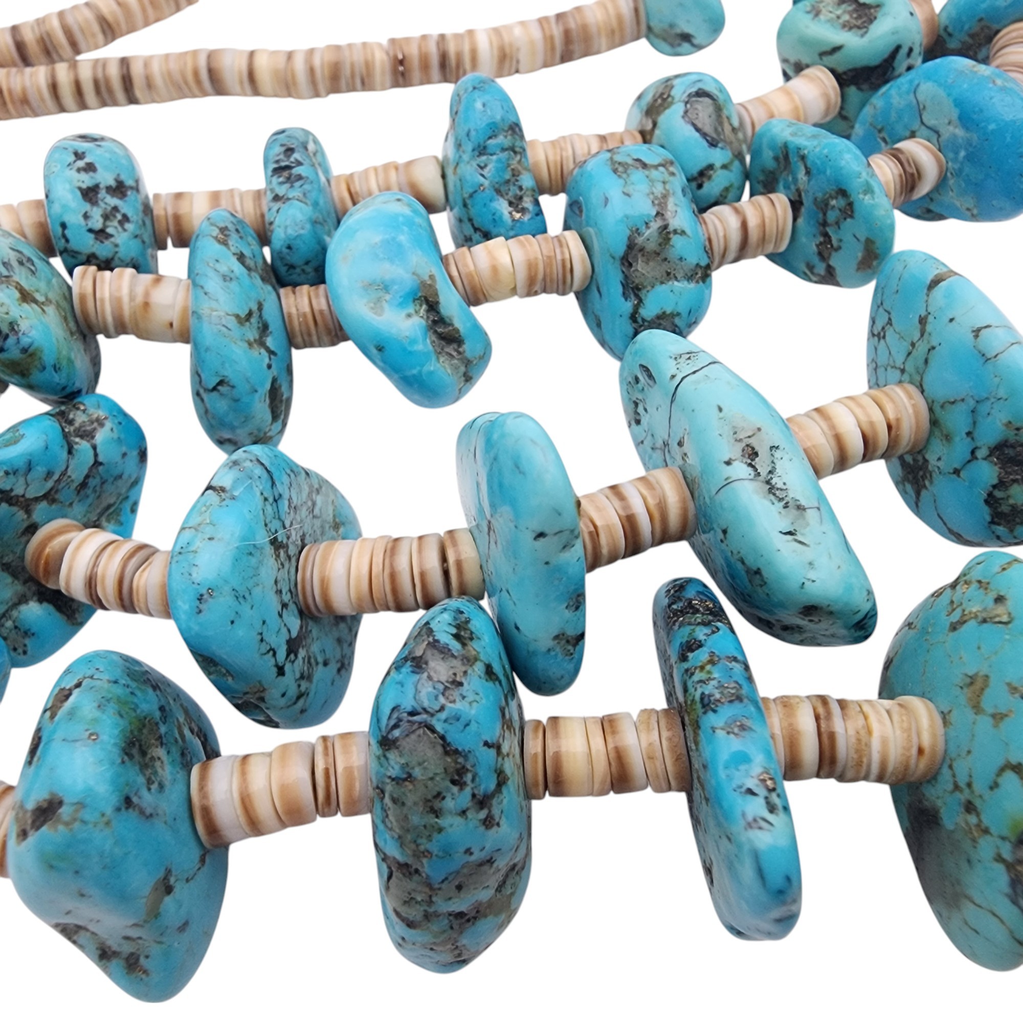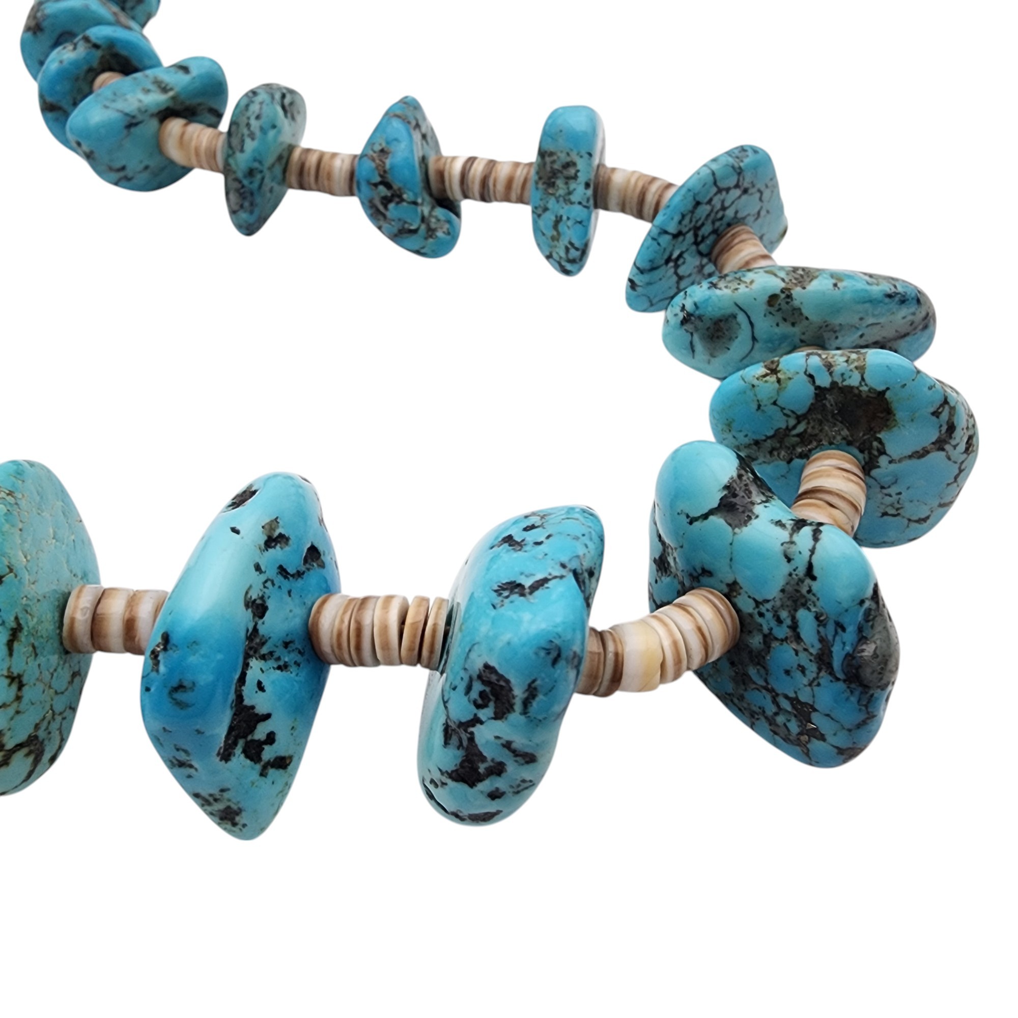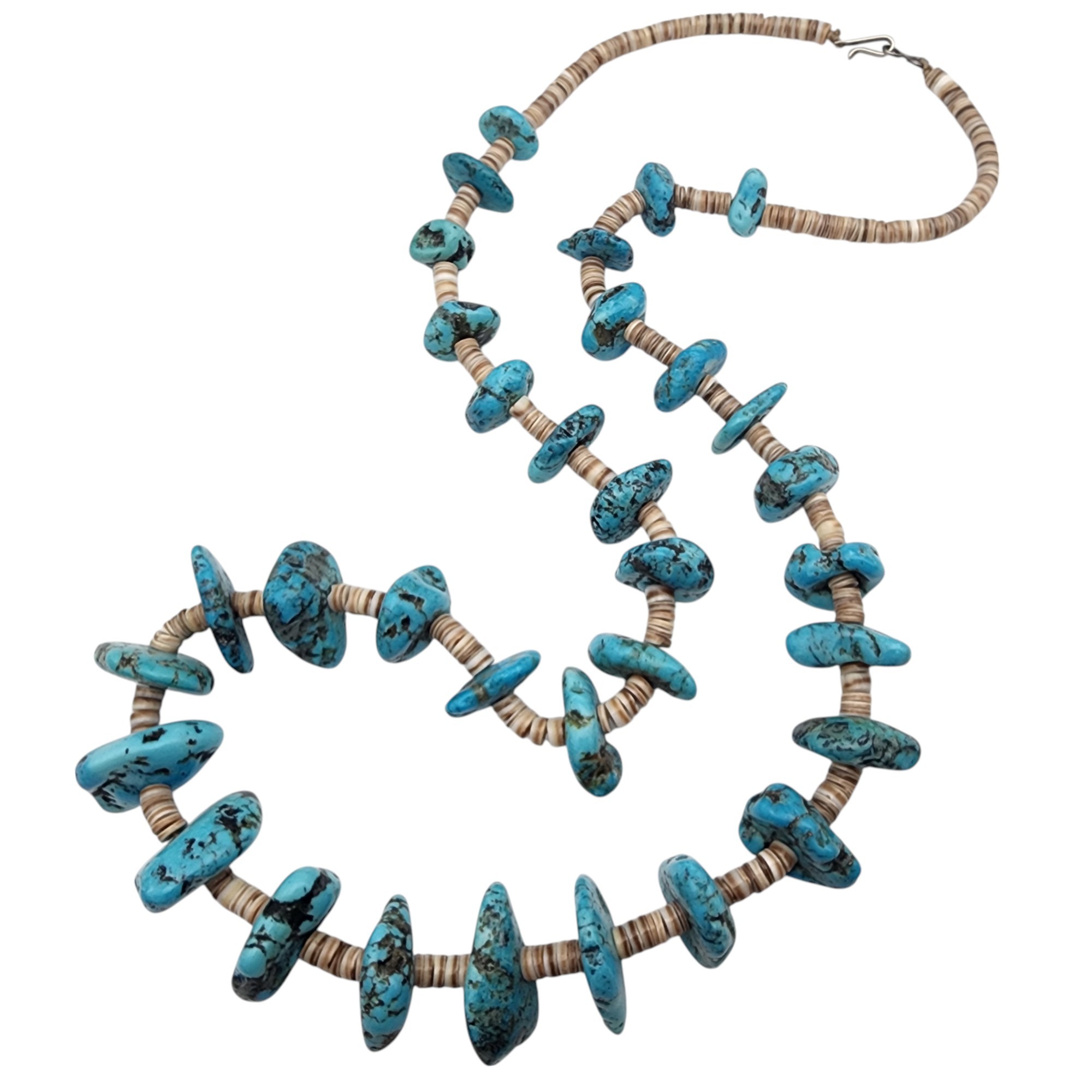 Amazing!! Vintage Santo Domingo Sterling Turquoise Chunk Heishi Necklace | 109g | Notes: Sterling clasp, necklace strung on twine/string