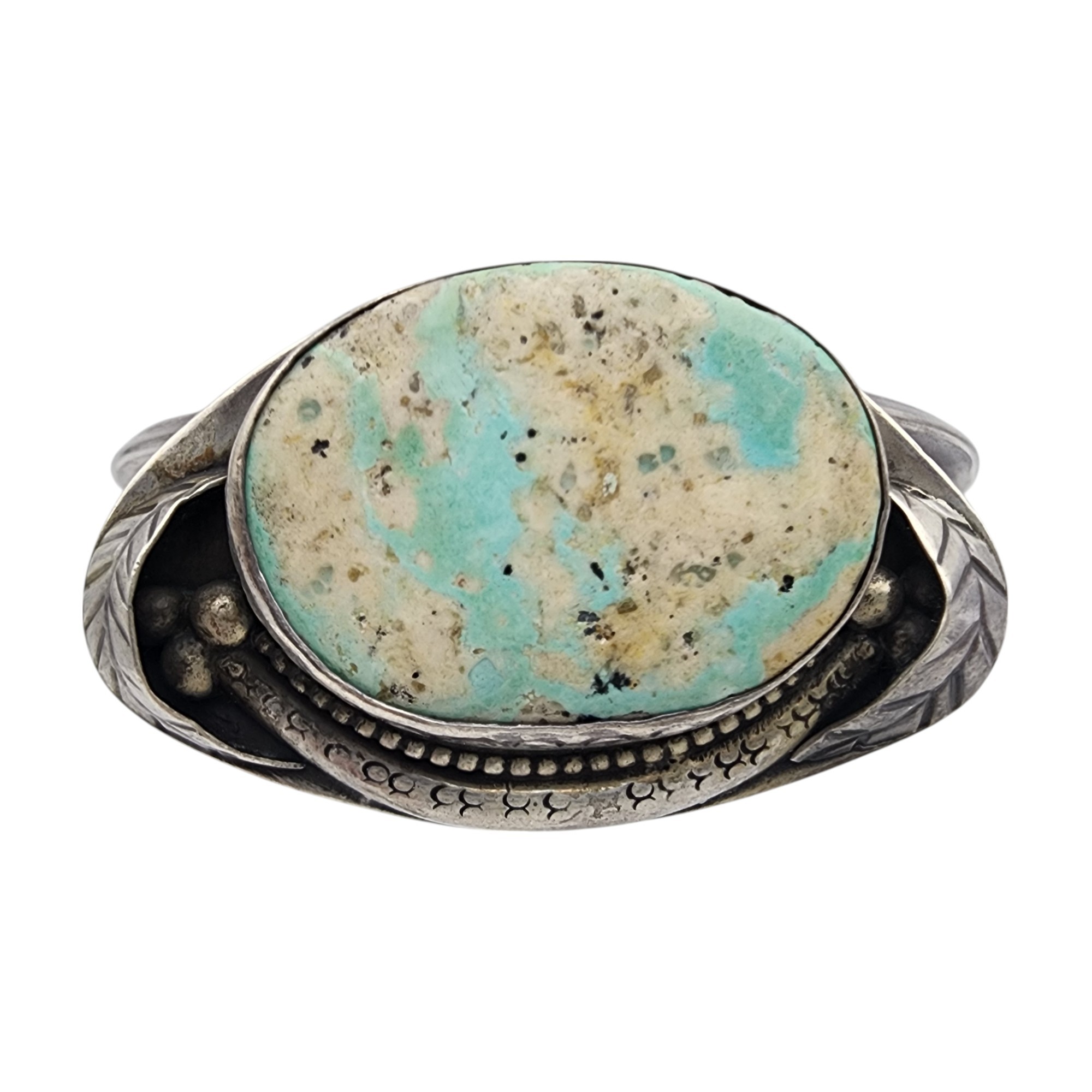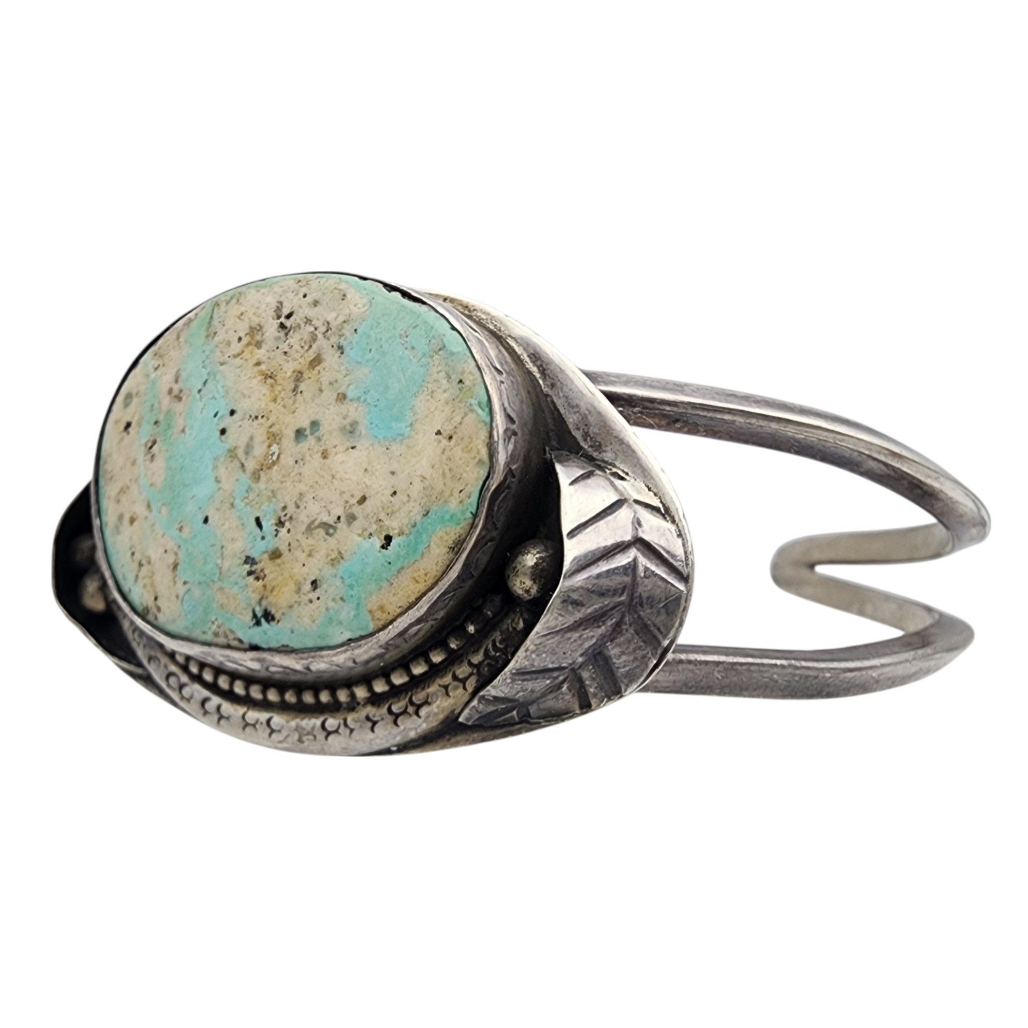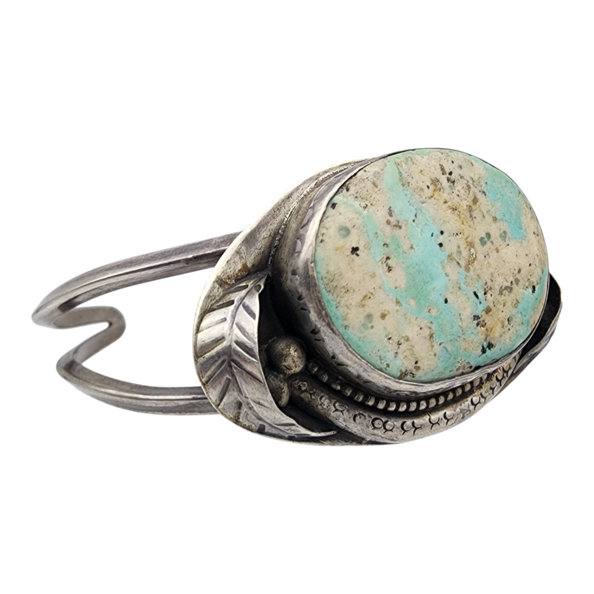 Vintage Navajo Sterling Turquoise (or possibly variscite) Cuff Bracelet | 31.4g