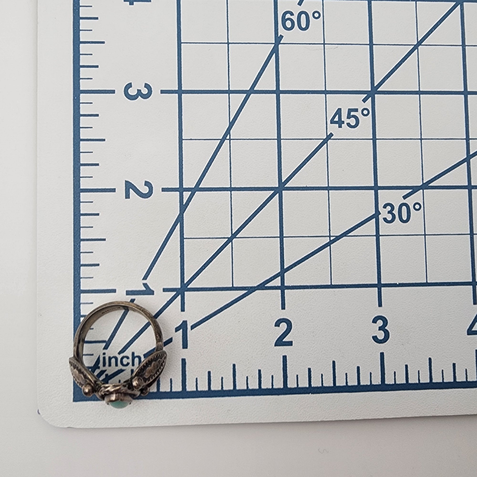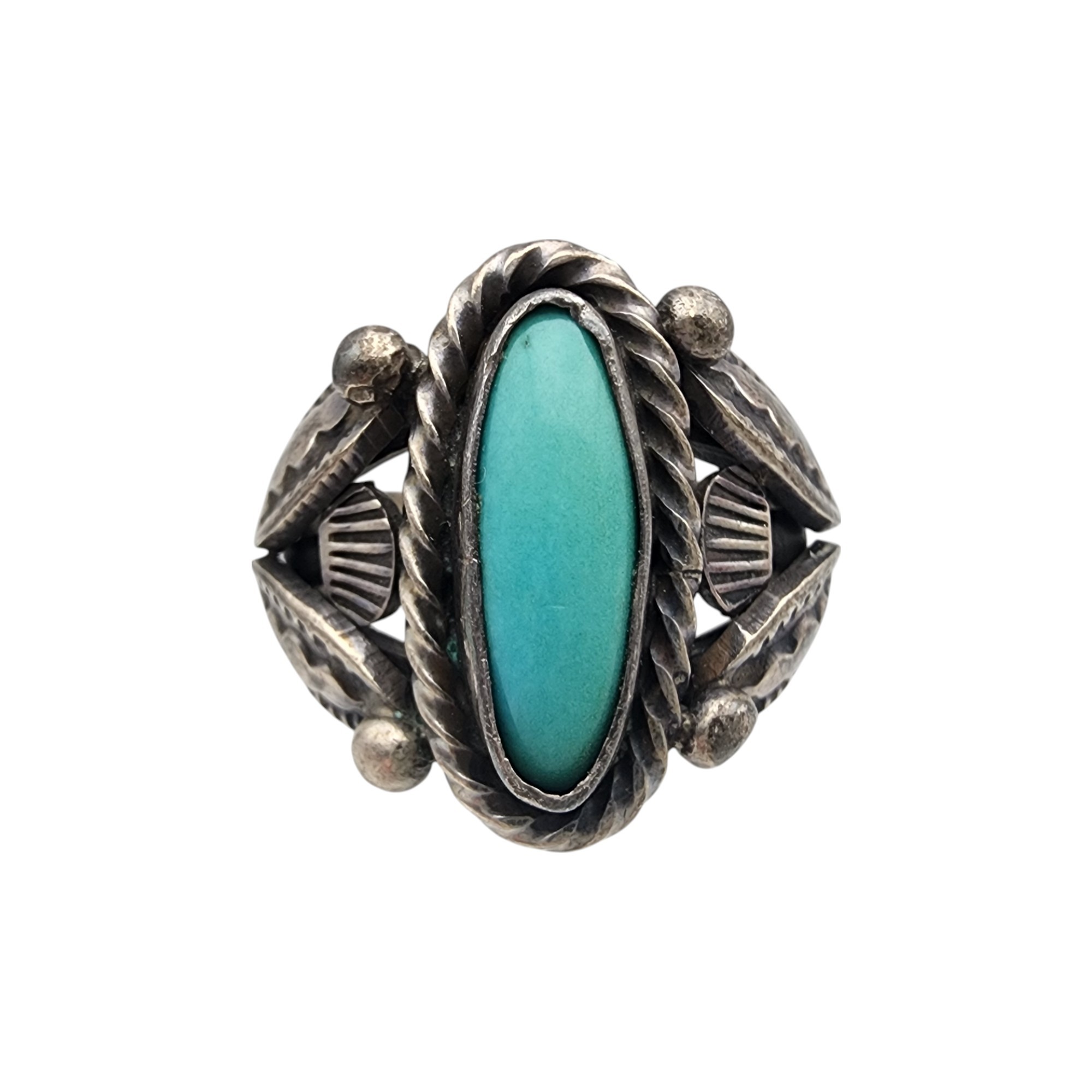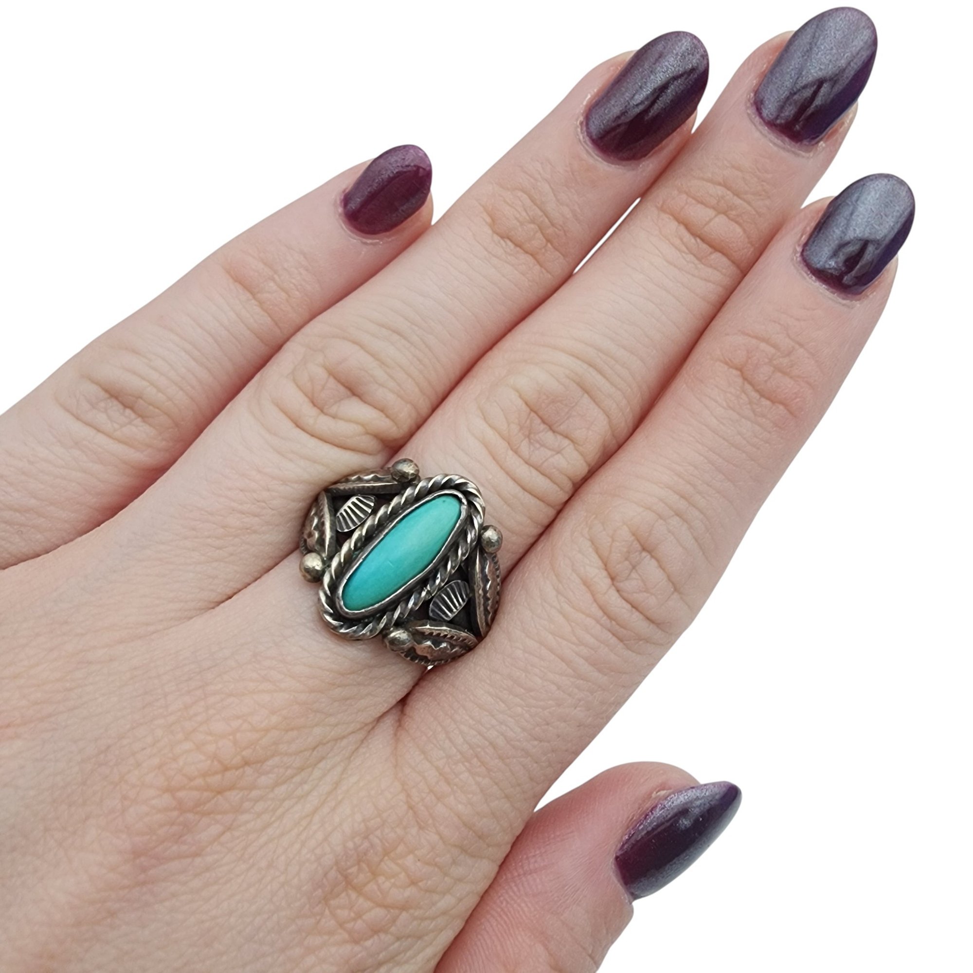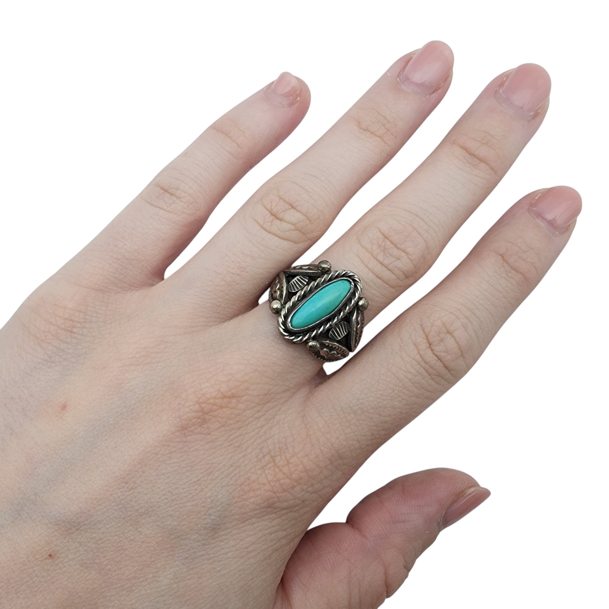 Signed Navajo Sterling Turquoise Stamped Ring Sz 7