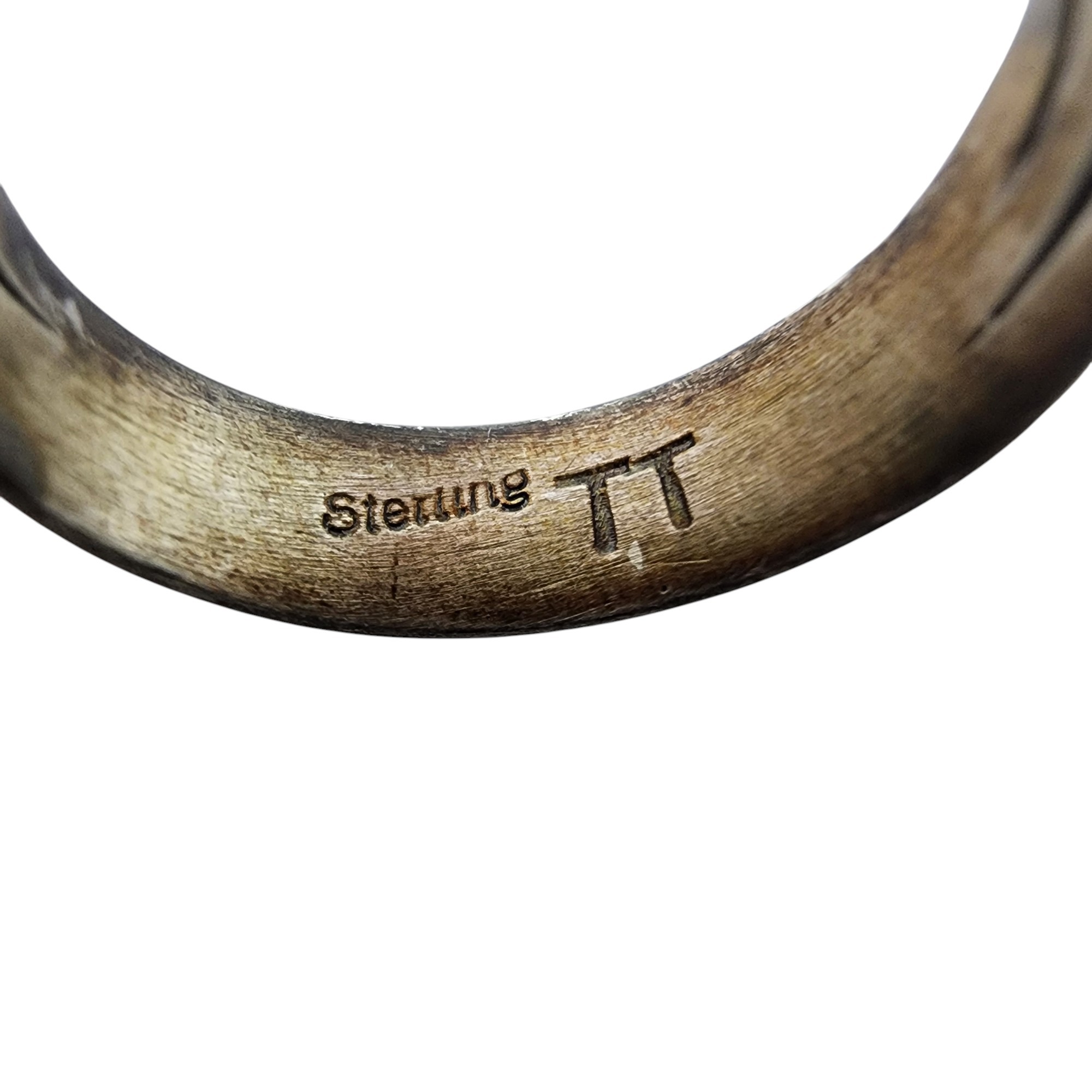 Vintage Signed TT Navajo Sterling Turquoise Stampwork Ring Sz 7 9.2g