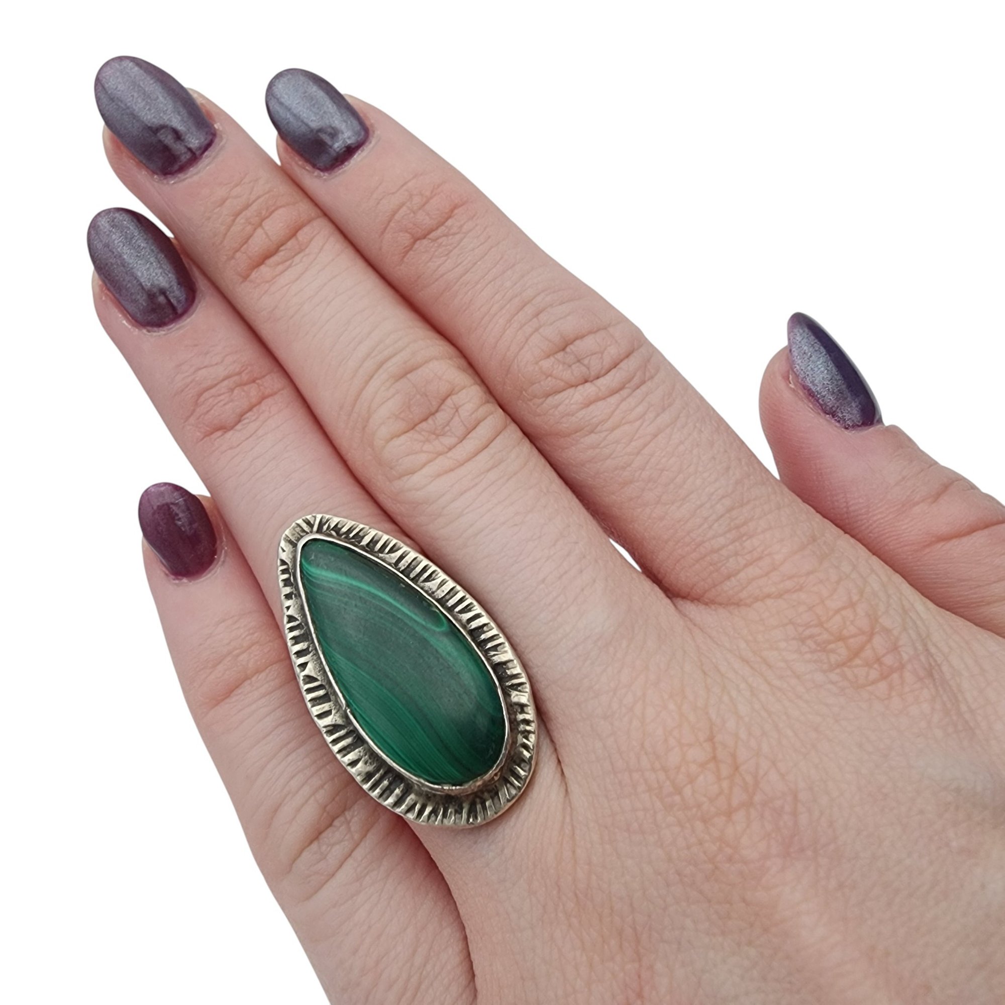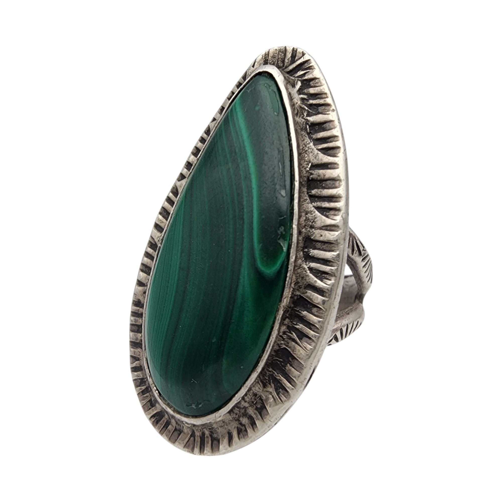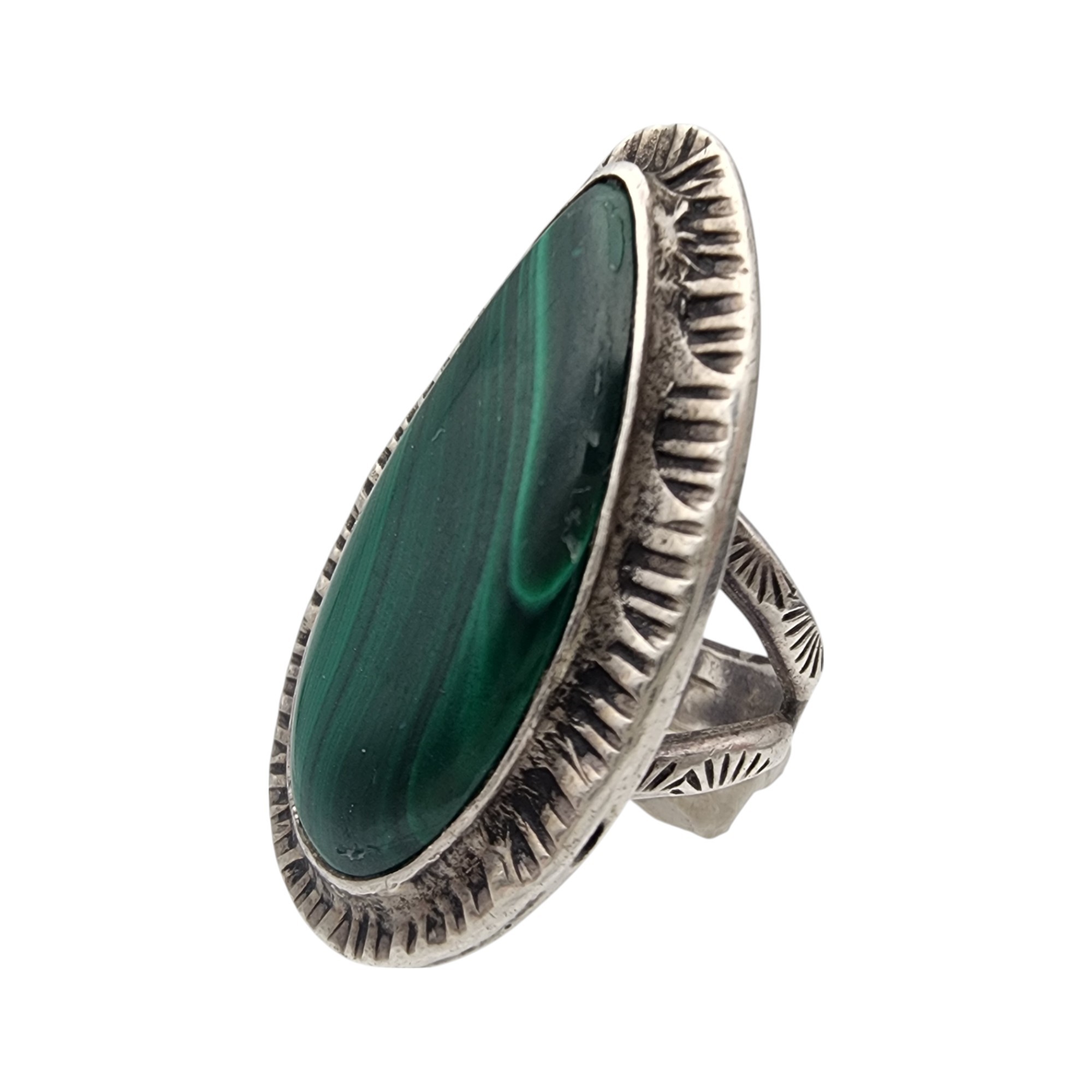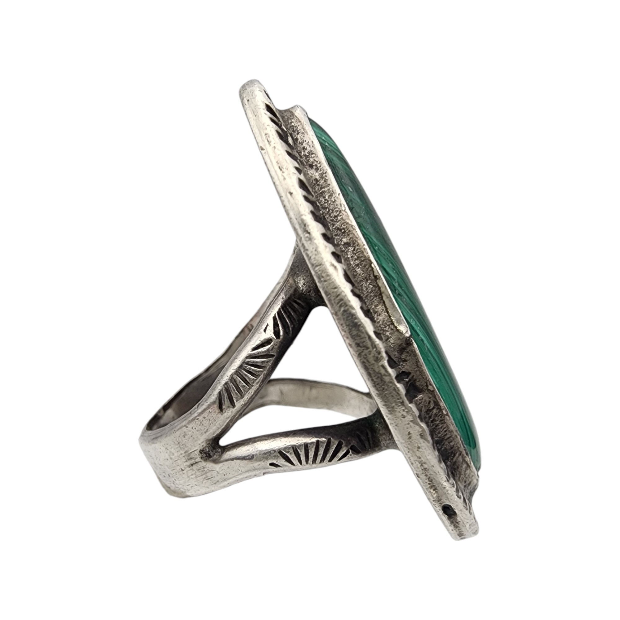 Vintage Navajo Sterling Malachite Ring Sz 4.5 | 13.3g