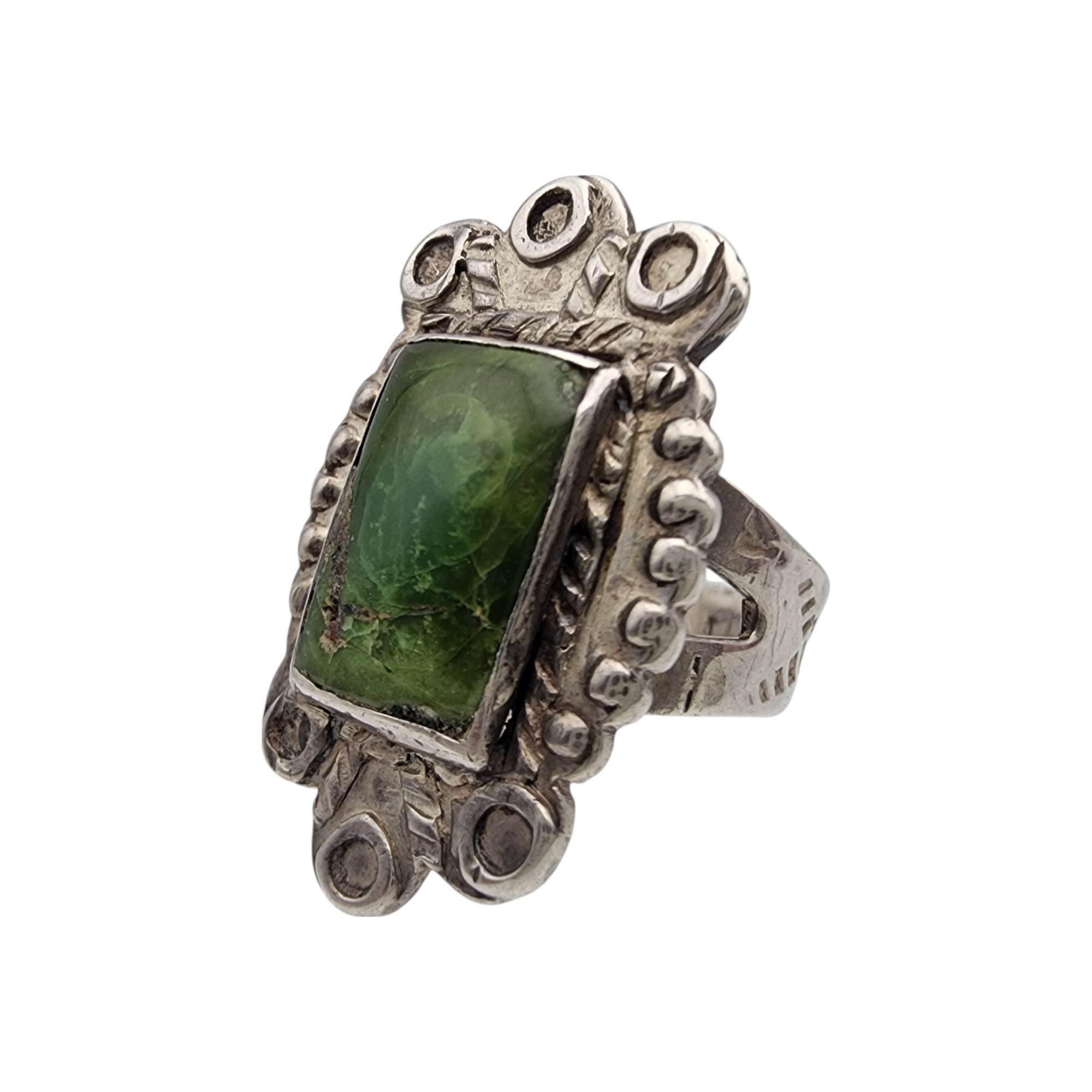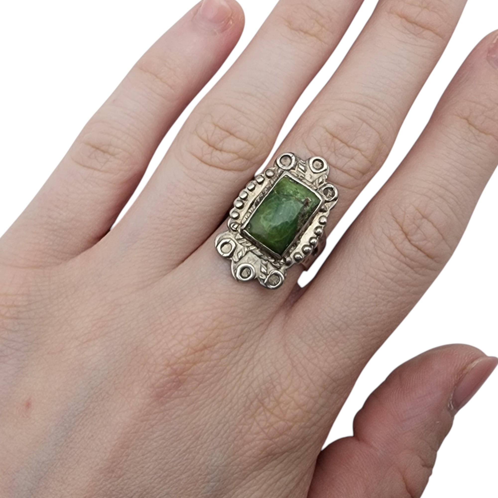 Vintage Navajo Sterling Green Turquoise Ring Sz 7 | 7g