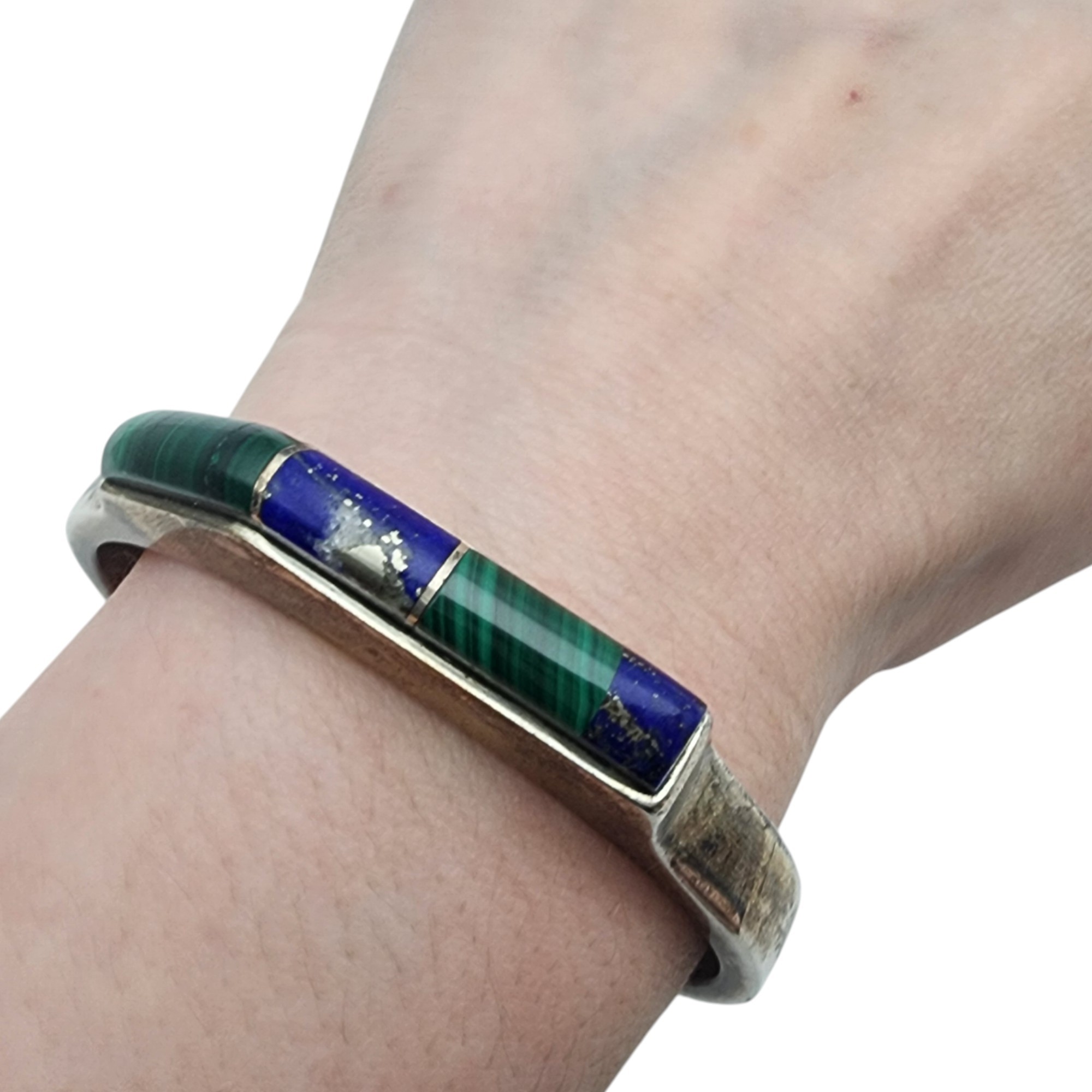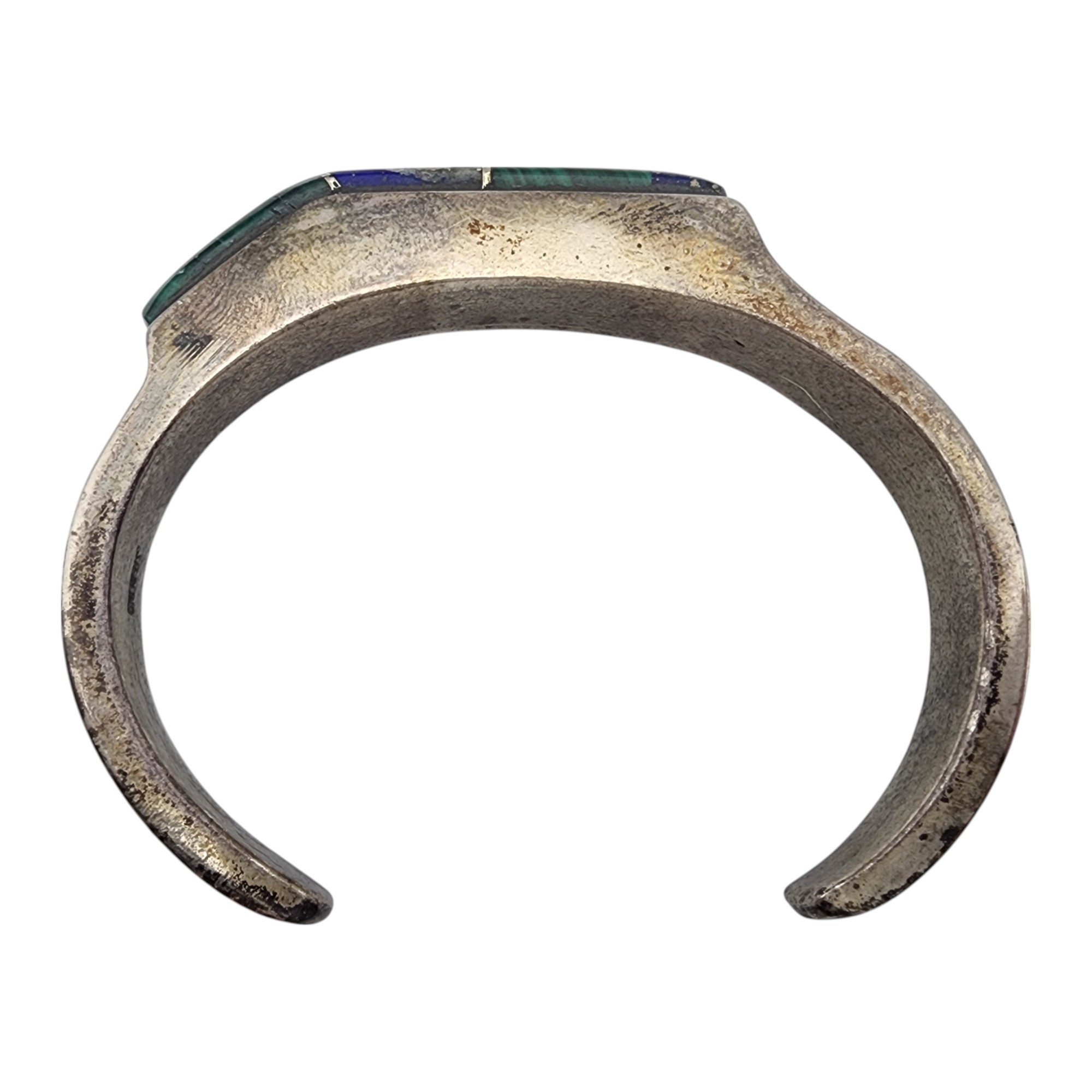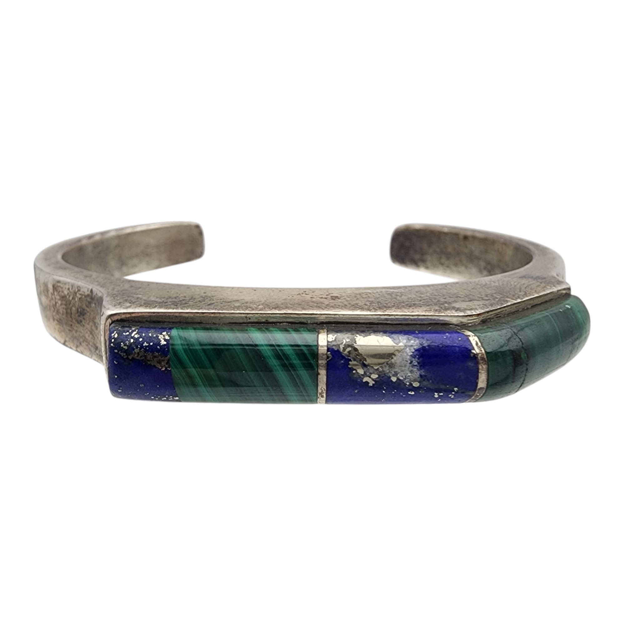Vintage Navajo Sterling Contemporary Multistone – Malachite, Lapis Lazuli – Inlay Cuff Bracelet | 40.9g