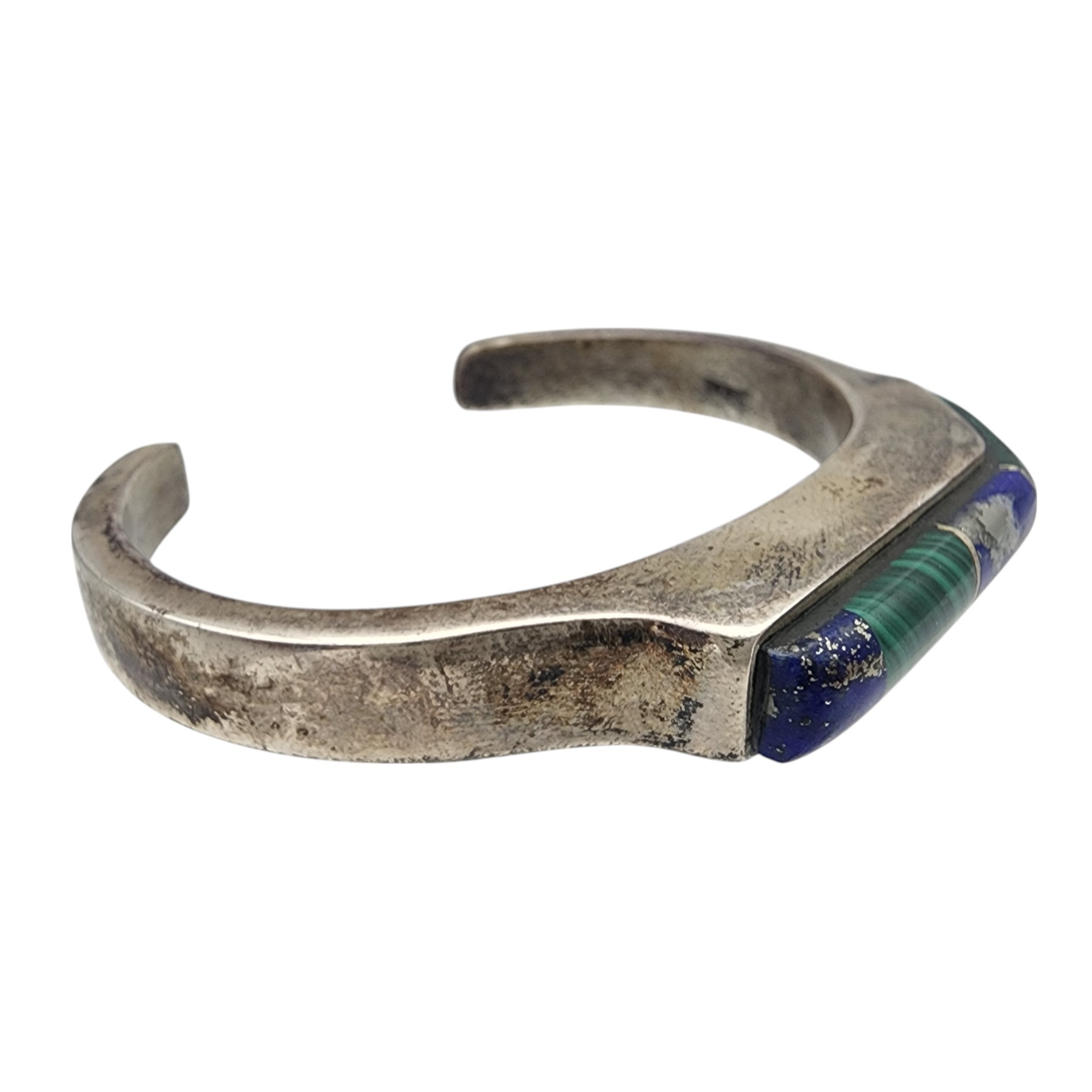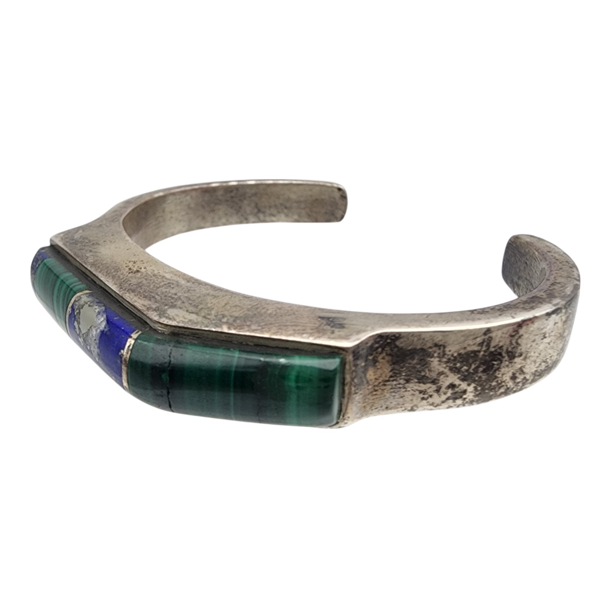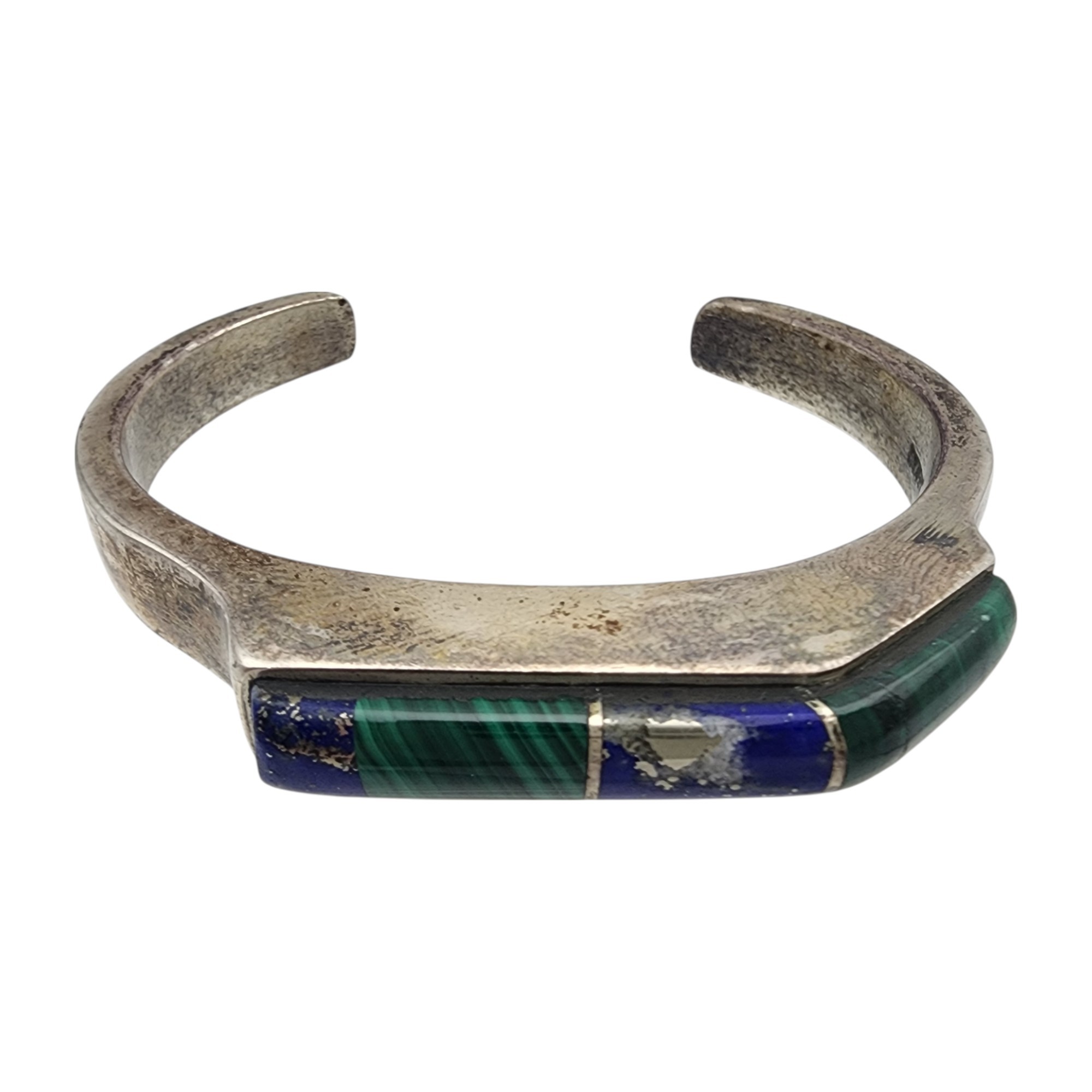 Vintage Navajo Sterling Contemporary Multistone – Malachite, Lapis Lazuli – Inlay Cuff Bracelet | 40.9g