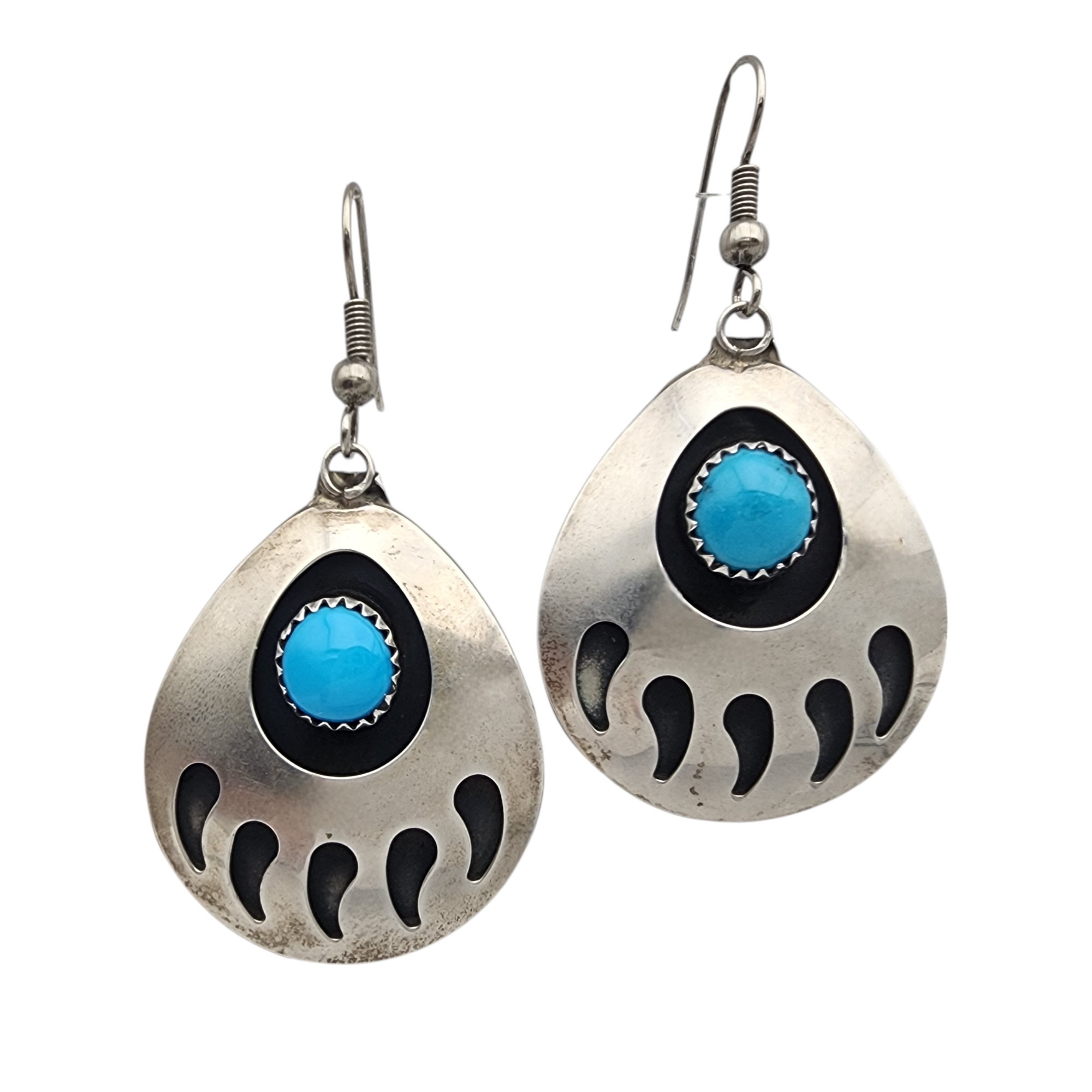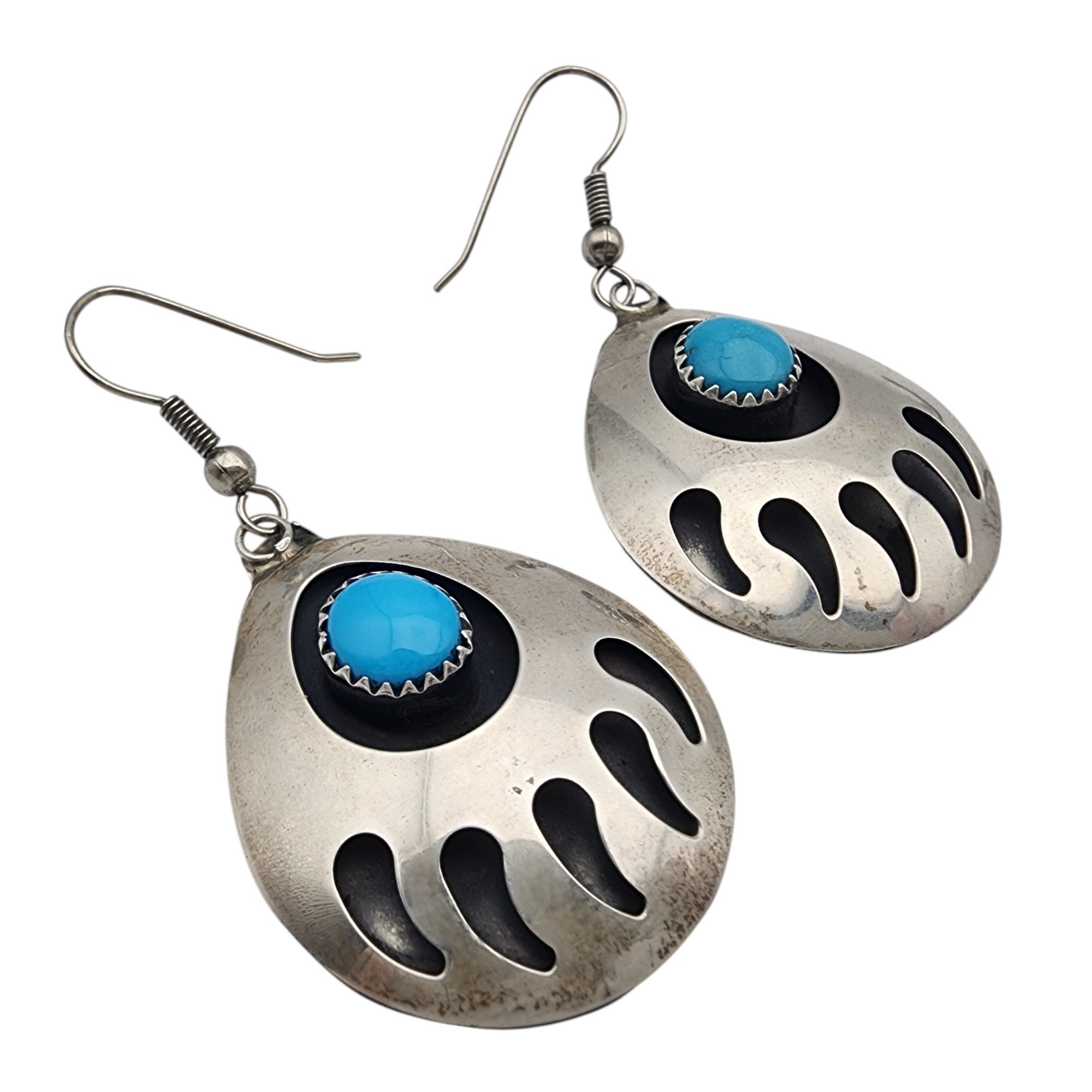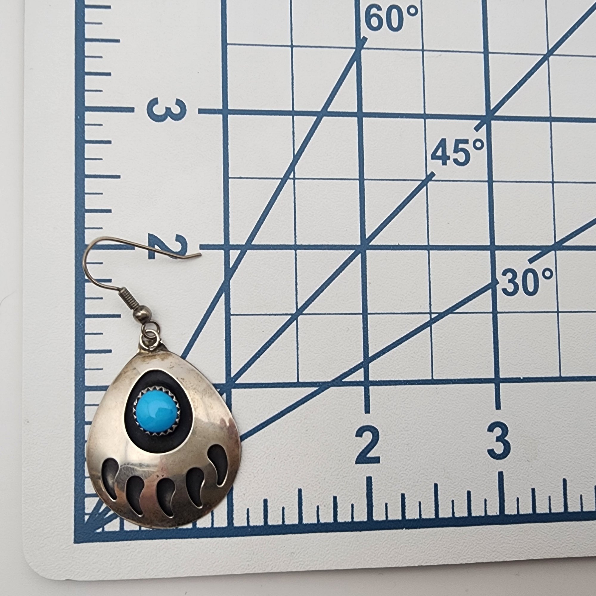Big! Navajo Sterling Turquoise Bear Paw Earrings | 7.3g