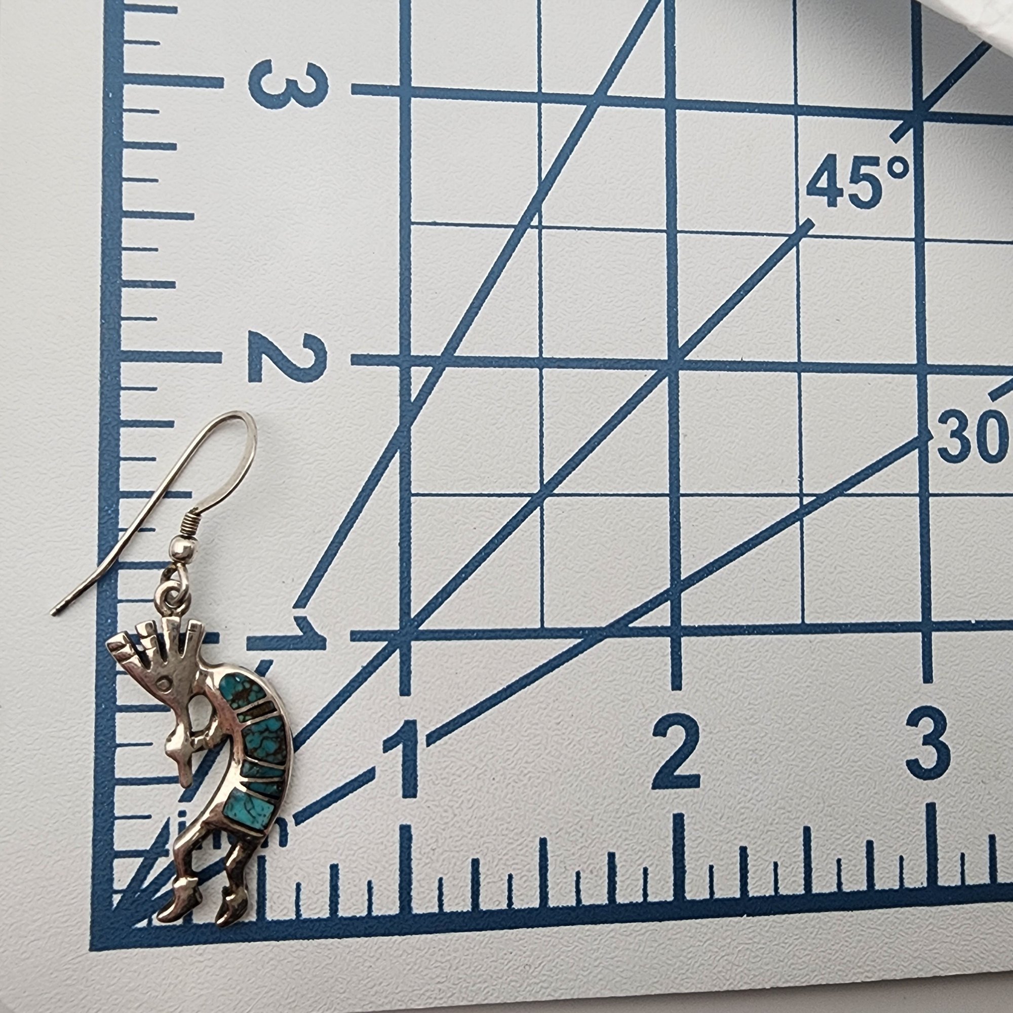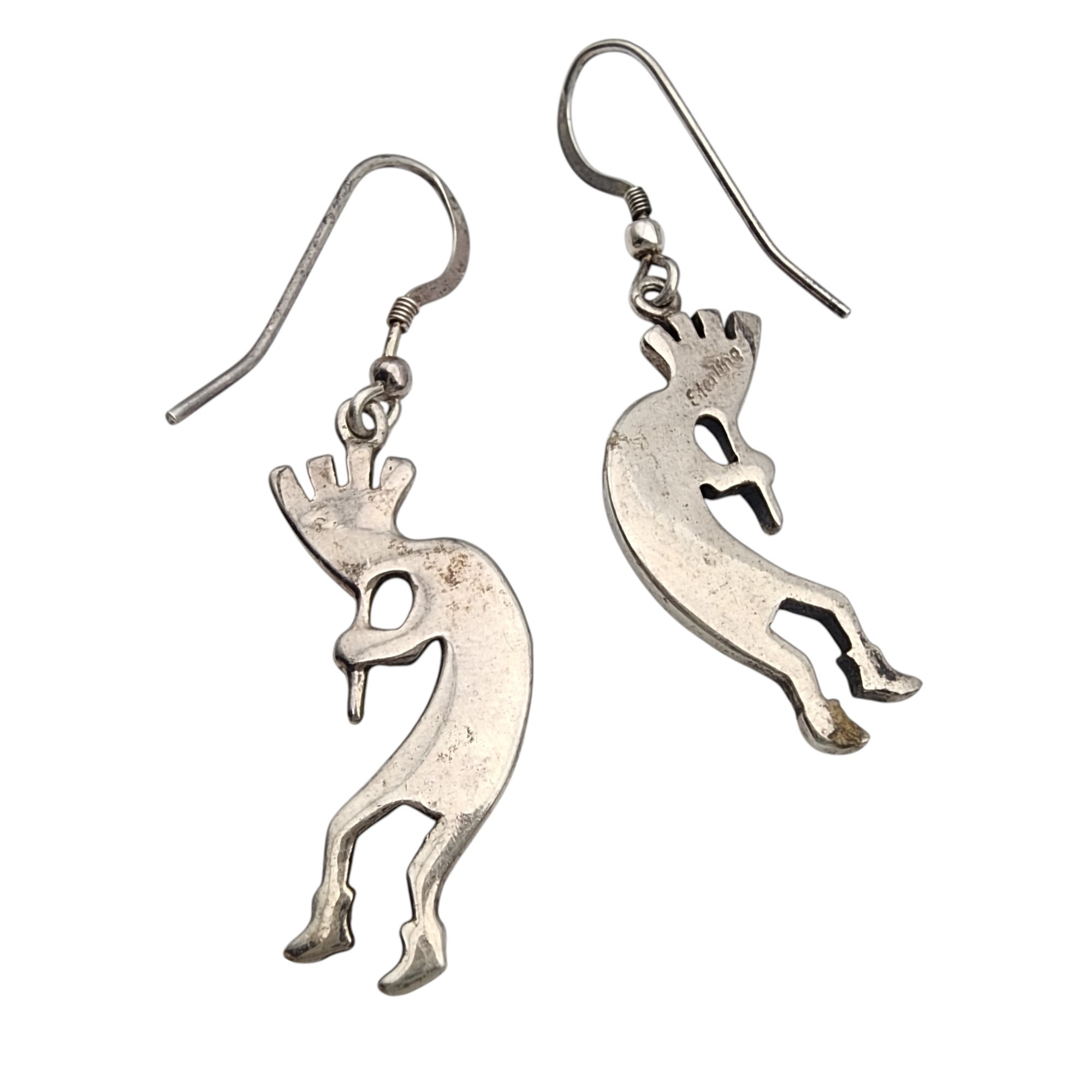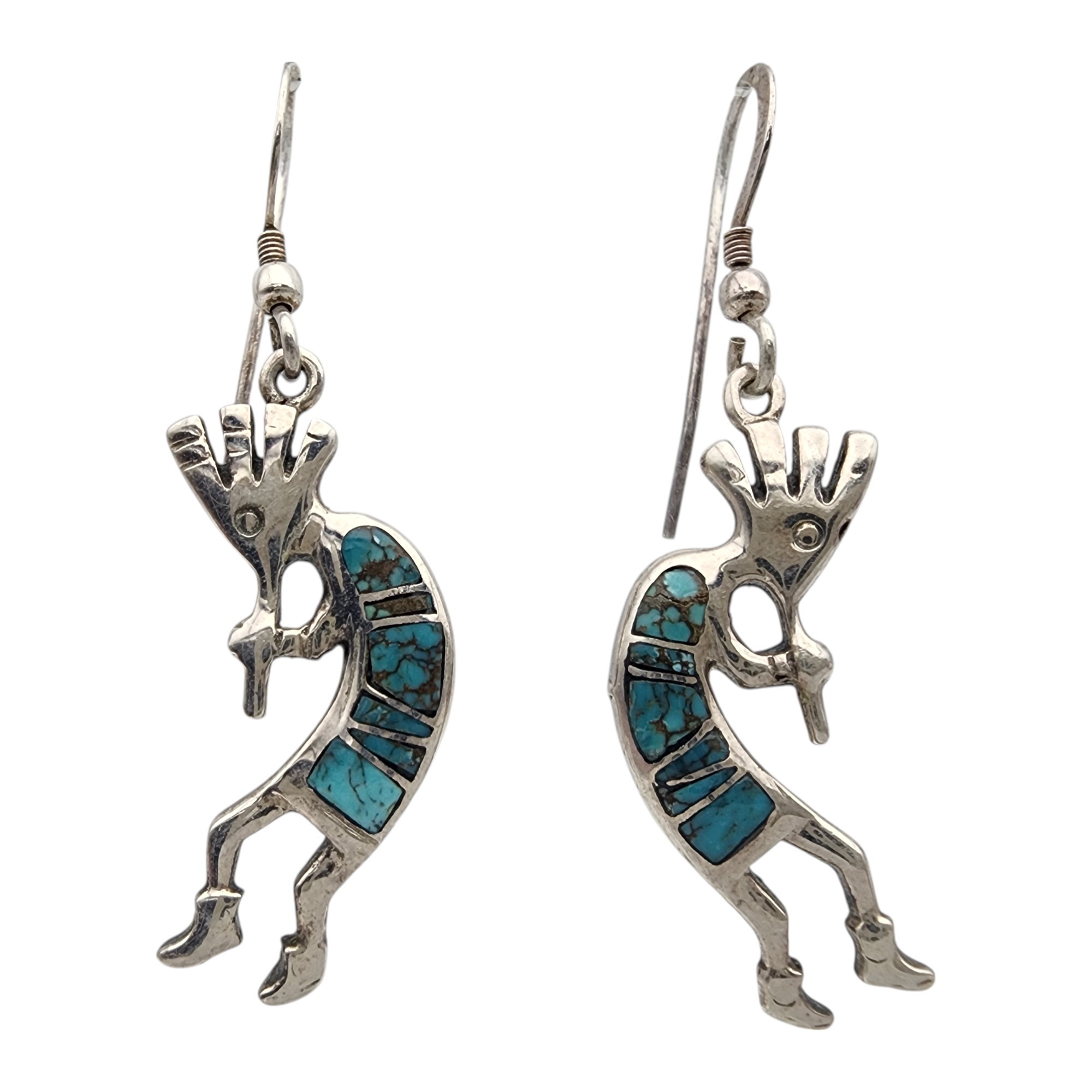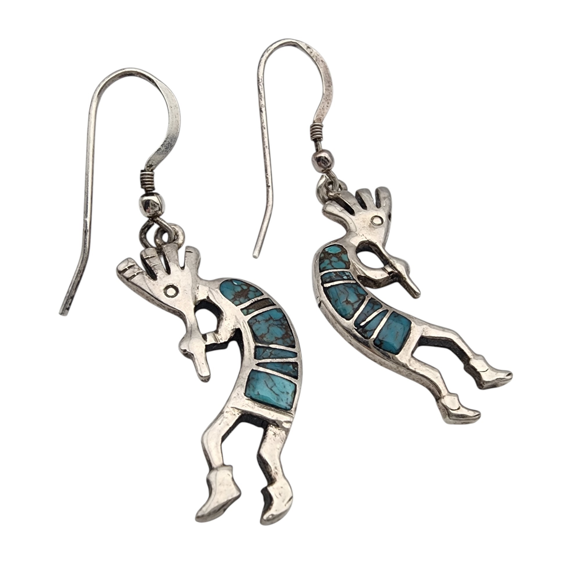 Navajo Sterling Turquoise Inlay Kokopelli Earrings 6.1g