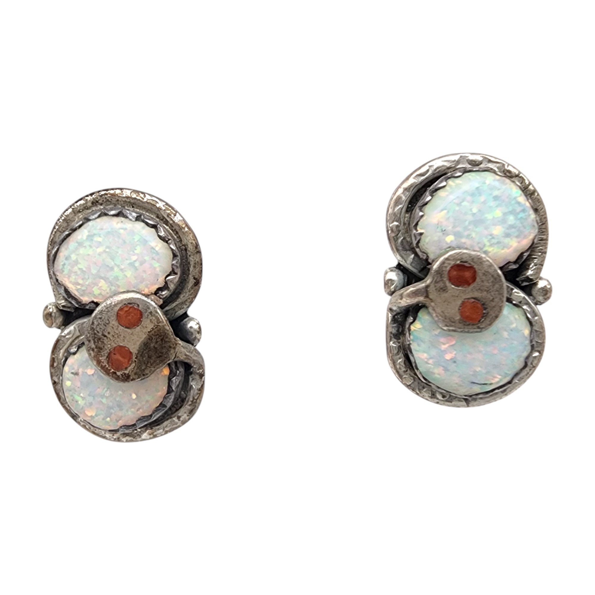 Effie Calavaza Family Zuni Sterling Opal Snake Earrings 4.9g