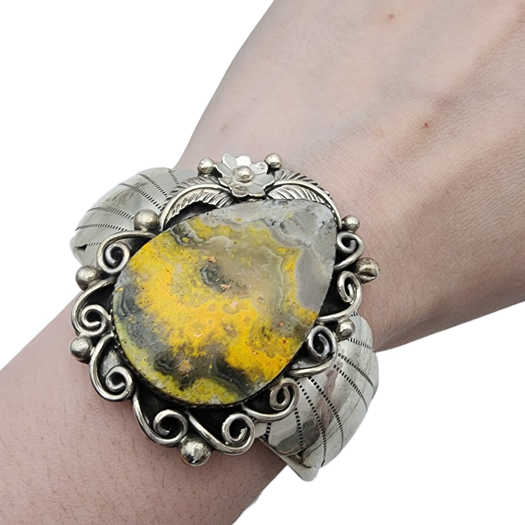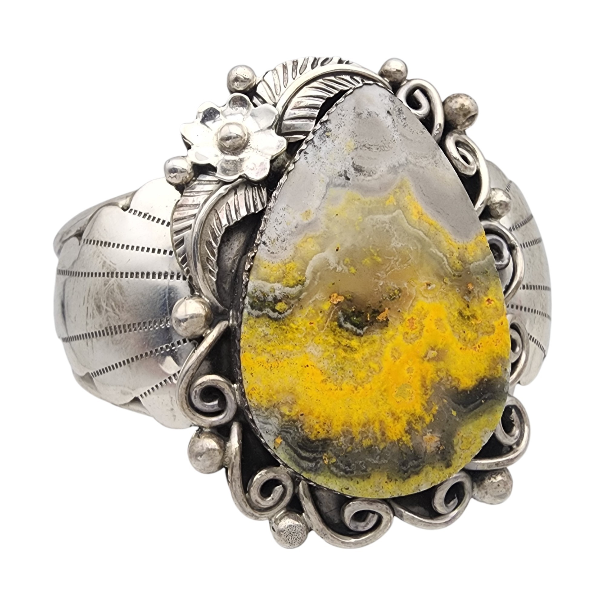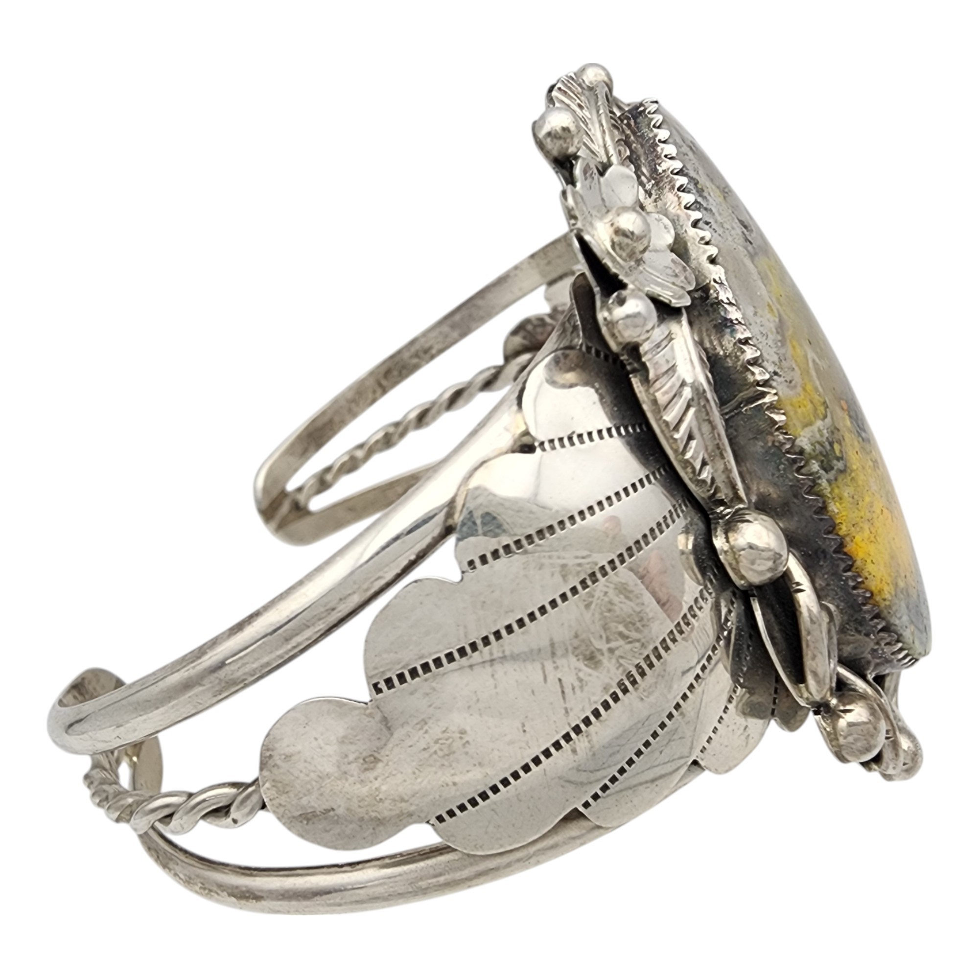 Signed Navajo Sterling Bumblebee Jasper Cuff Bracelet | 46.1g