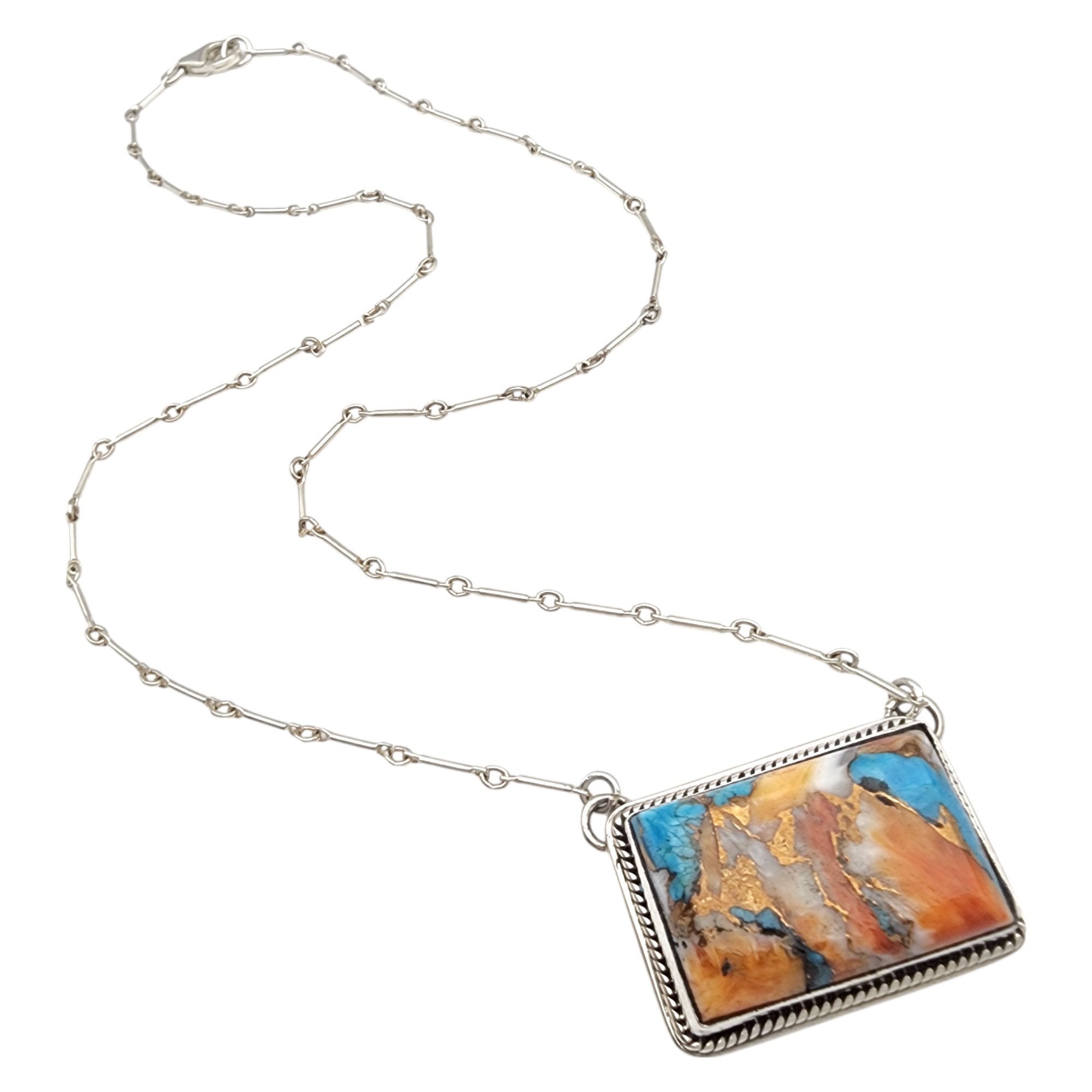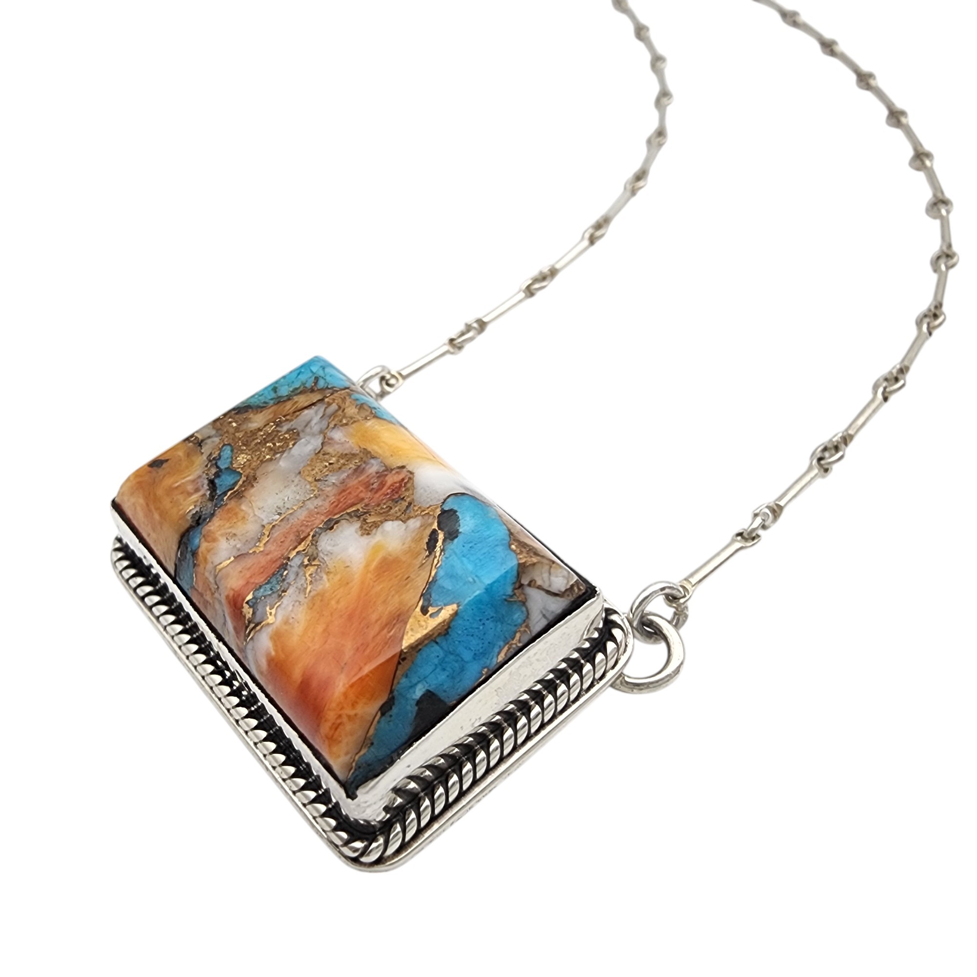 Zia Southwest Sterling Spiny Oyster/Turquoise/Copper Matrix Bar Necklace| 15.3g