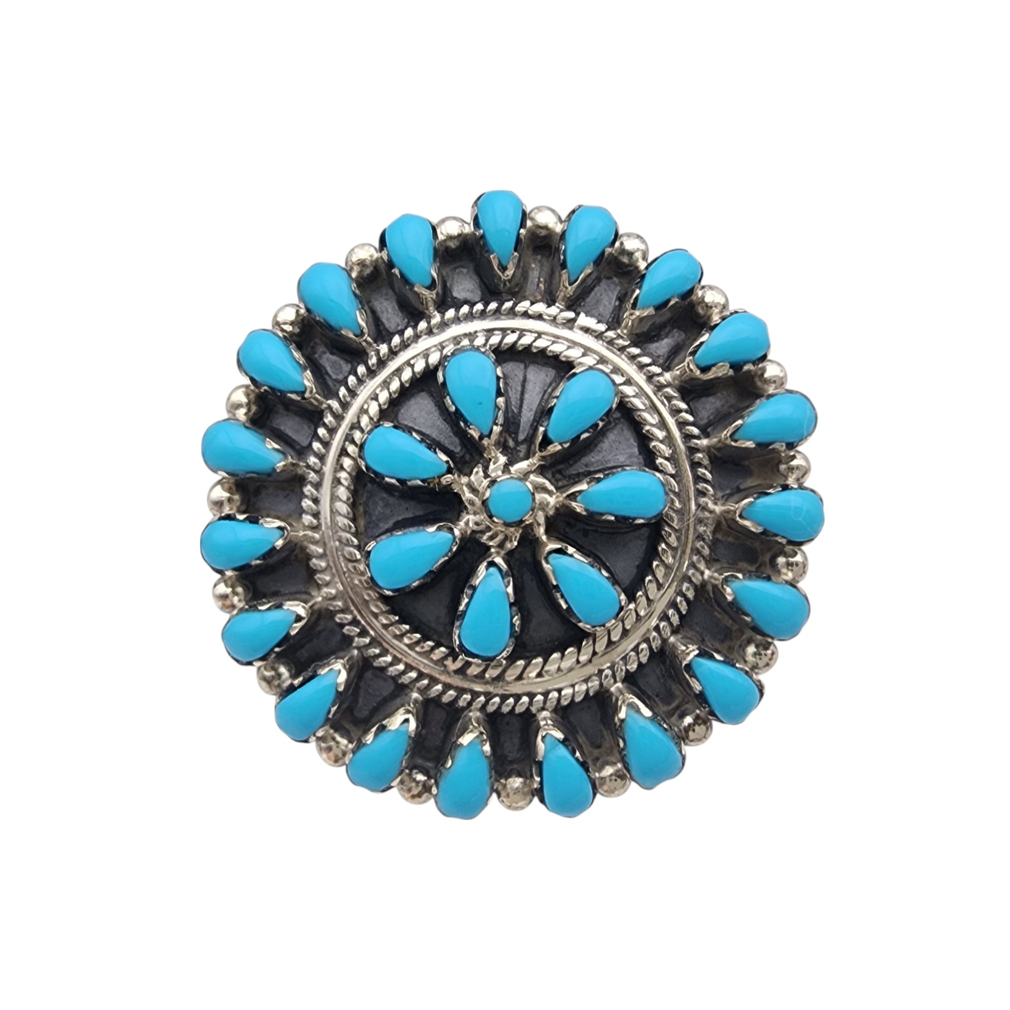 Southwest Sterling Petit Point Cluster Ring Sz 9
