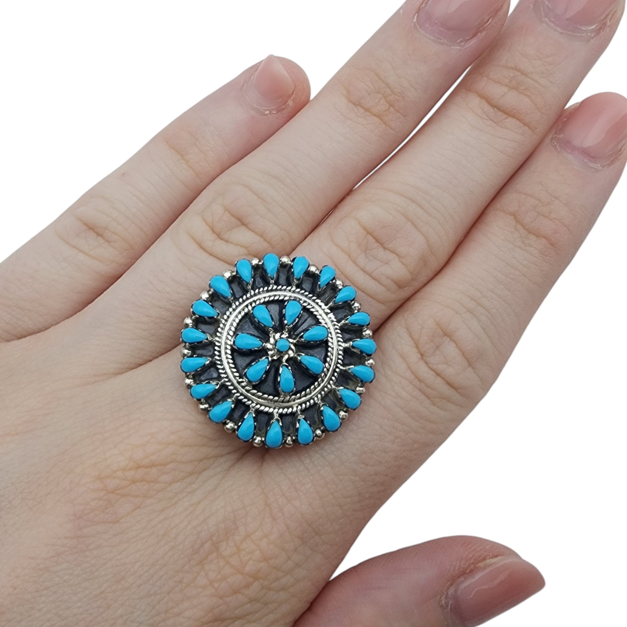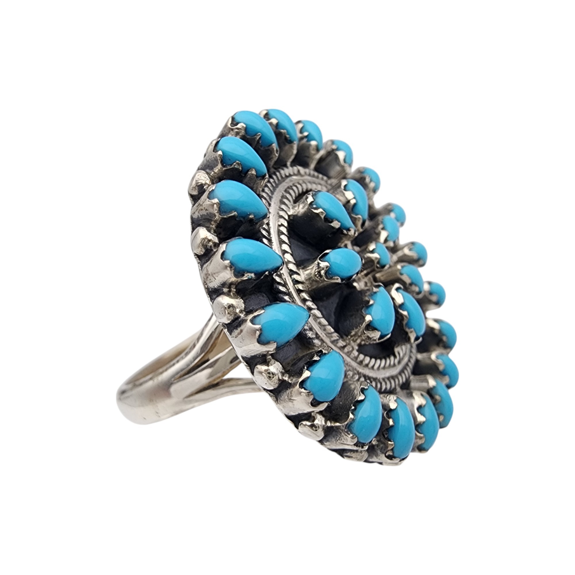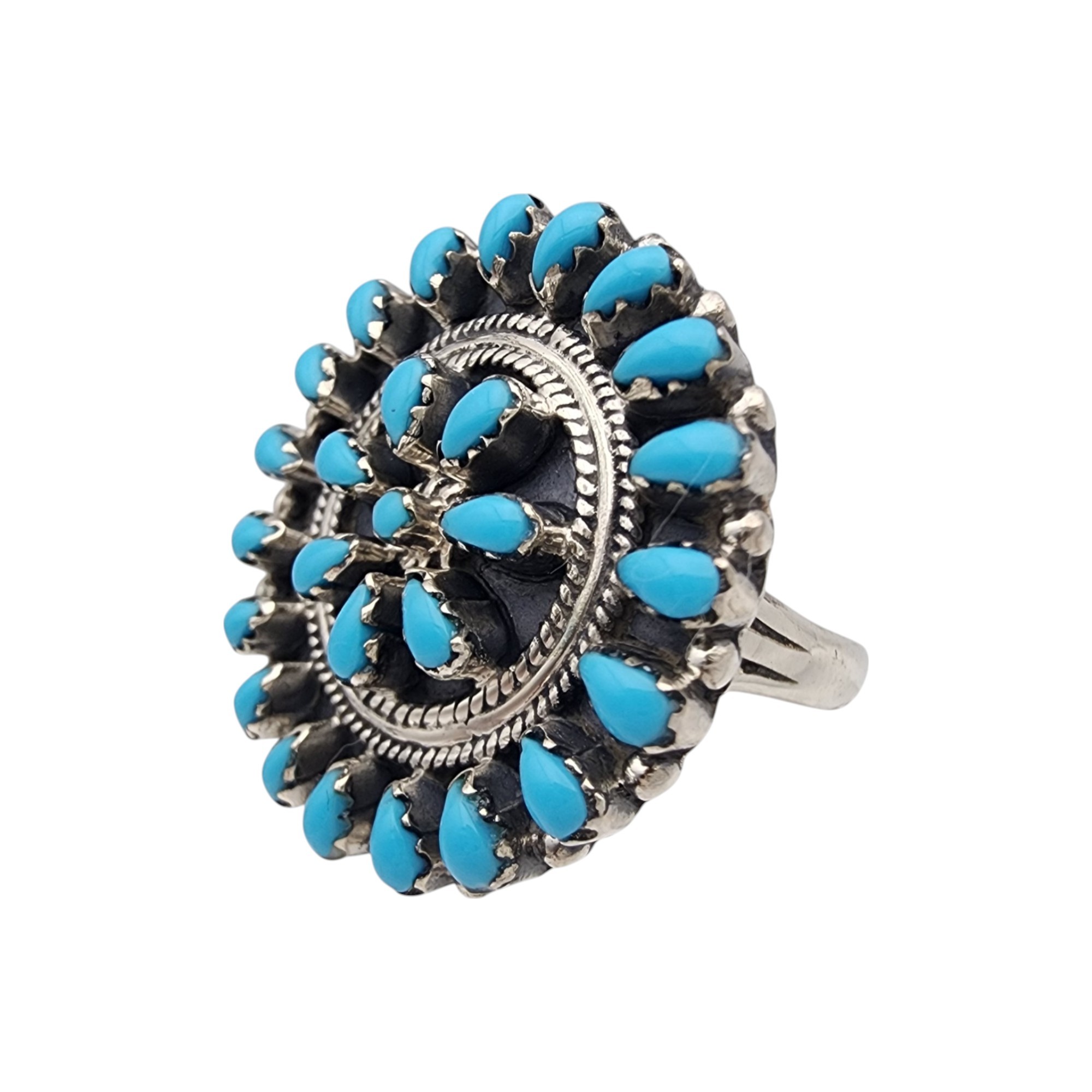 Southwest Sterling Petit Point Cluster Ring Sz 9, 8.5g