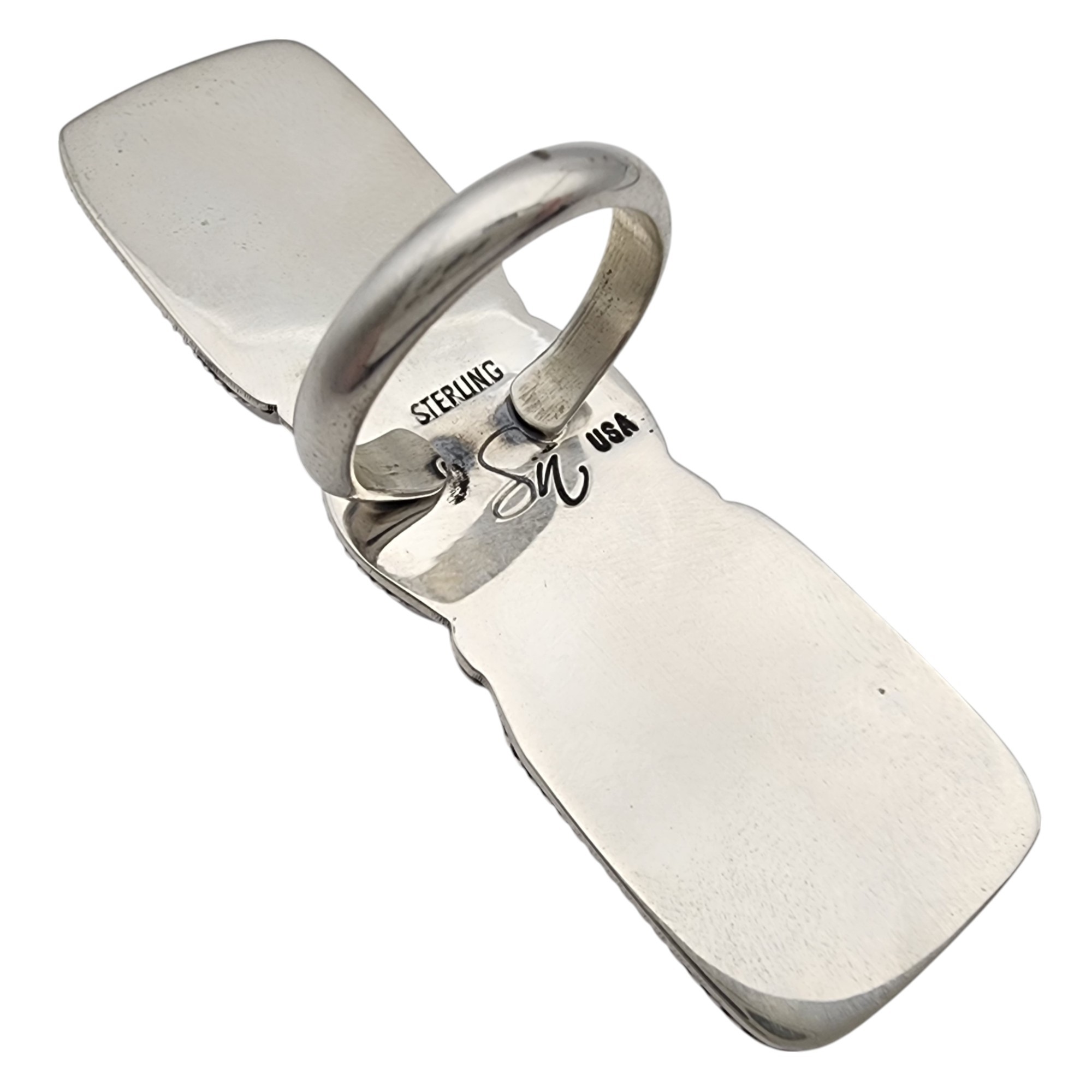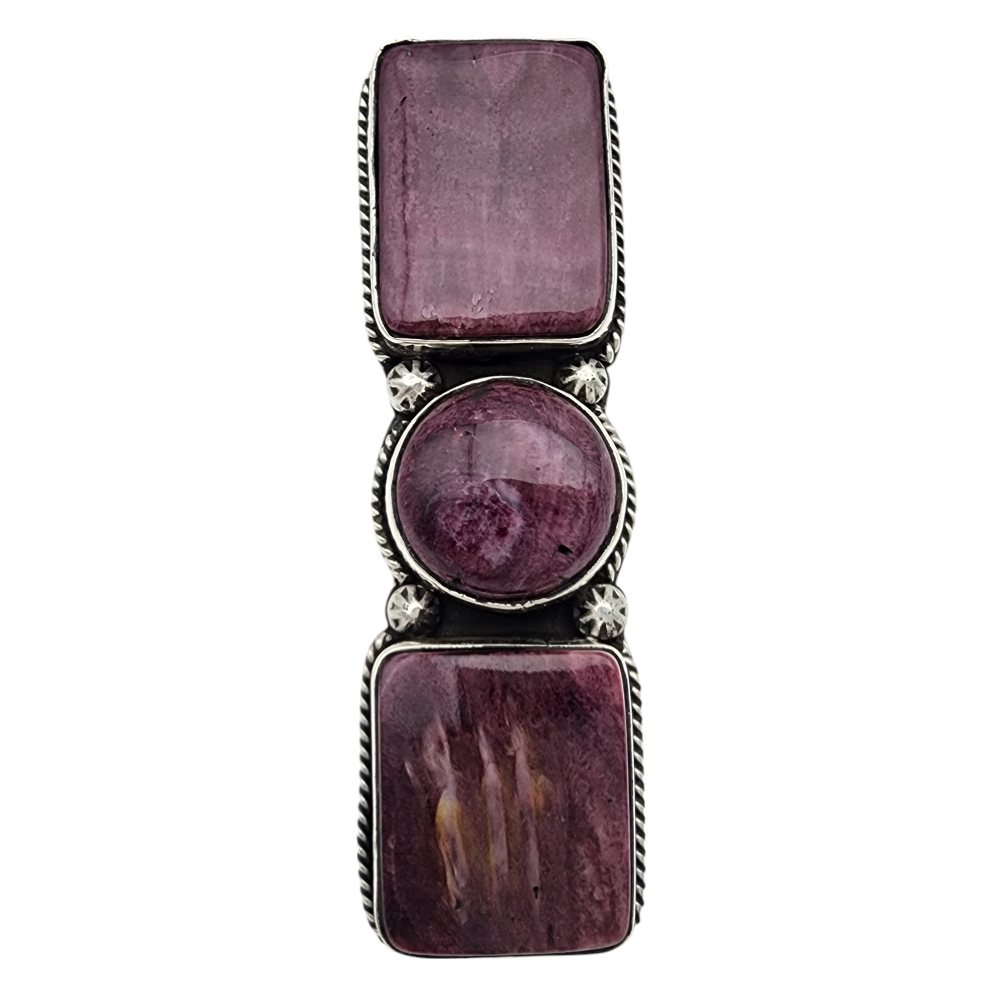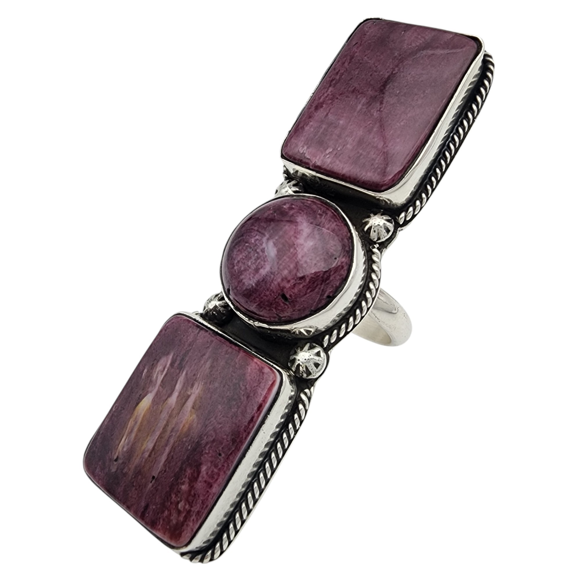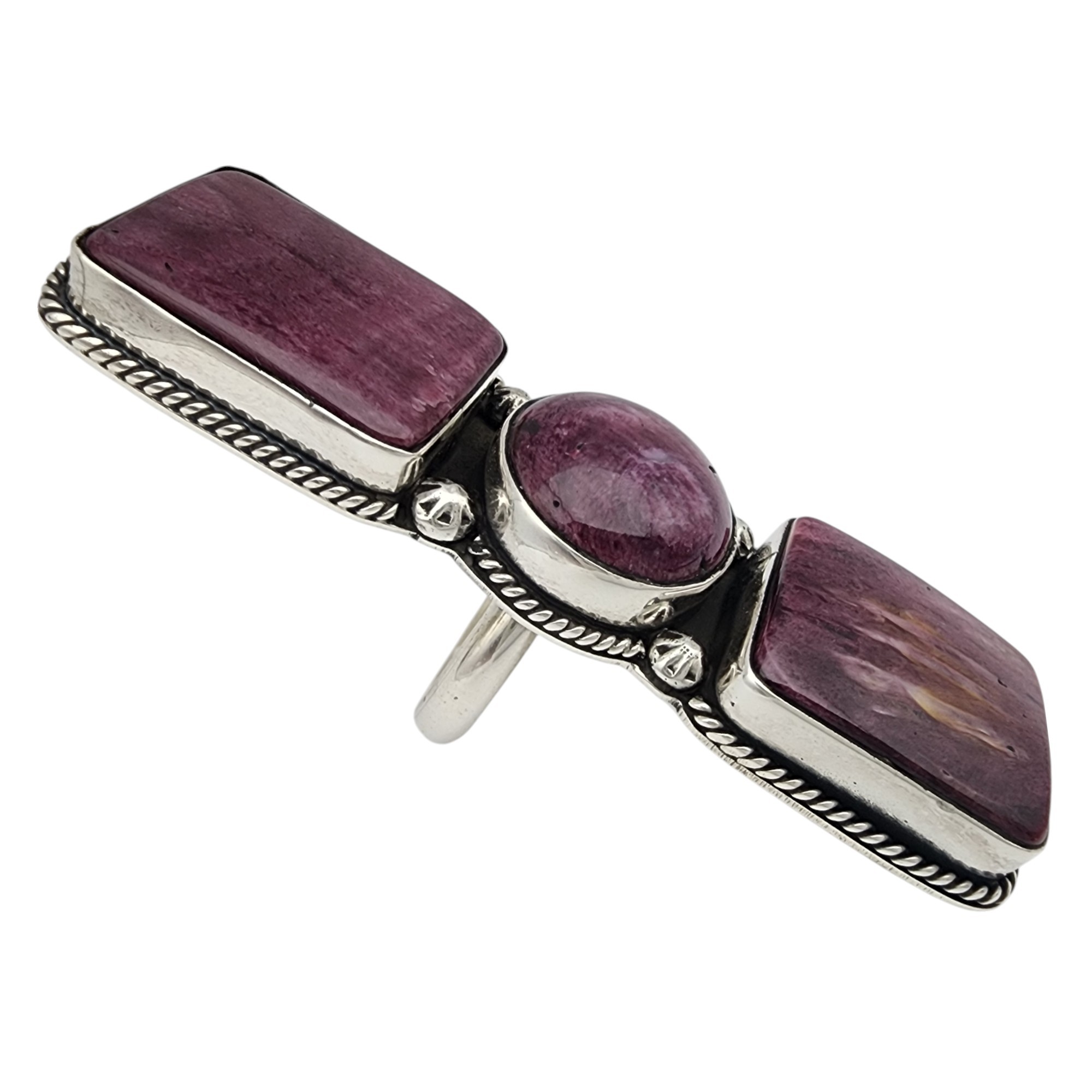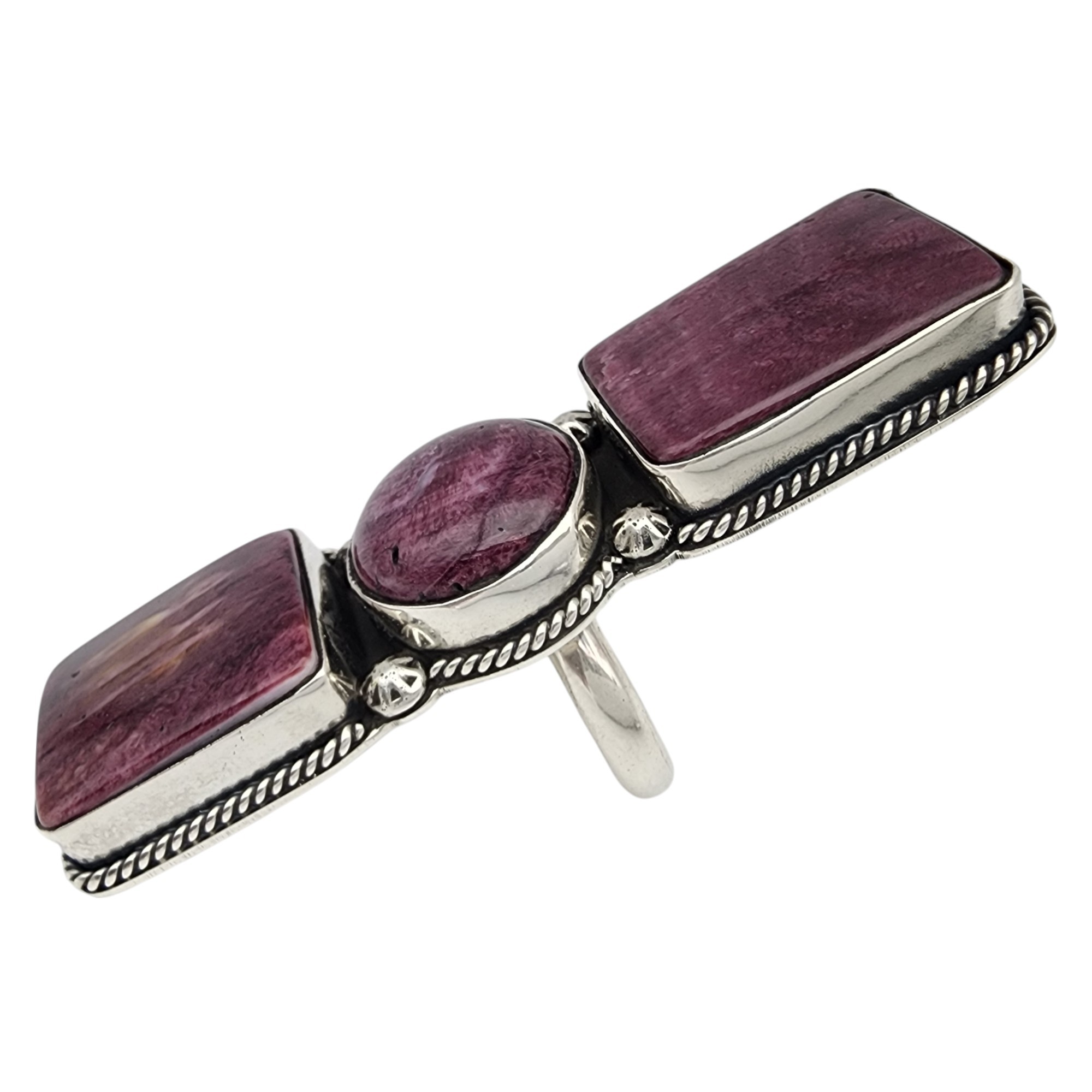 Amazing! Huge Signed Sandra Nez Navajo Sterling Purple Spiny Oyster Finger Length Ring Sz 8 | 29.6g