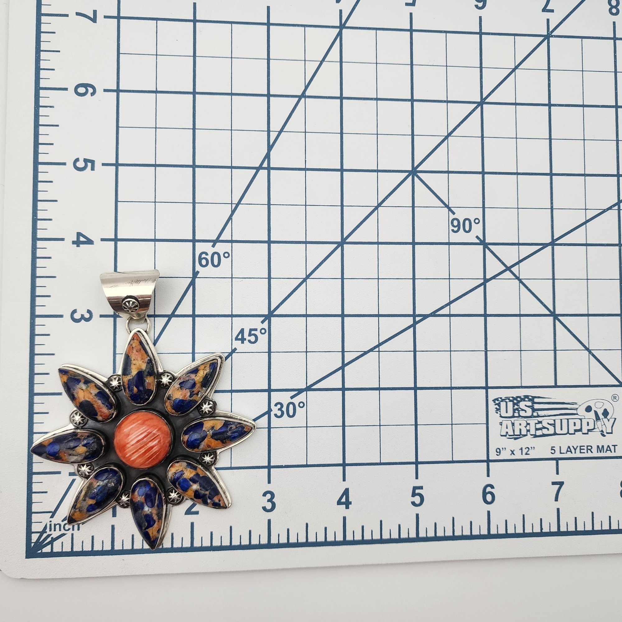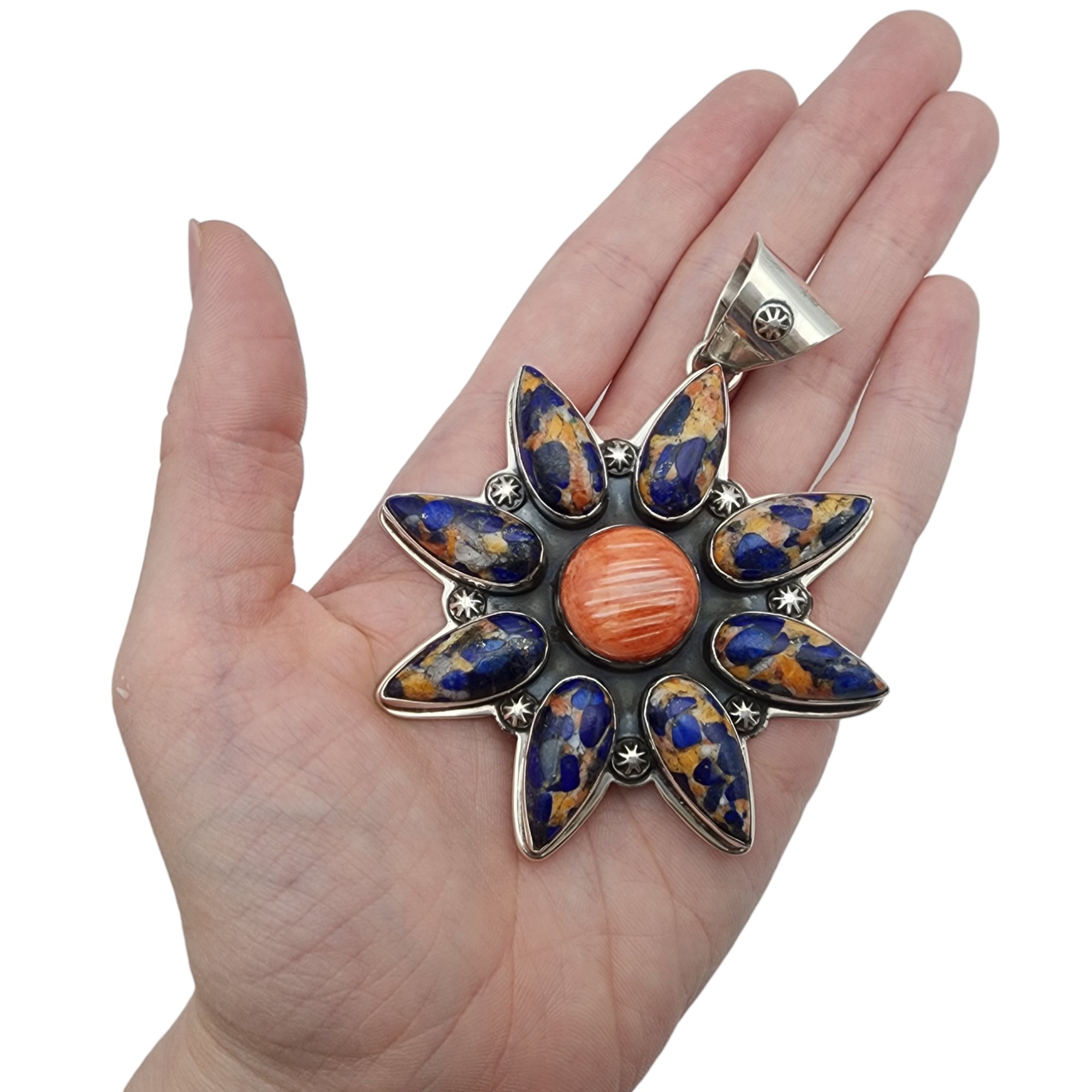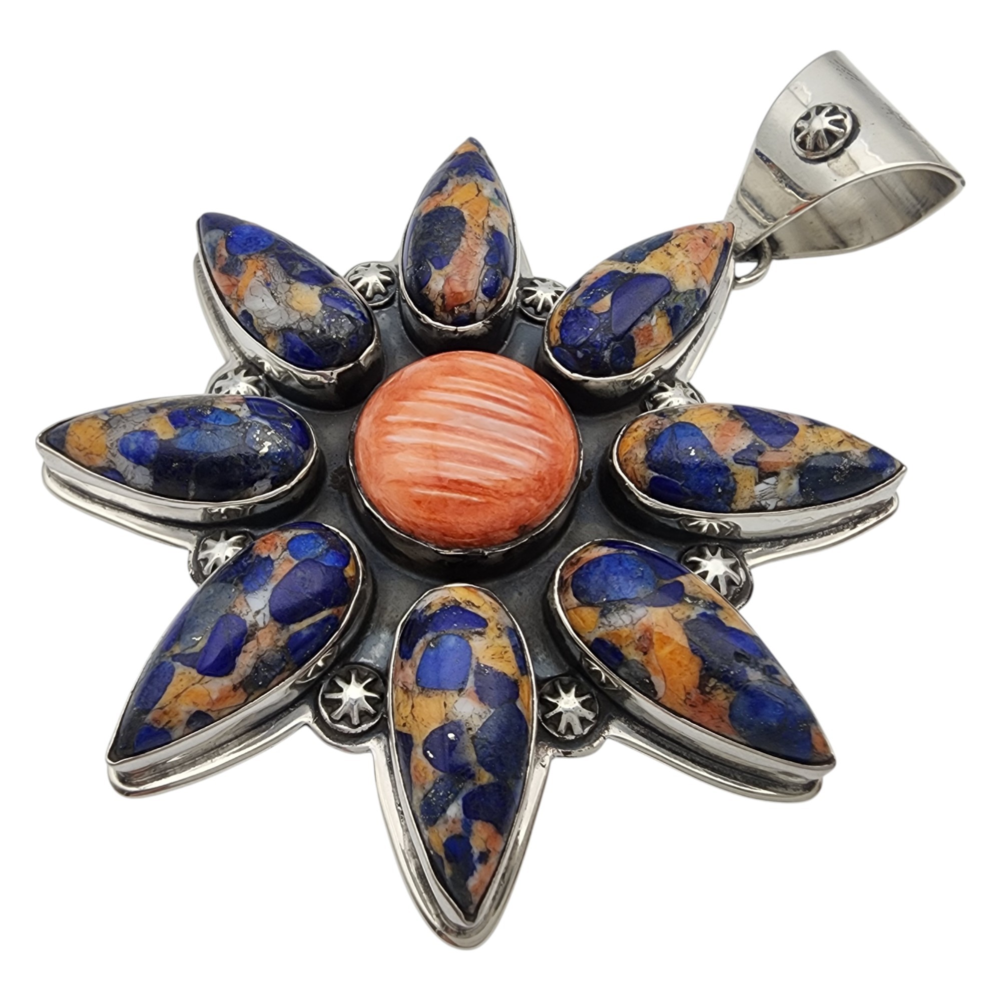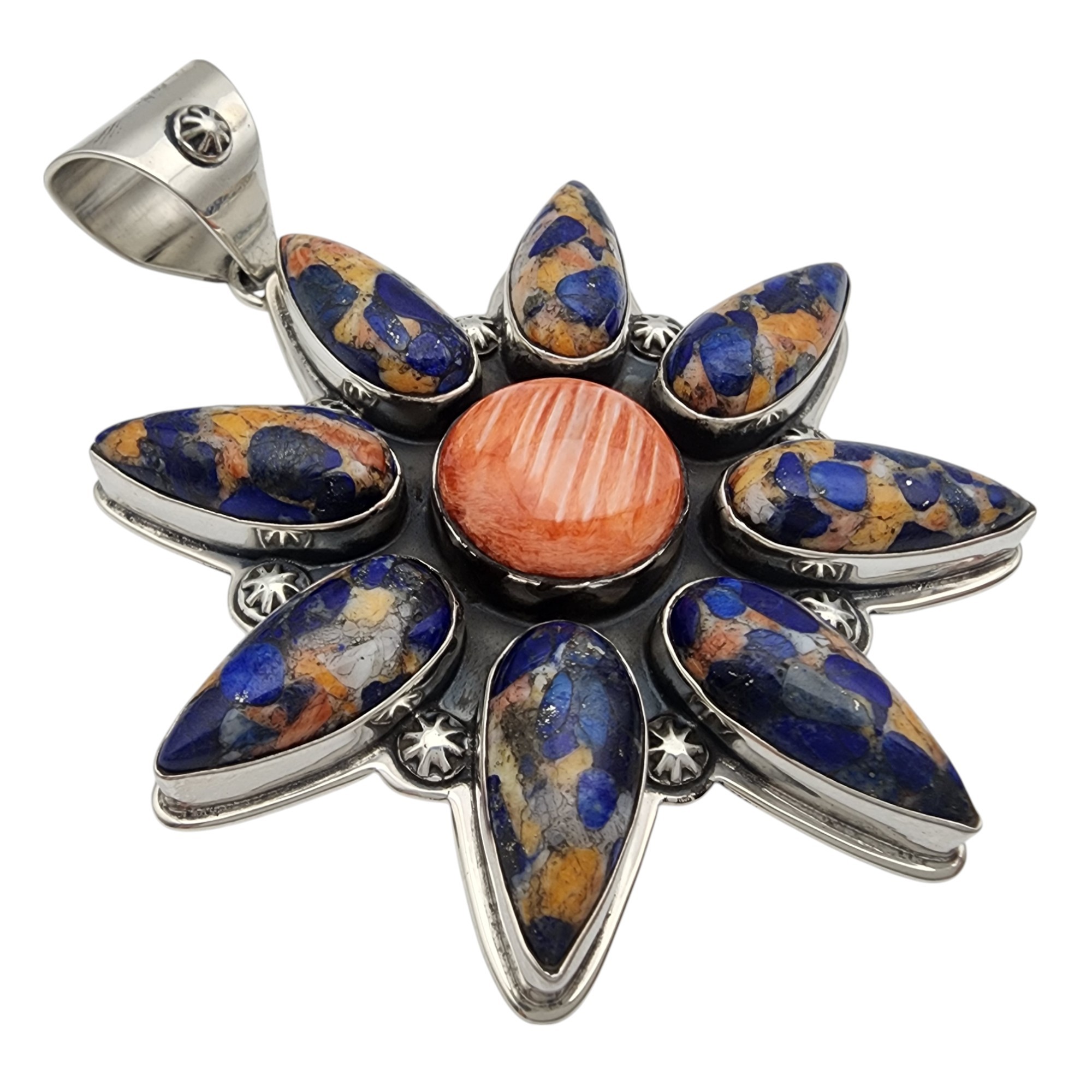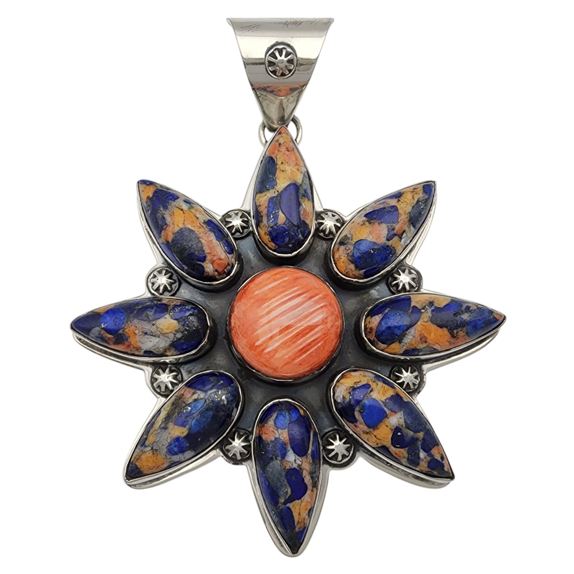 Huge! Zia Southwest Sterling Spiny Oyster Lapis Lazuli Cluster Pendant | 56.6g