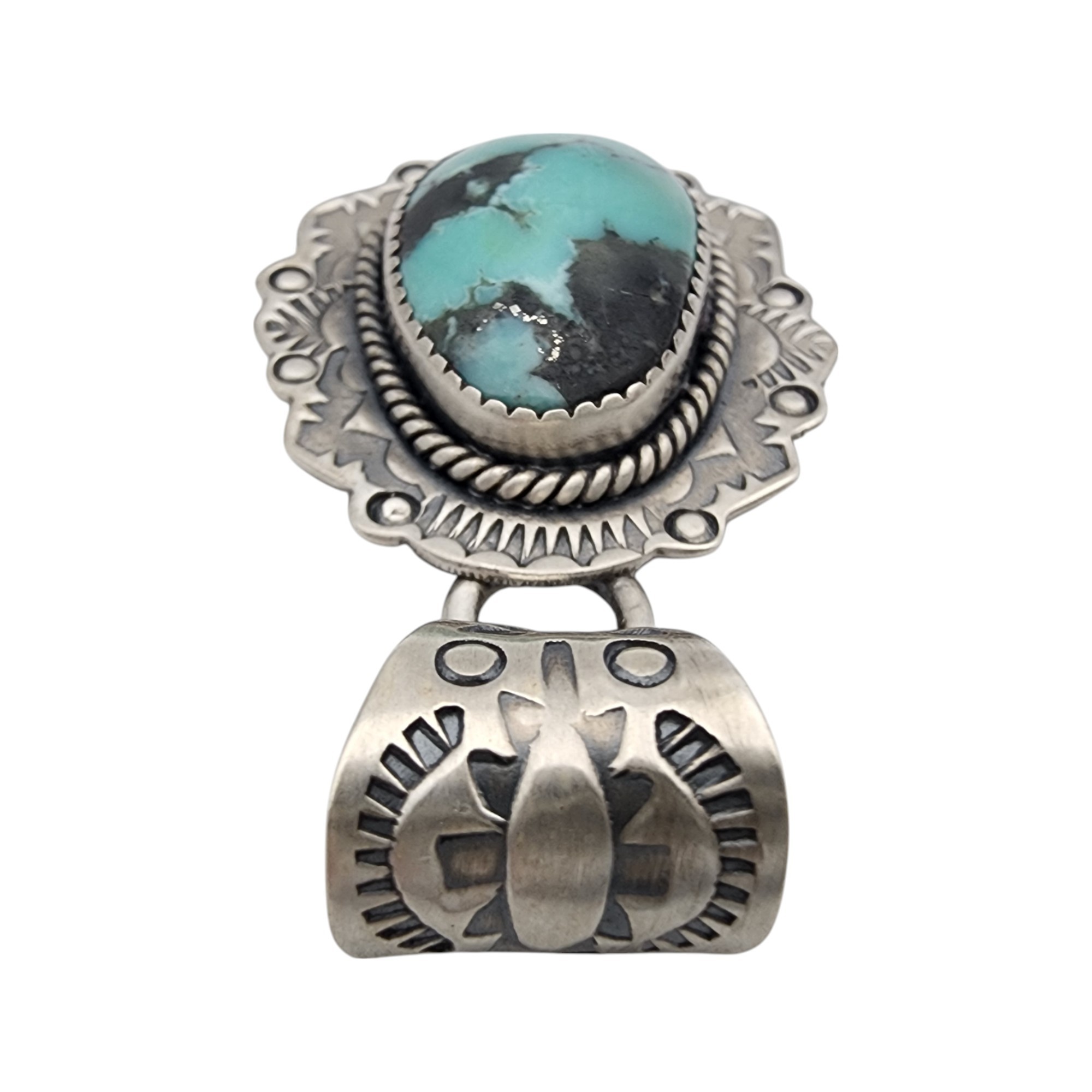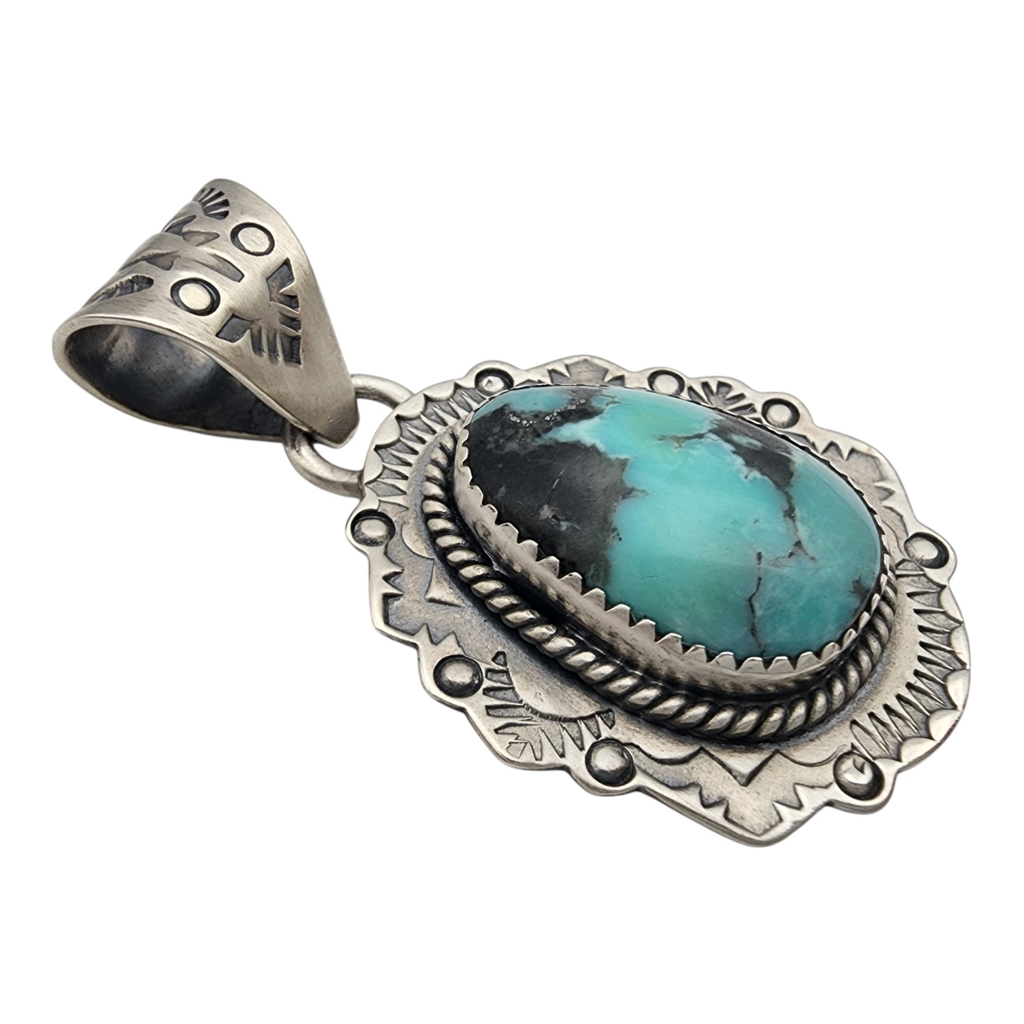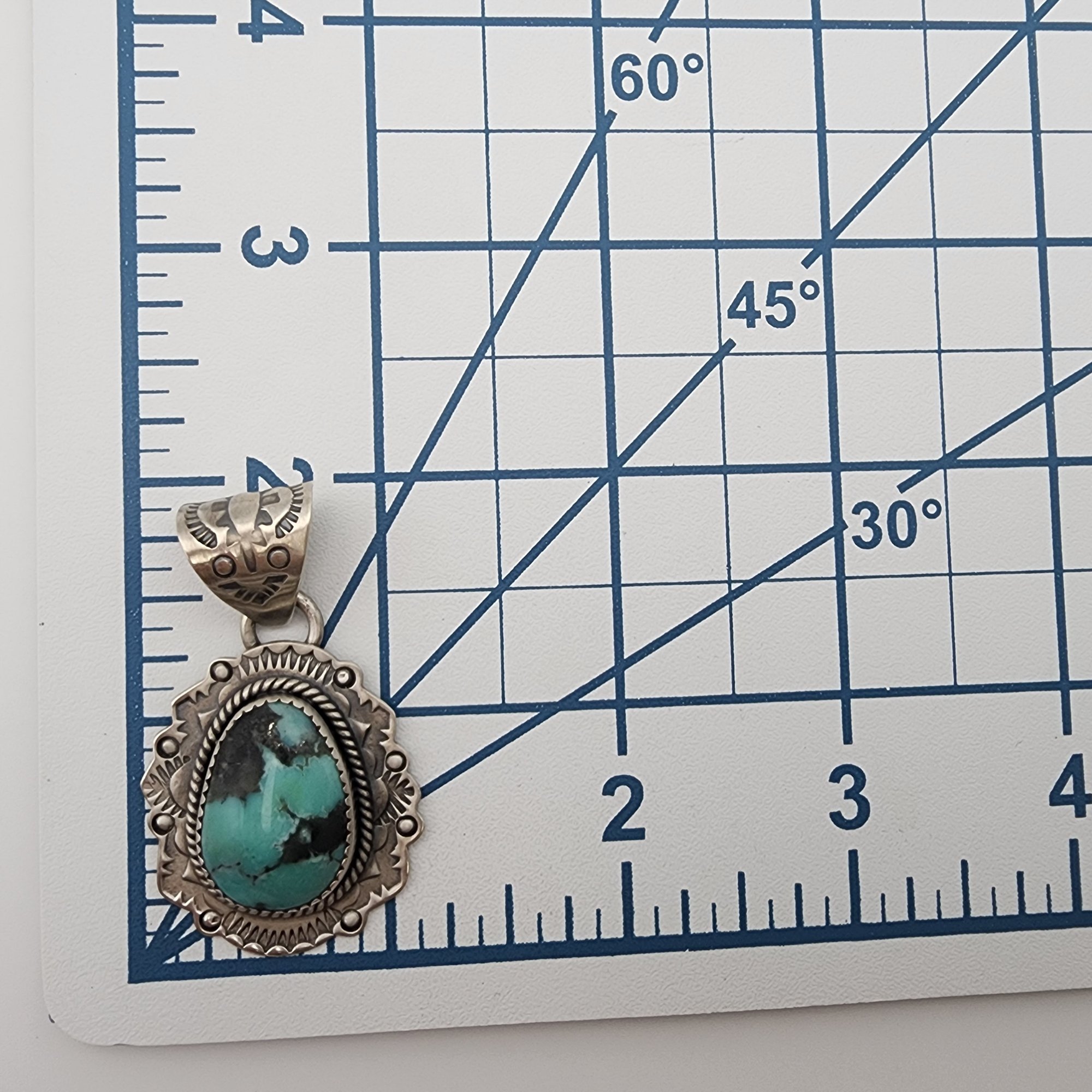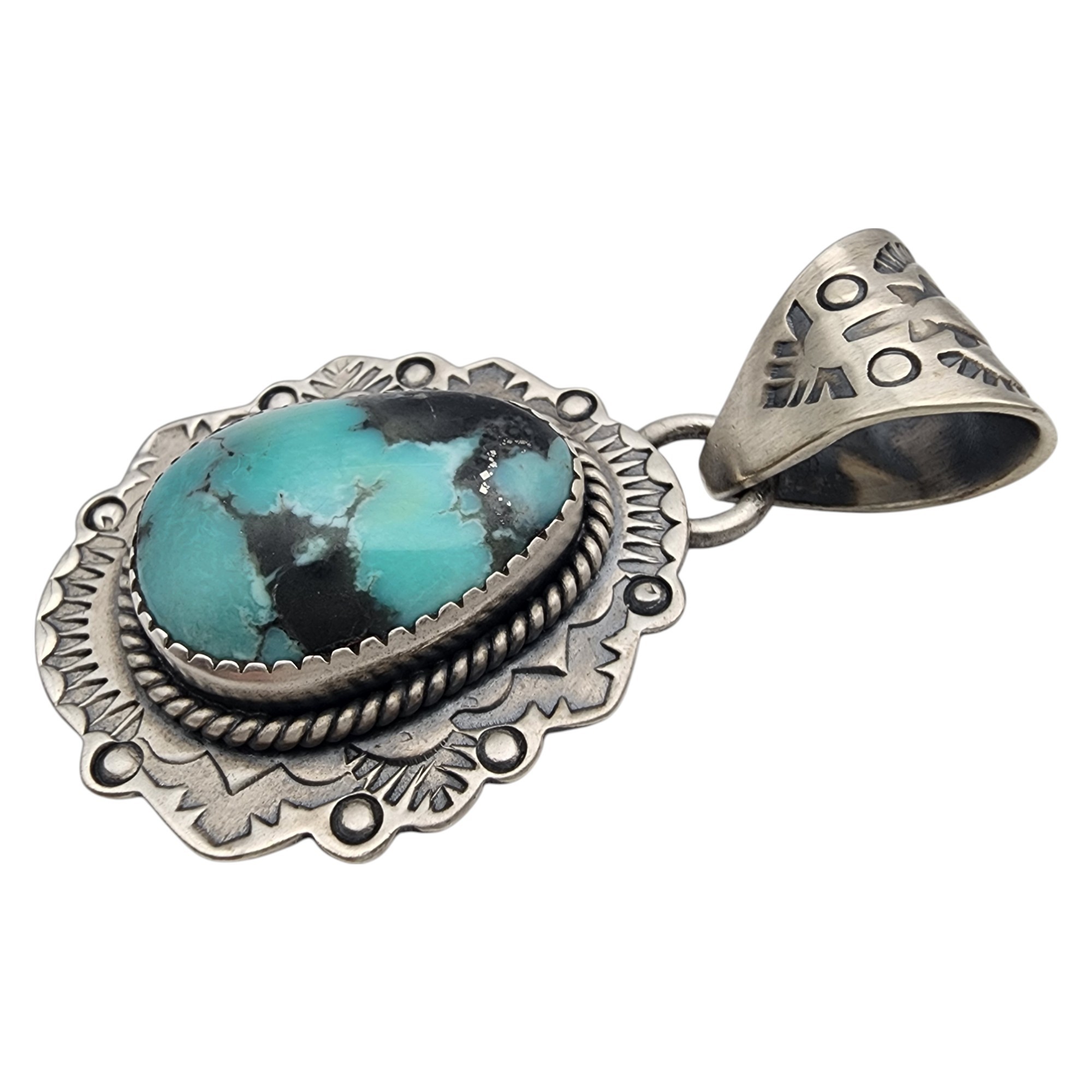 Zia Southwest Sterling Turquoise Stamped Pendant | 13.7g