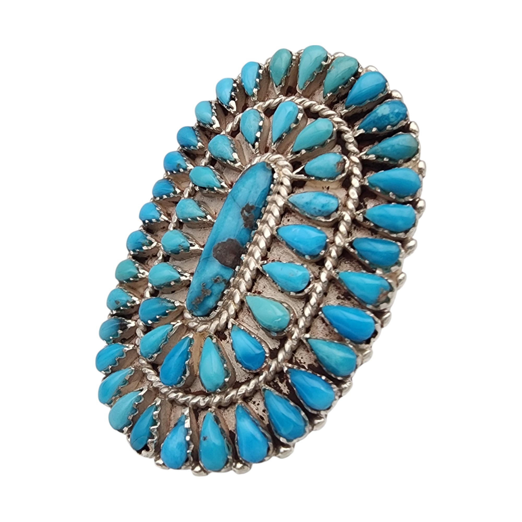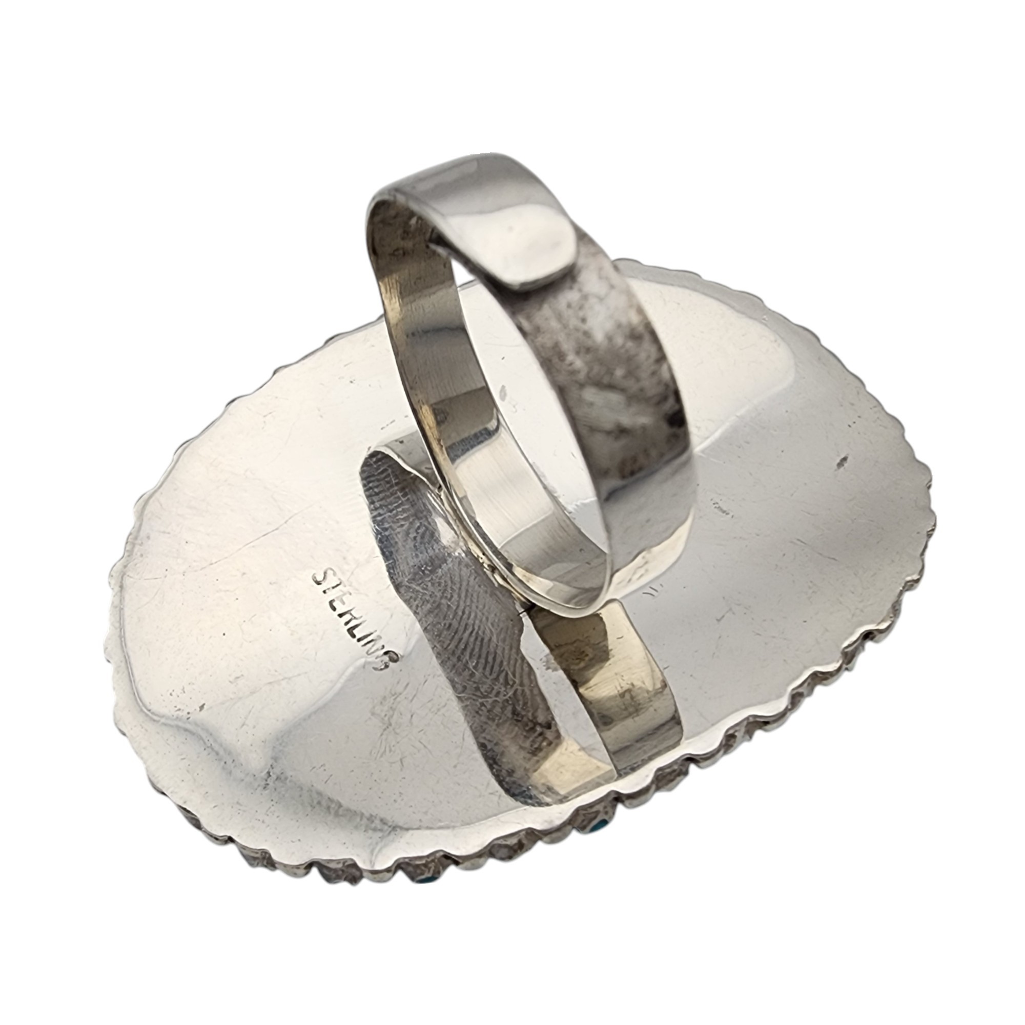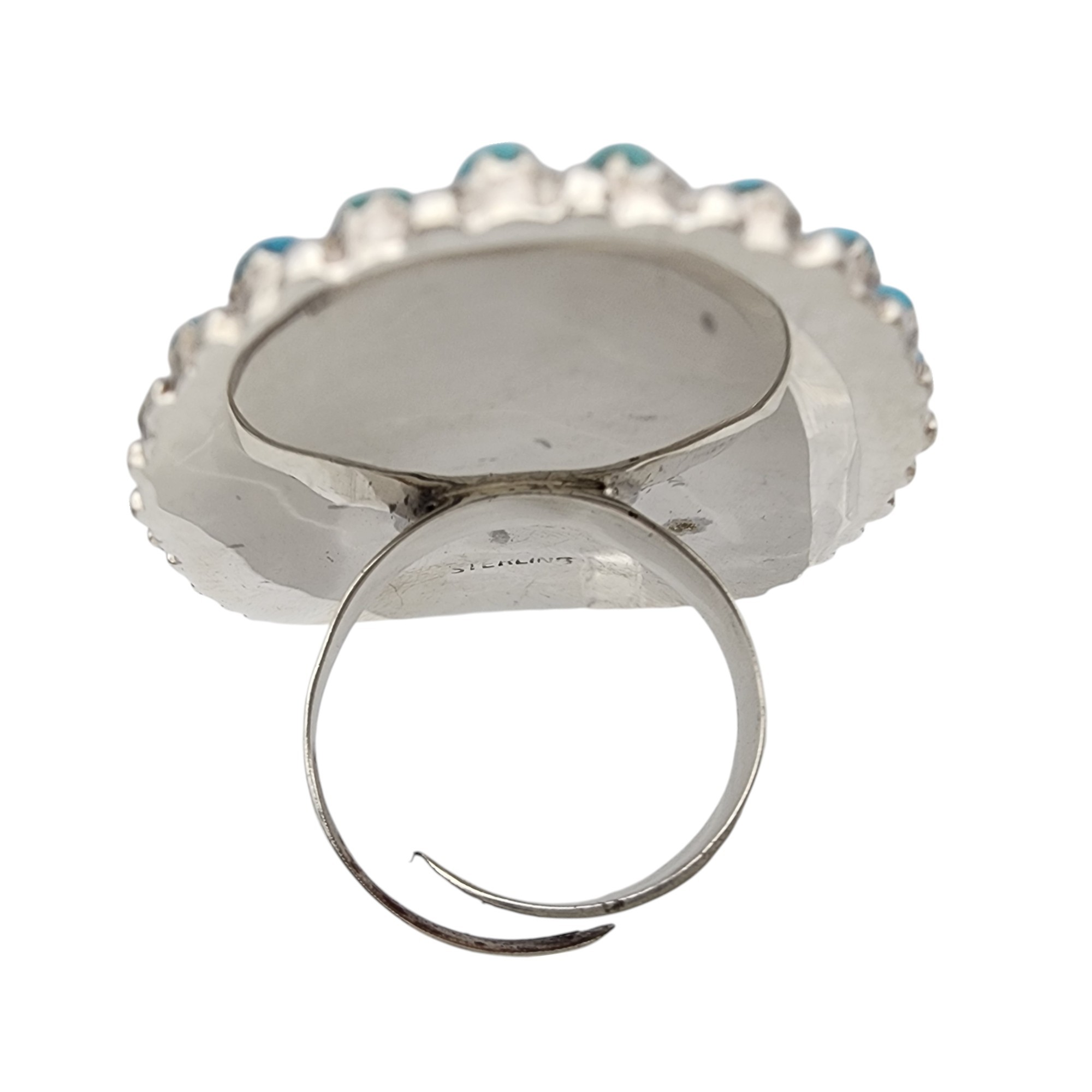 Southwest Sterling Petit Point Cluster Ring Adjustable 15.2g – note – some sticky residue around band of ring from where a previous price tag sticker was.