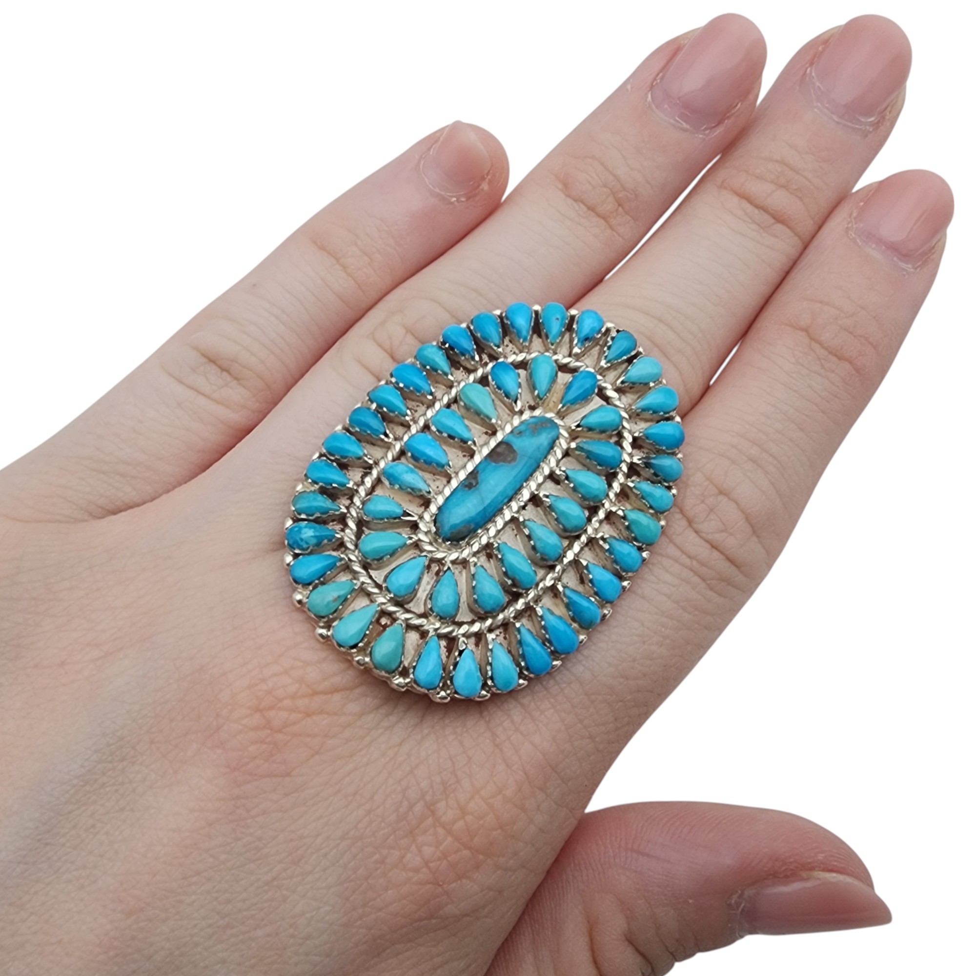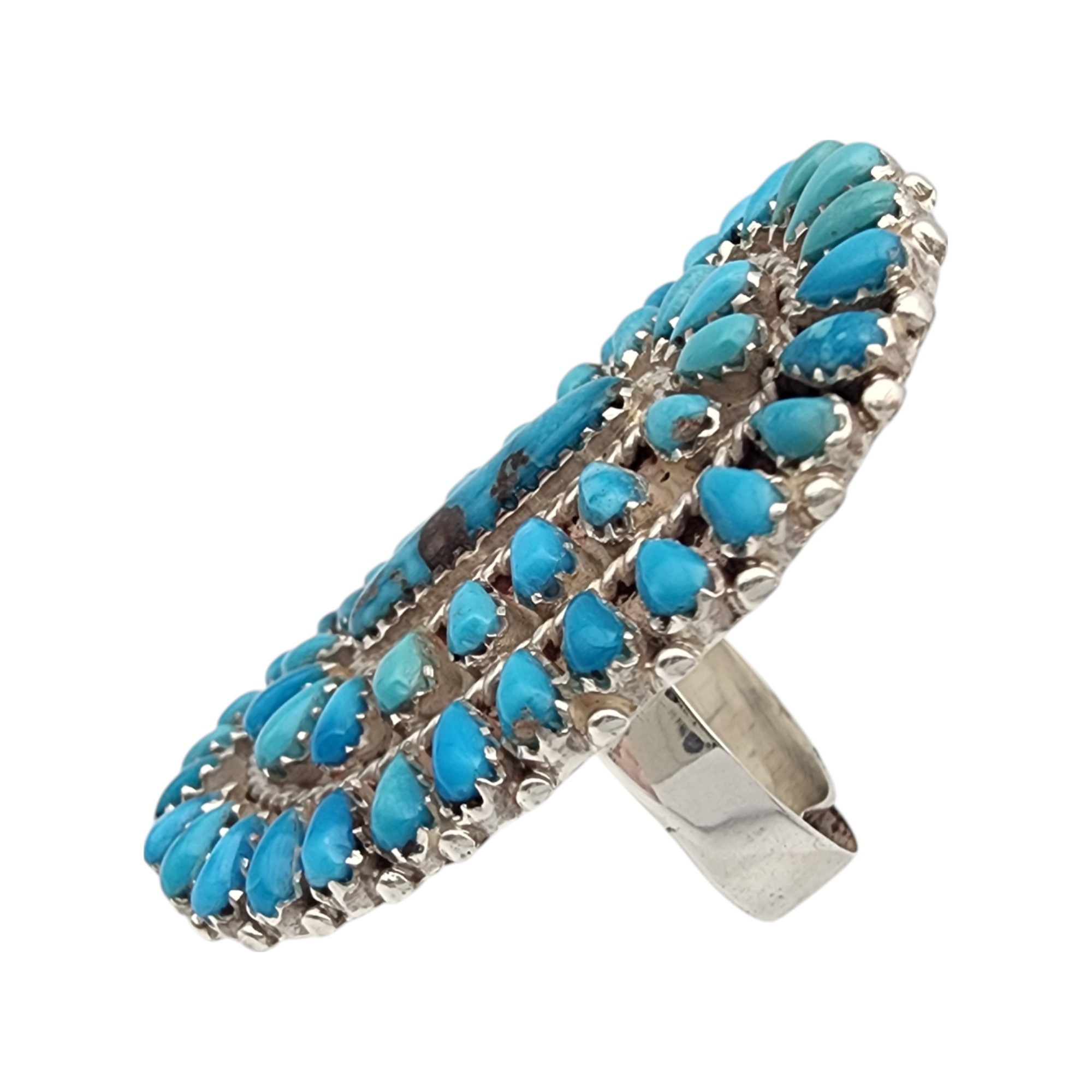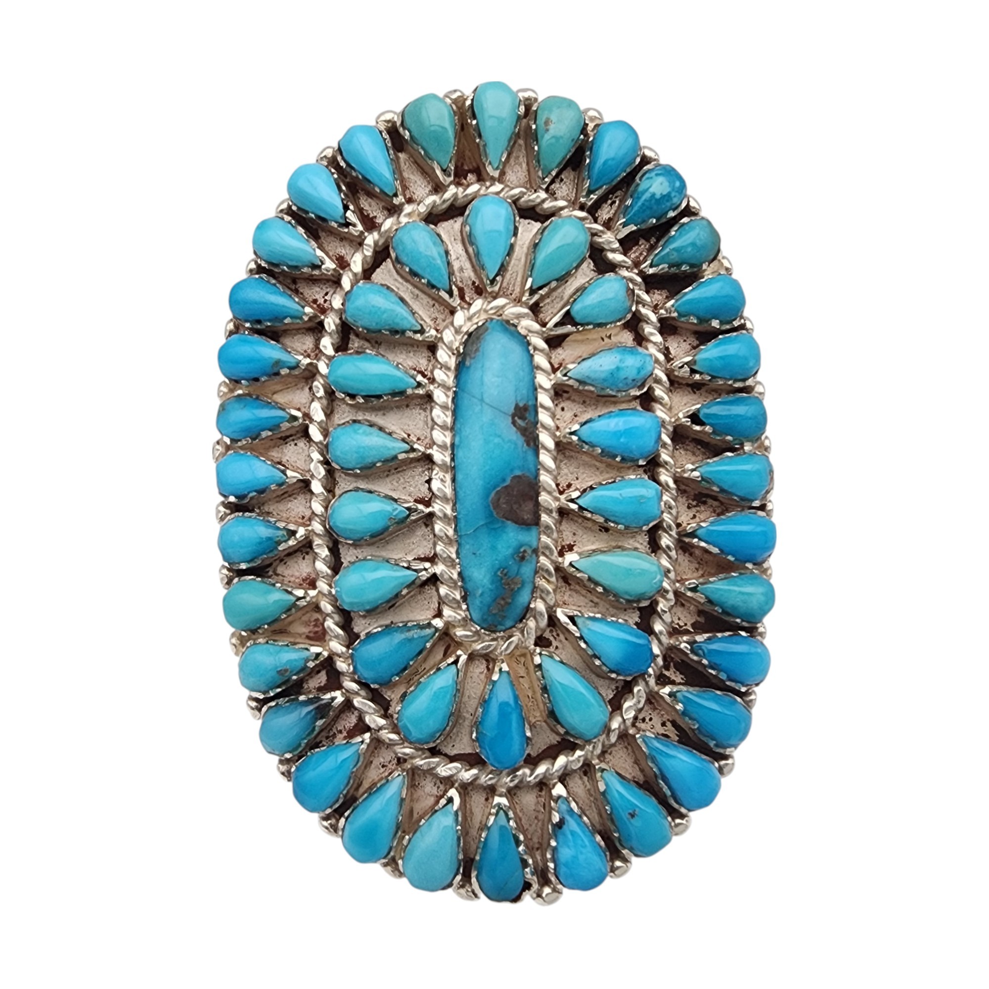 Southwest Sterling Petit Point Cluster Ring Adjustable 15.2g – note – some sticky residue around band of ring from where a previous price tag sticker was.