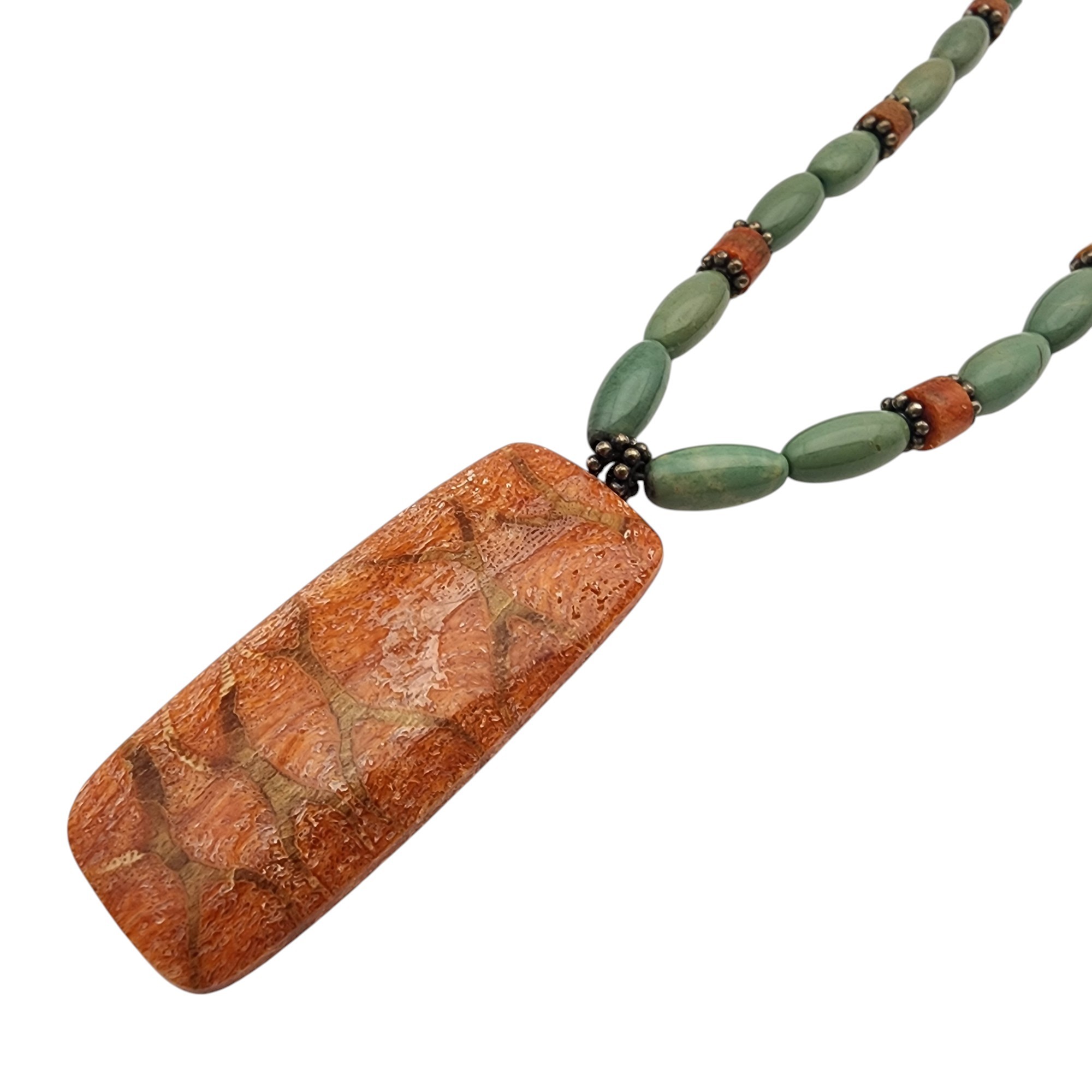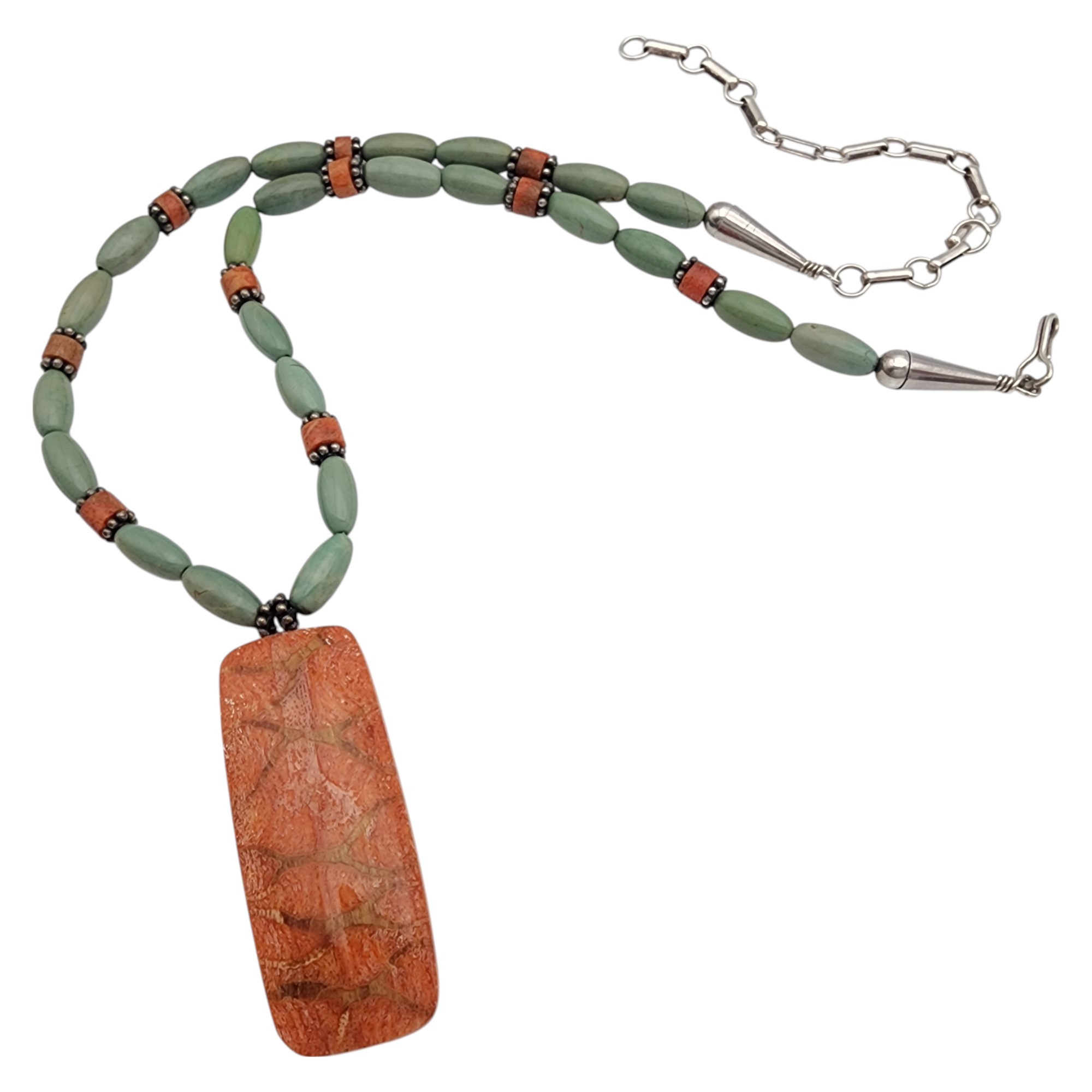 Southwest Sterling Spiny Oyster Bead Necklace | 20.6g