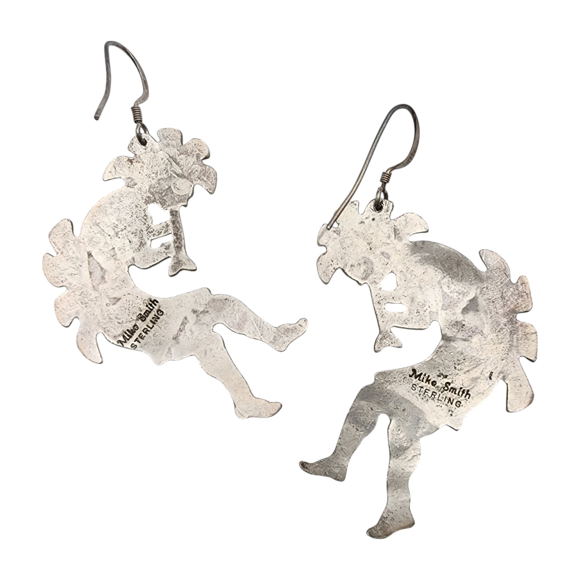 Wow! Large Mike Smith Navajo Sterling Kokopelli Flute Player Earrings | 10.5g