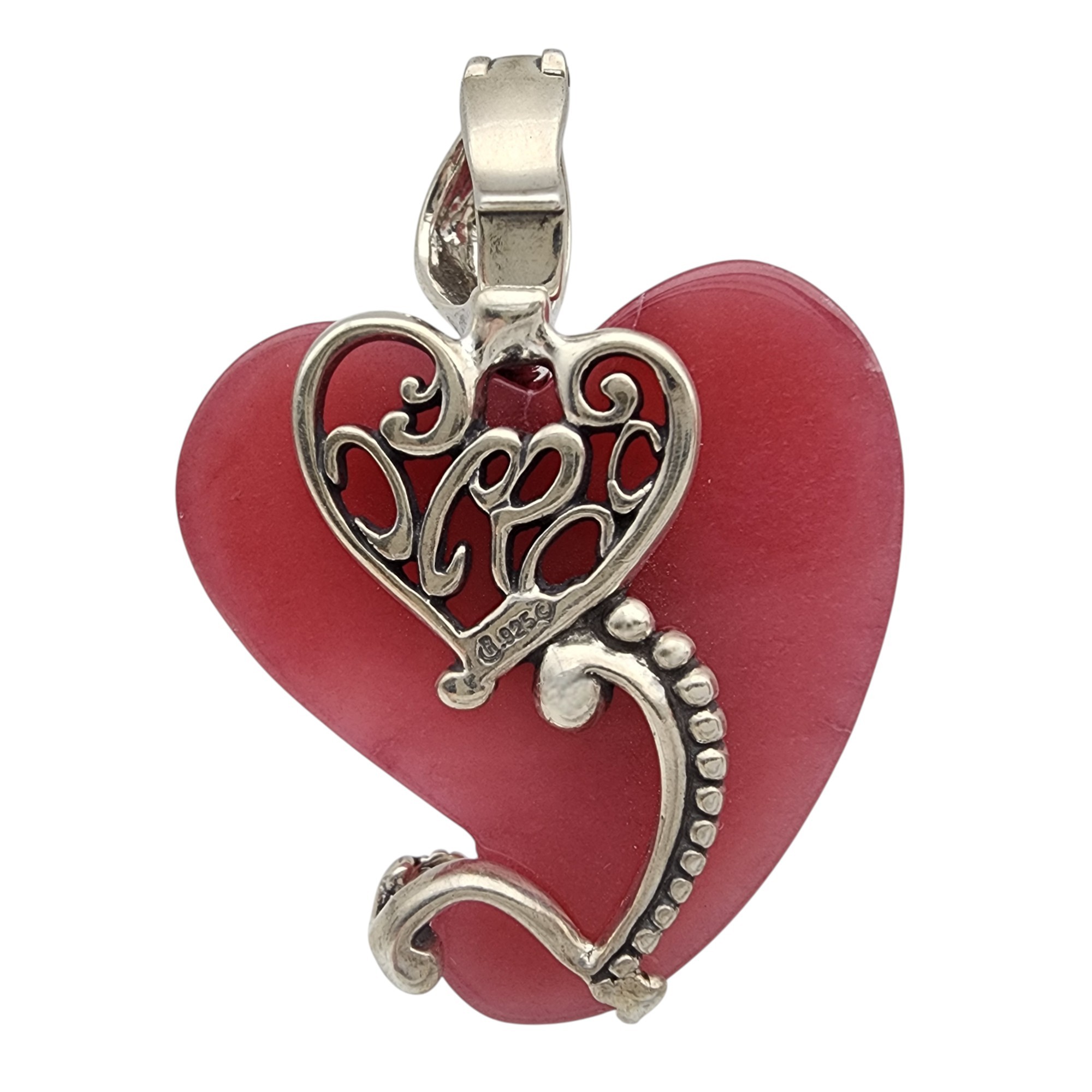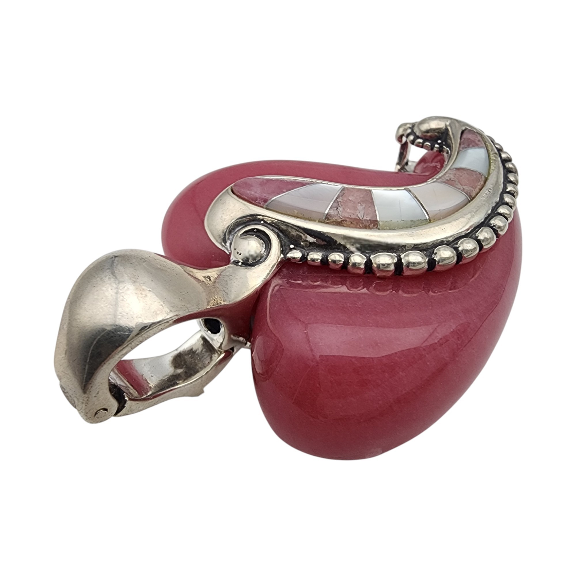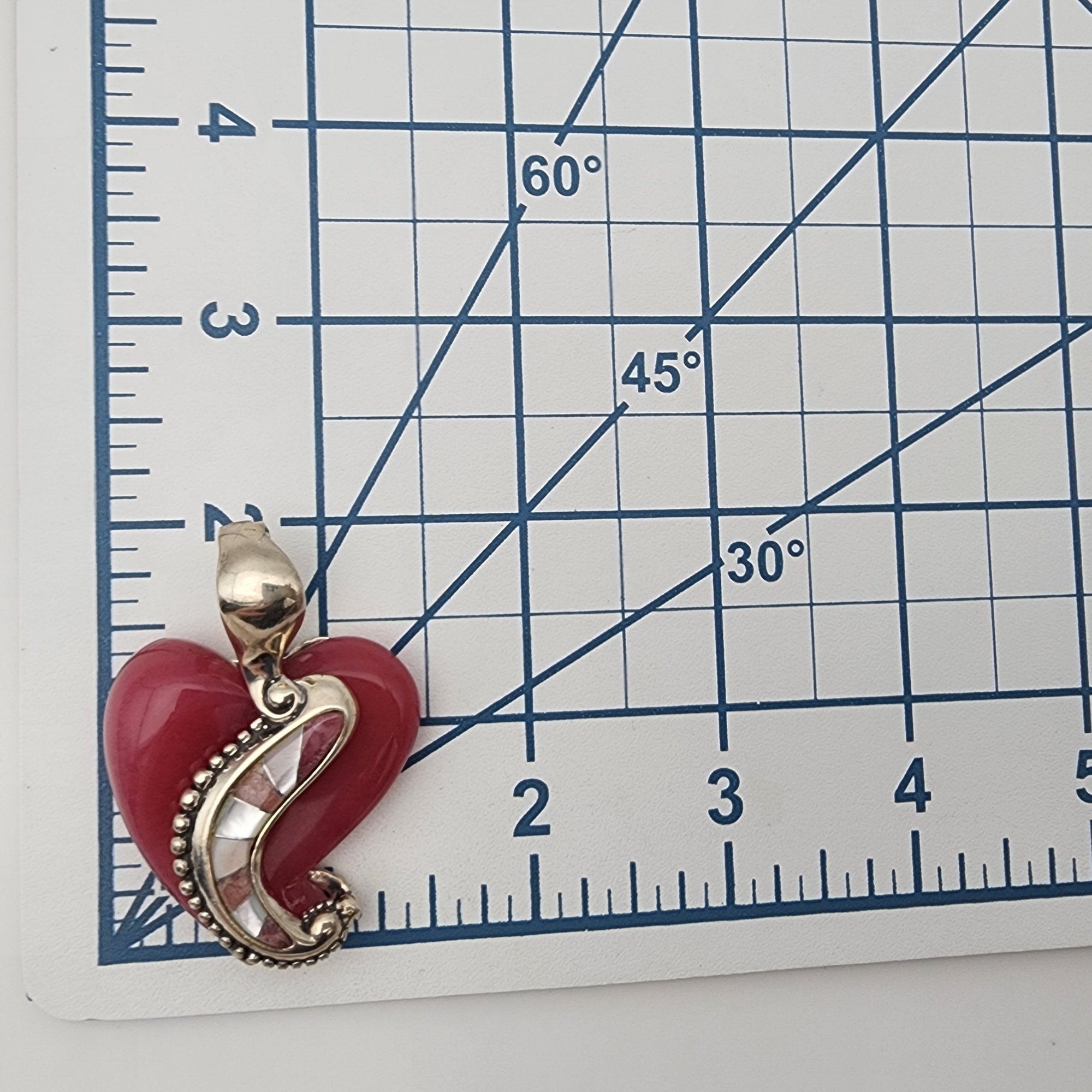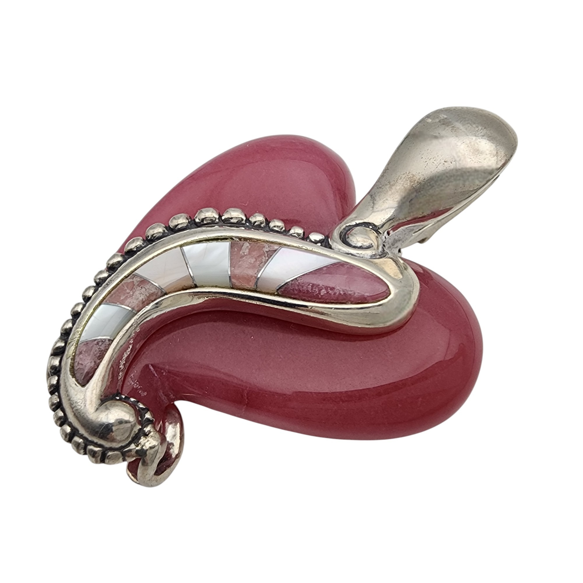 Big! Carolyn Pollack Relios Sterling Rhodochrosite and Mother of Pearl Inlay Heart Pendant | 30.8g