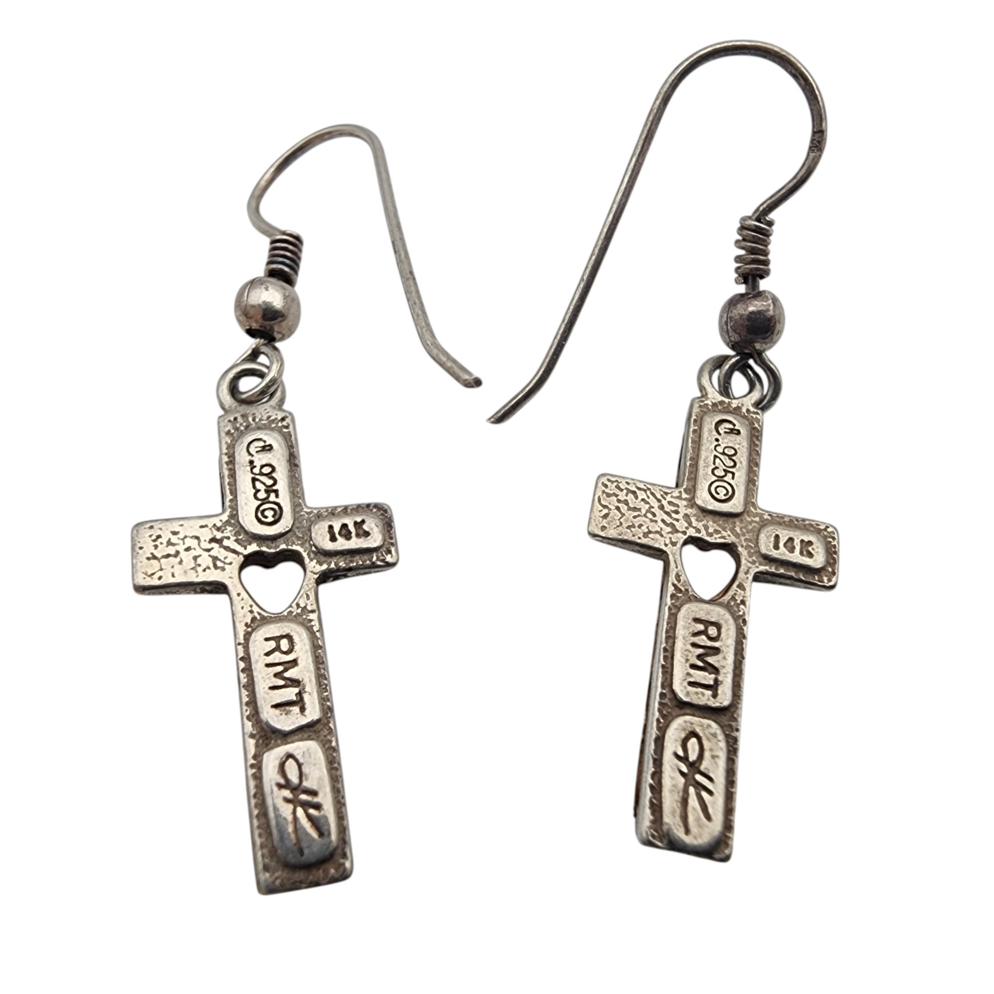 Roderick Tenorio Santo Domingo & Carolyn Pollack Relios 14k Gold and Sterling Cross Earrings 3g