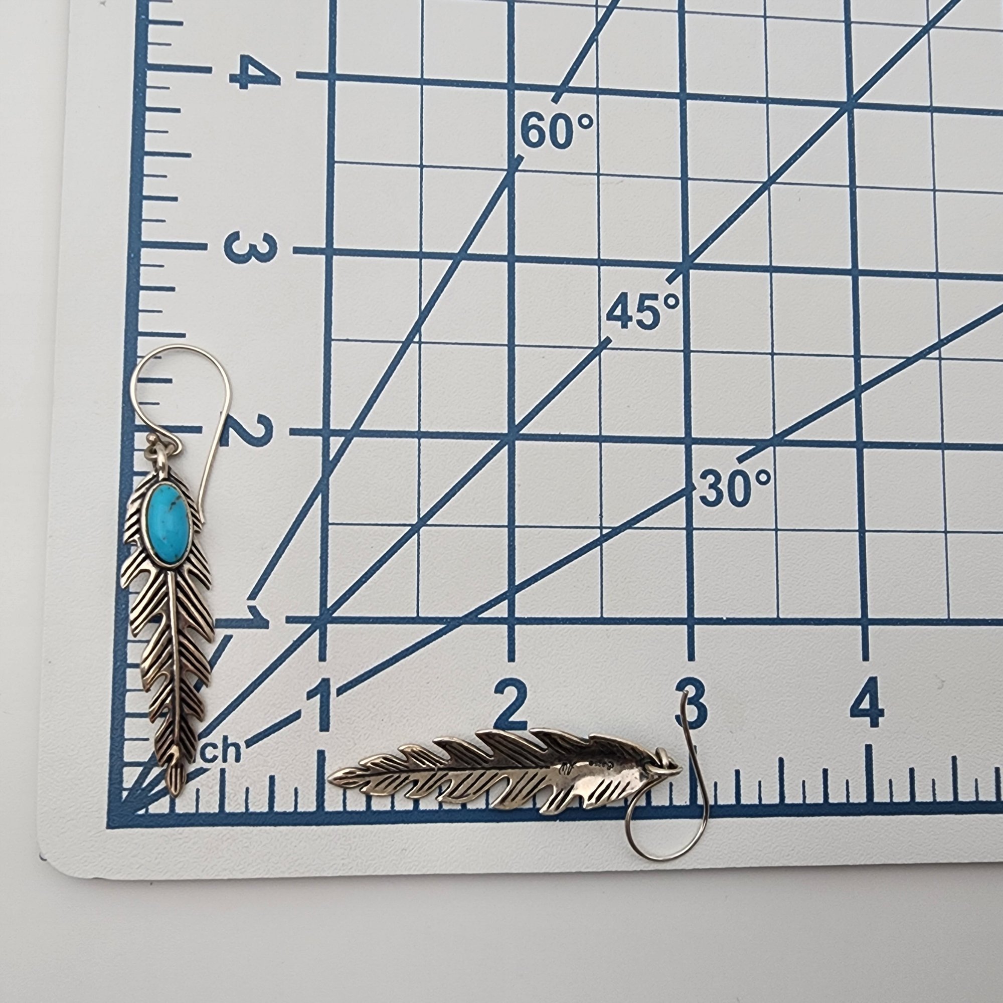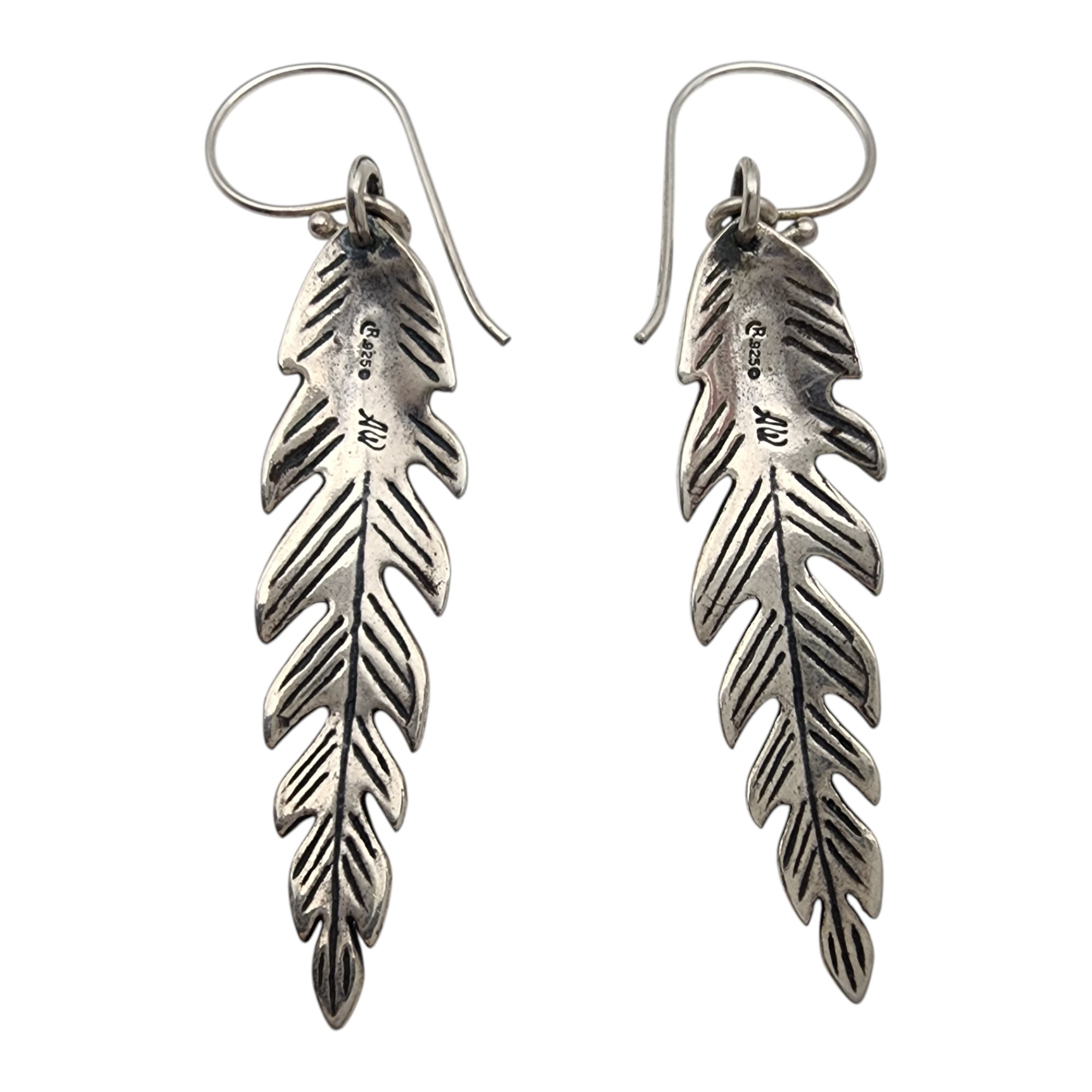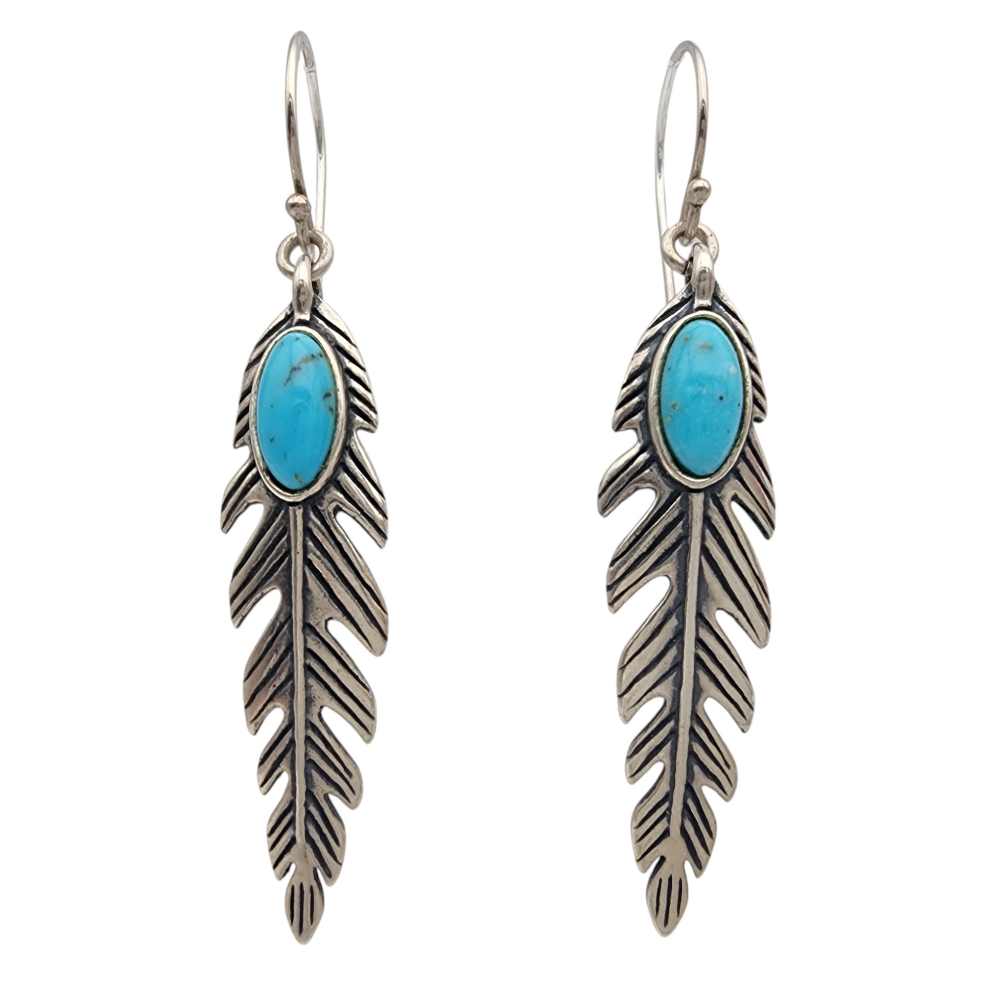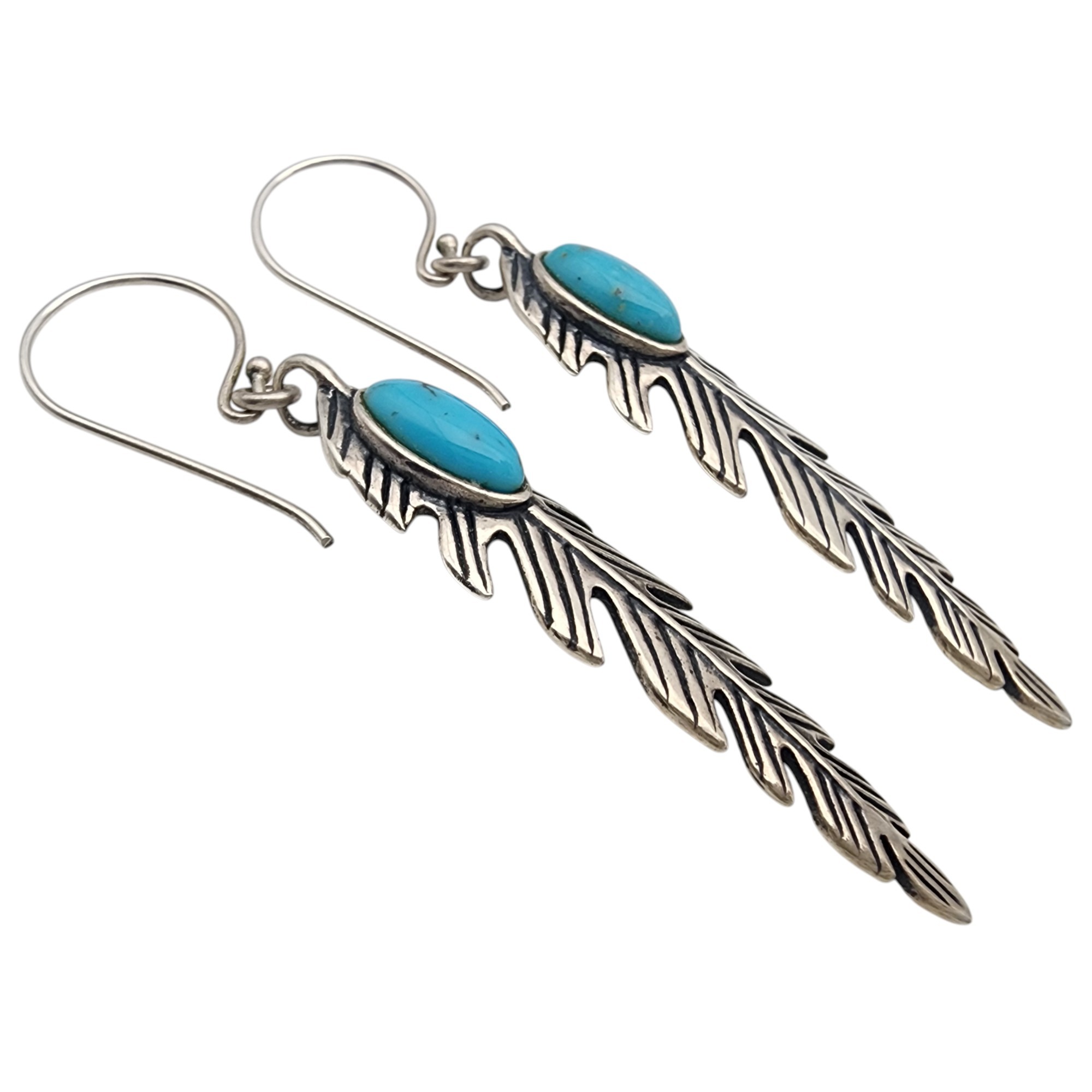 Signed AW & Carolyn Pollack Relios Sterling Turquoise Feather Earrings | 7g