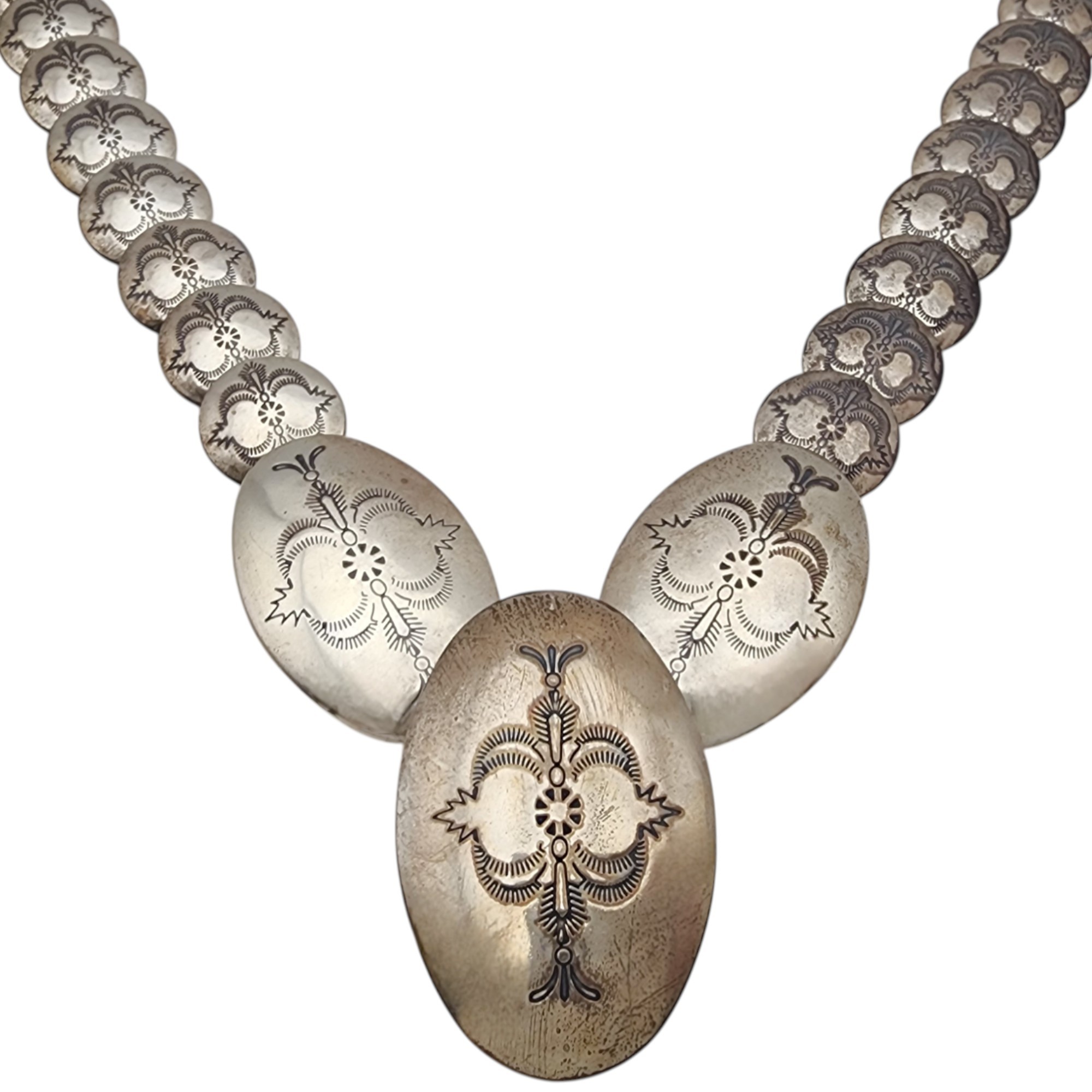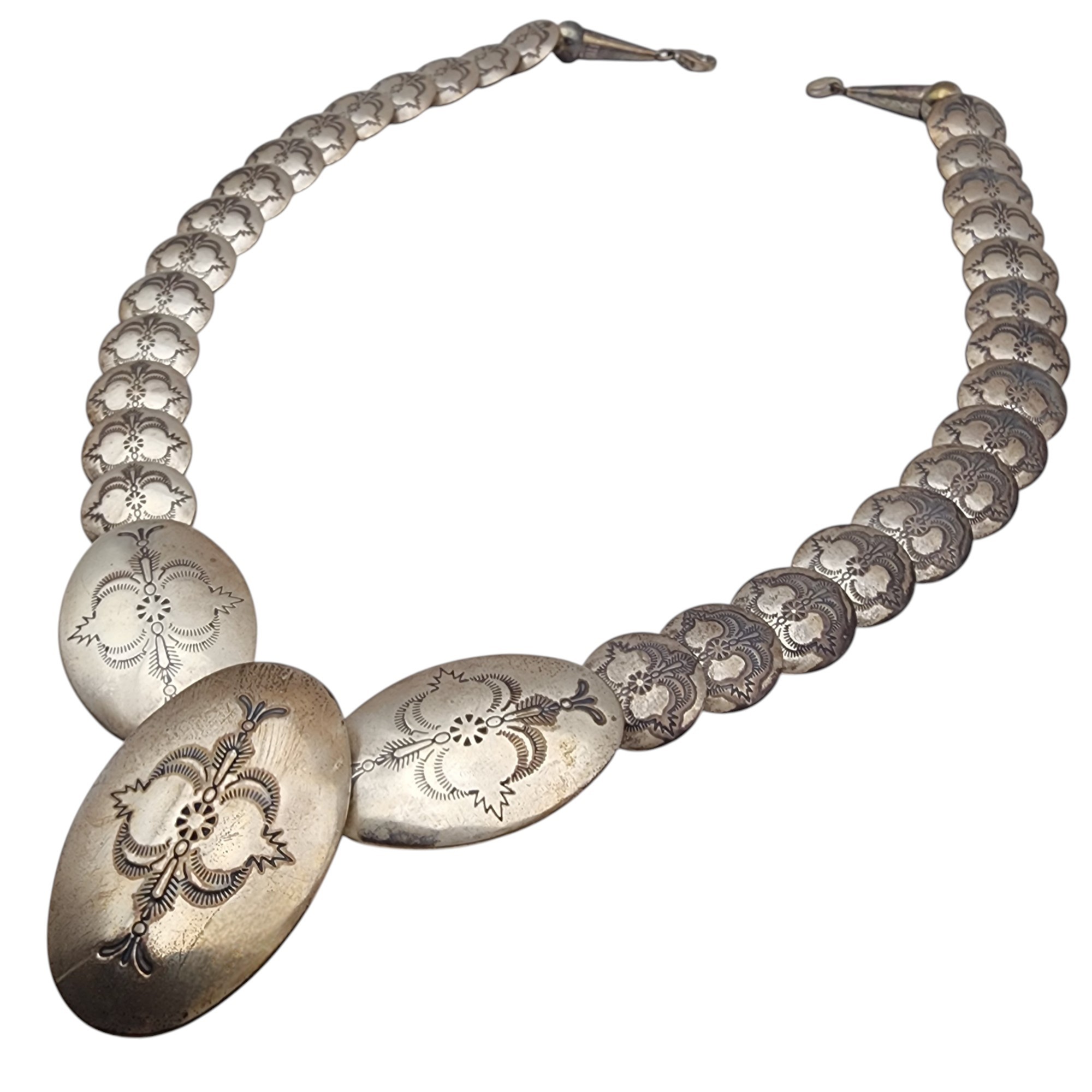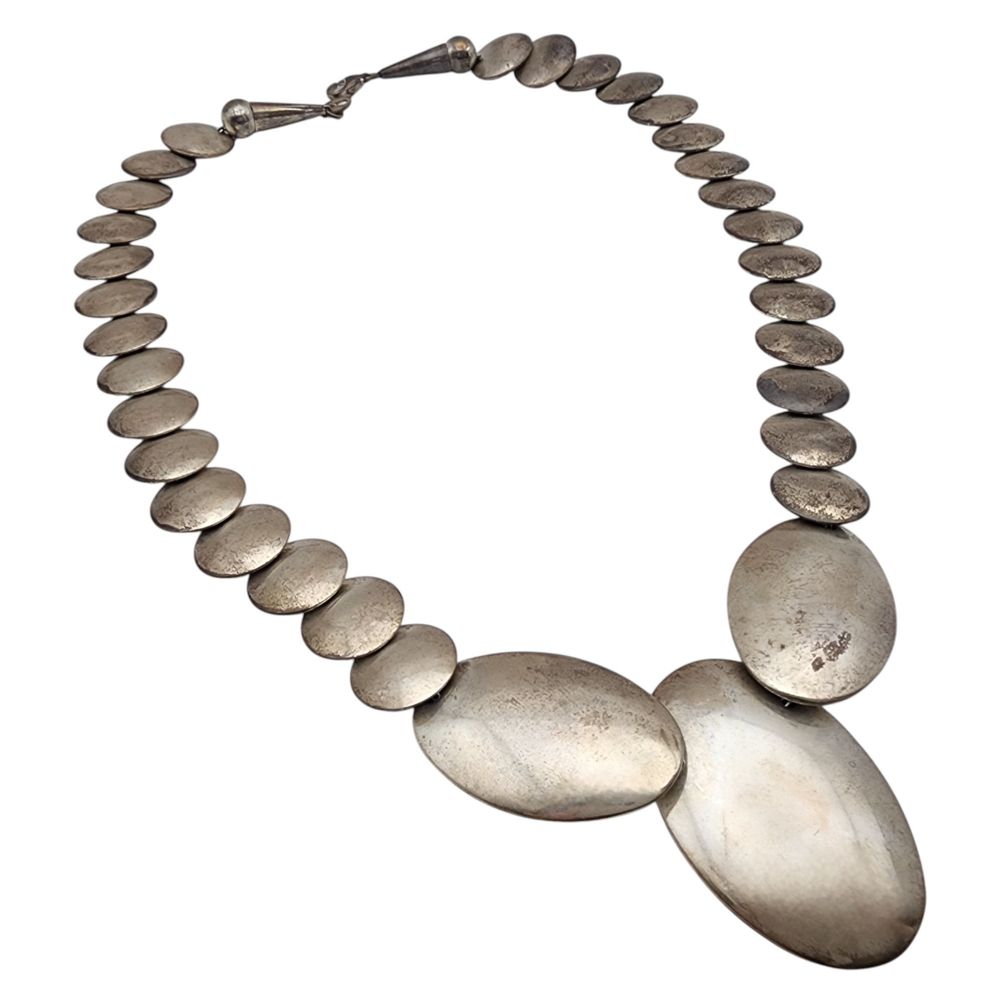 Carlisle Jewelry Co. Sterling Stamped Pillow Bead Necklace | 51g – see photos, one of the cones has a dent
