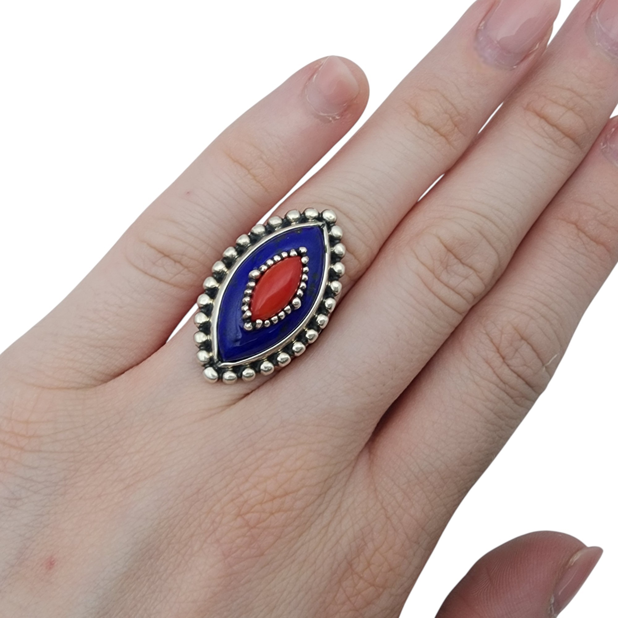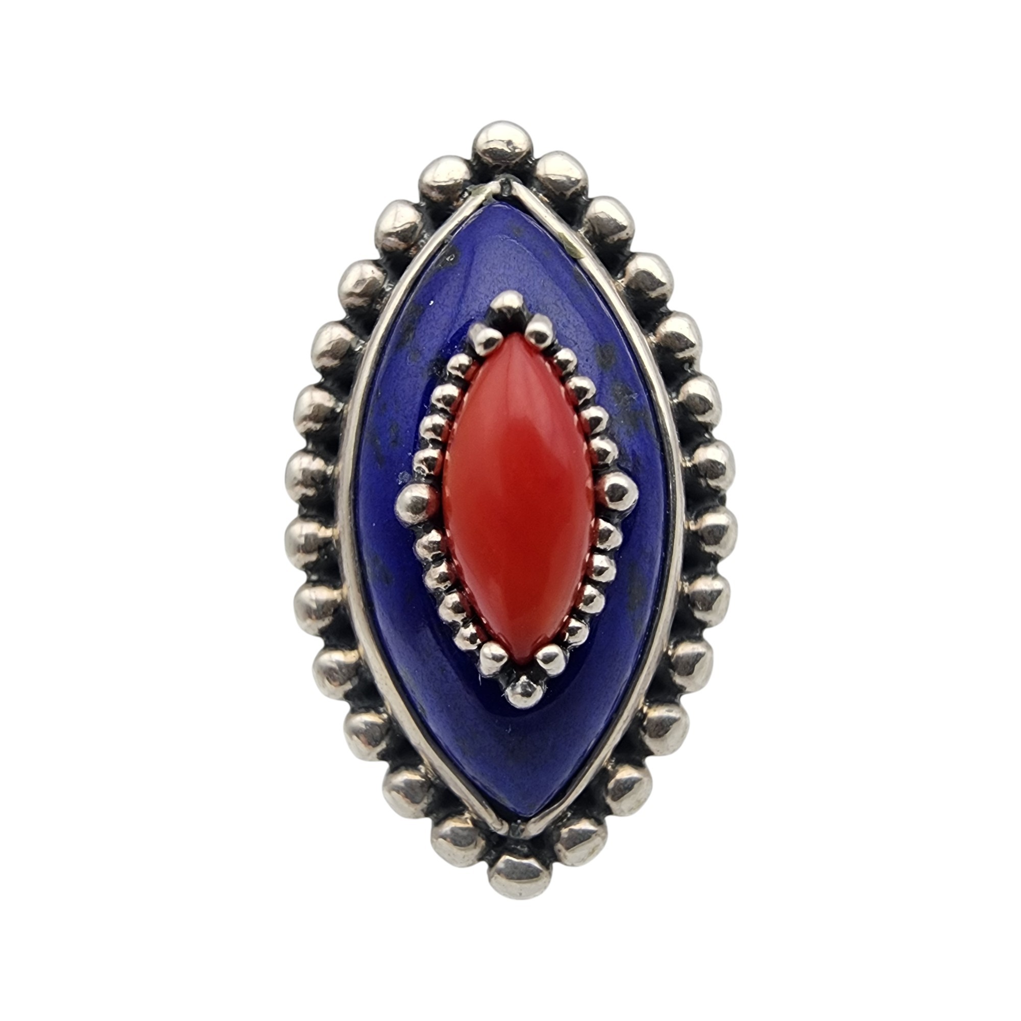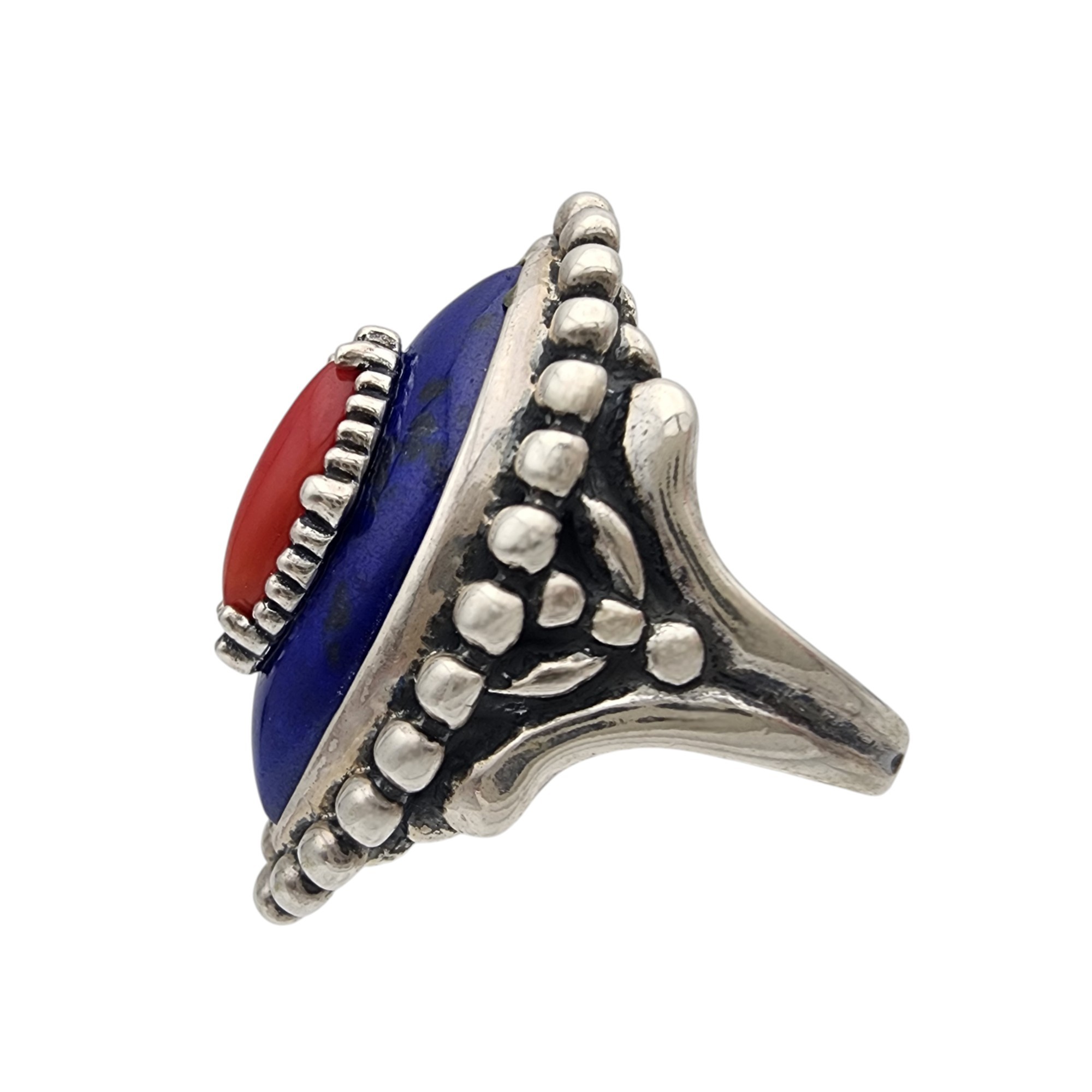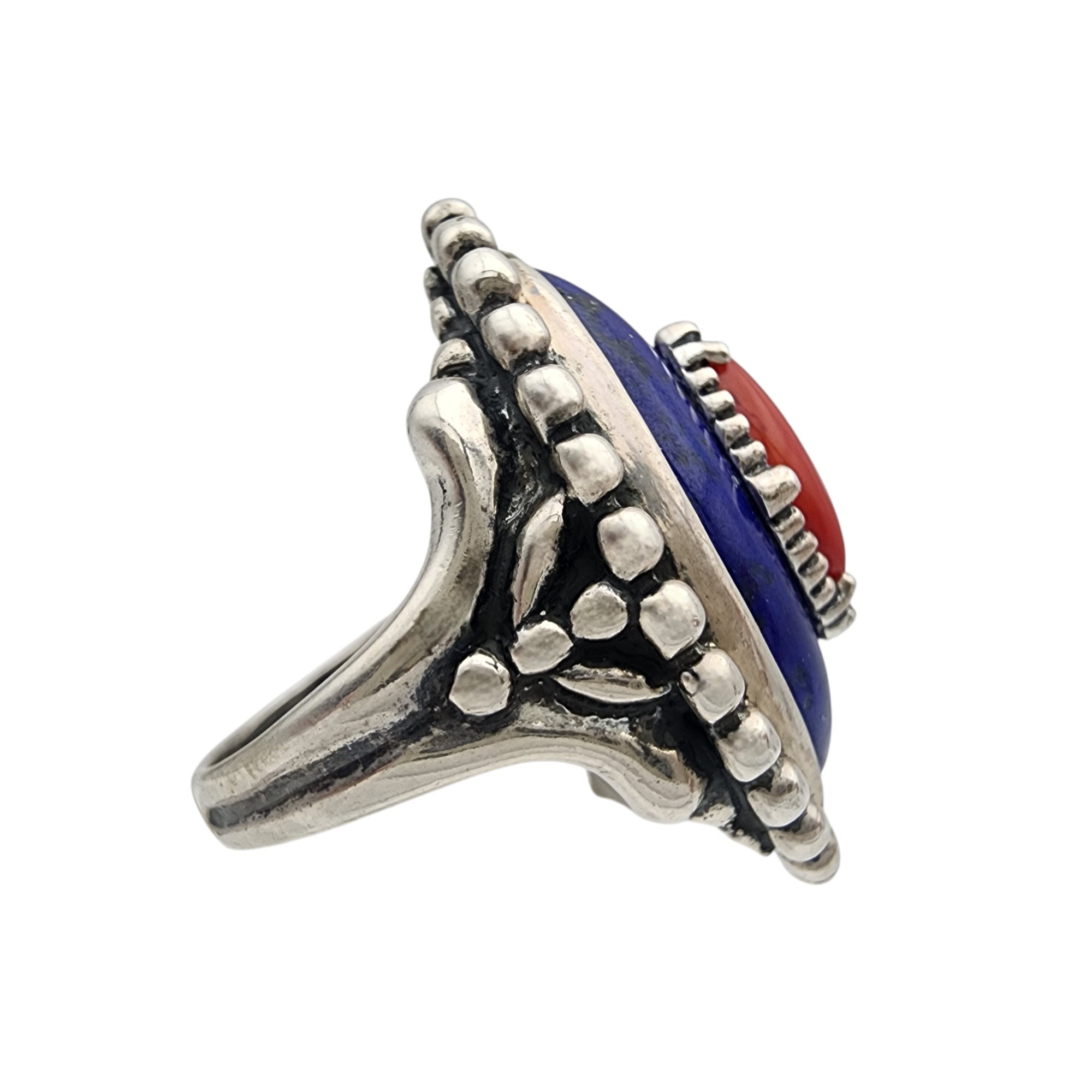 Carolyn Pollack Relios Sterling Multistone (Lapis Lazuli, Coral?) Ring Sz 6 | 11.7g