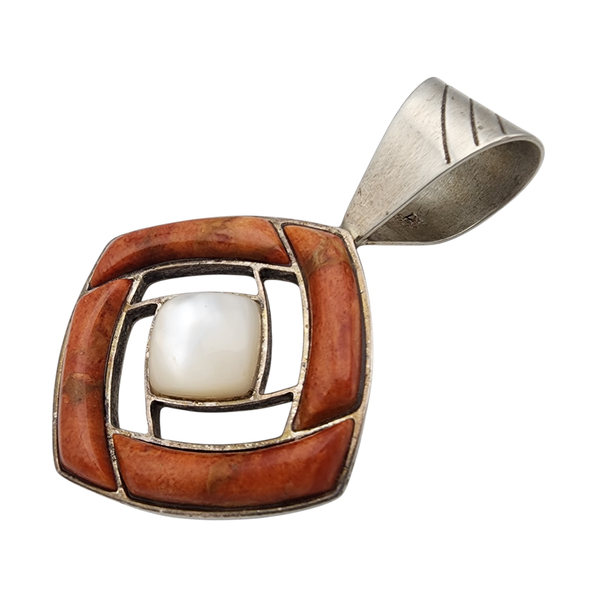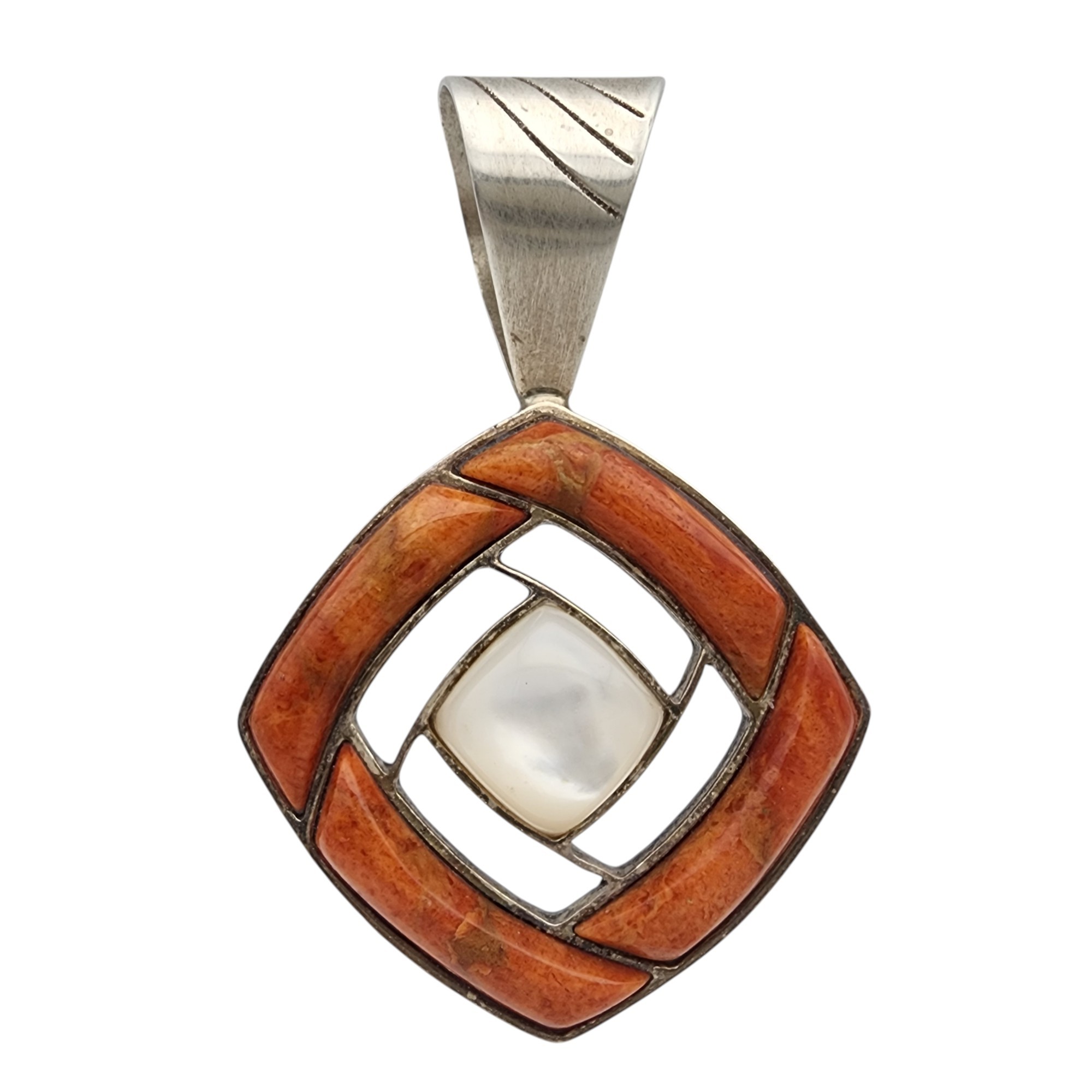 Jay King Mine Finds/Desert Rose Trading Sterling Coral Mother of Pearl Pendant 12.8g