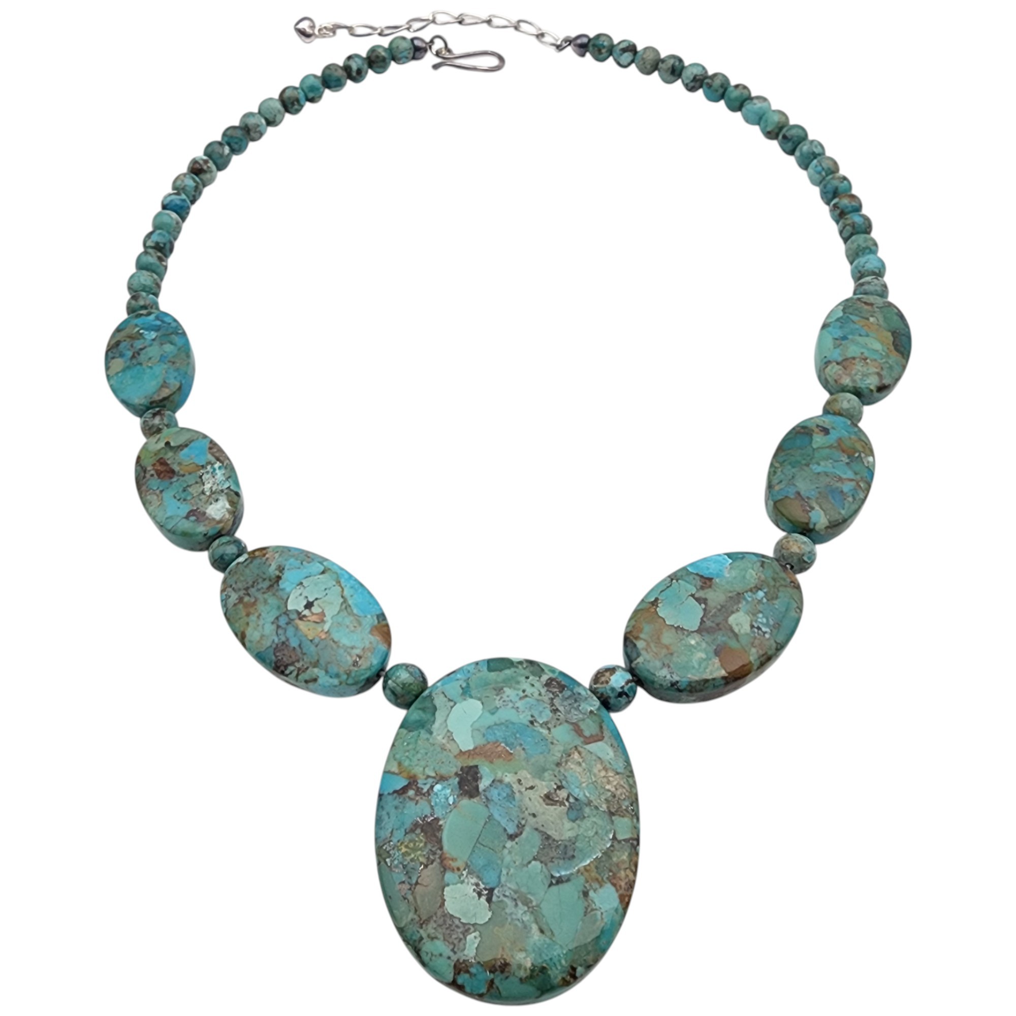 Jay King Mine Finds/Desert Rose Trading Sterling Turquoise Station Necklace 57.5g
