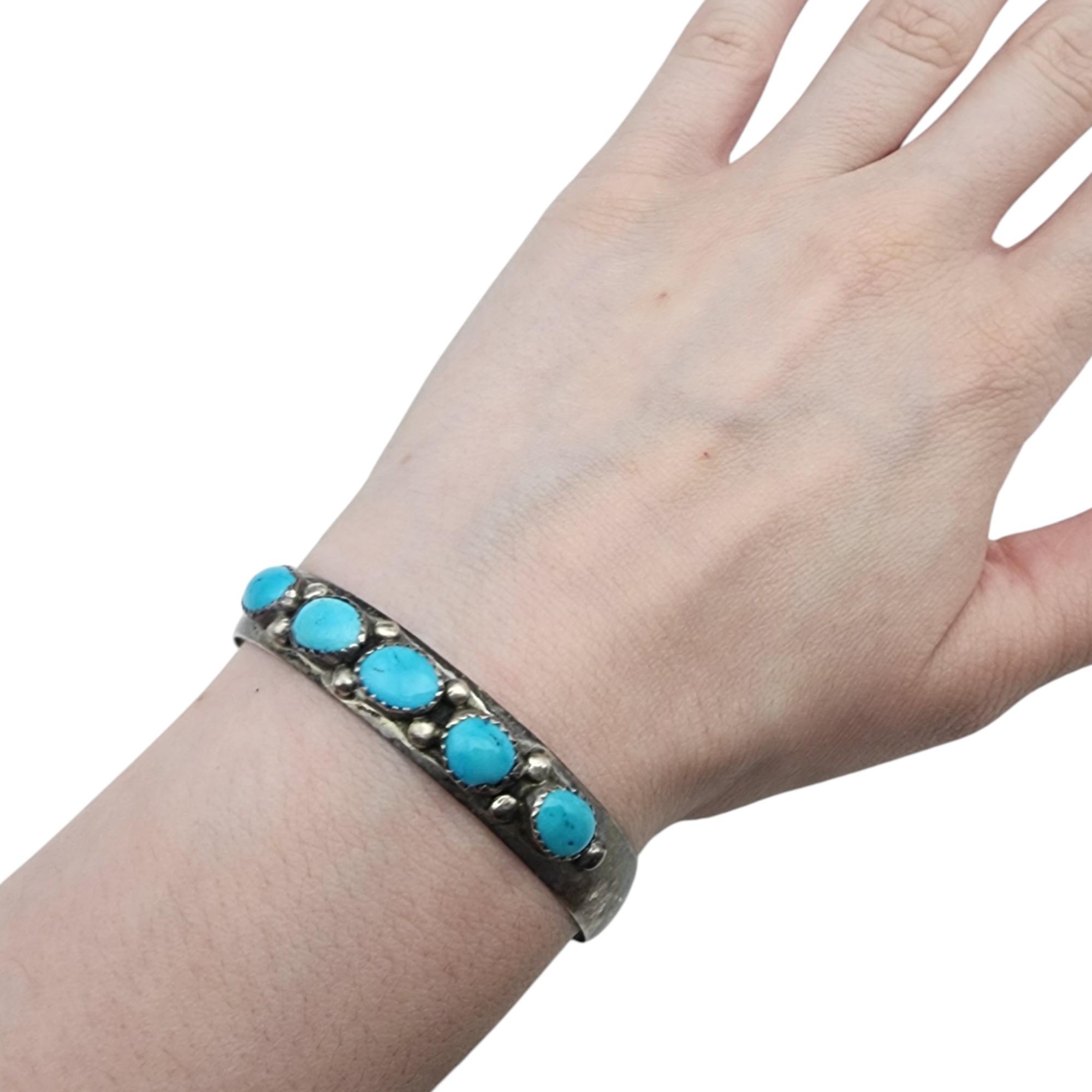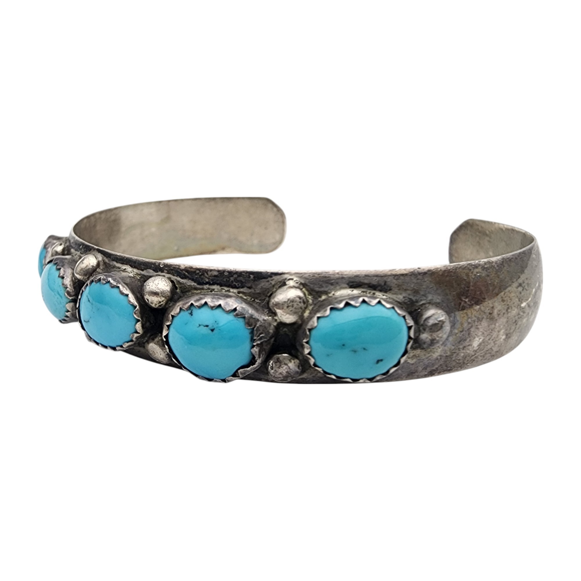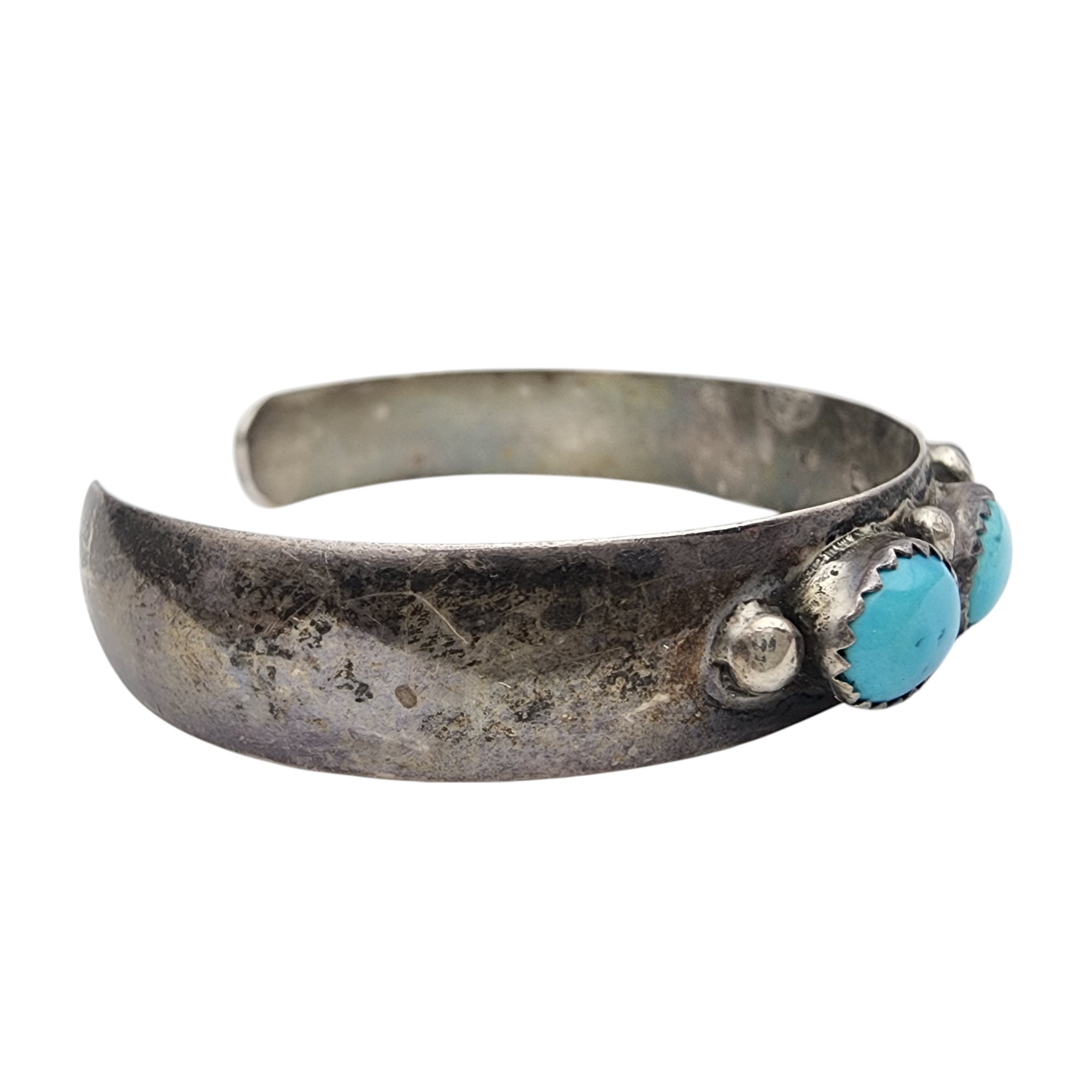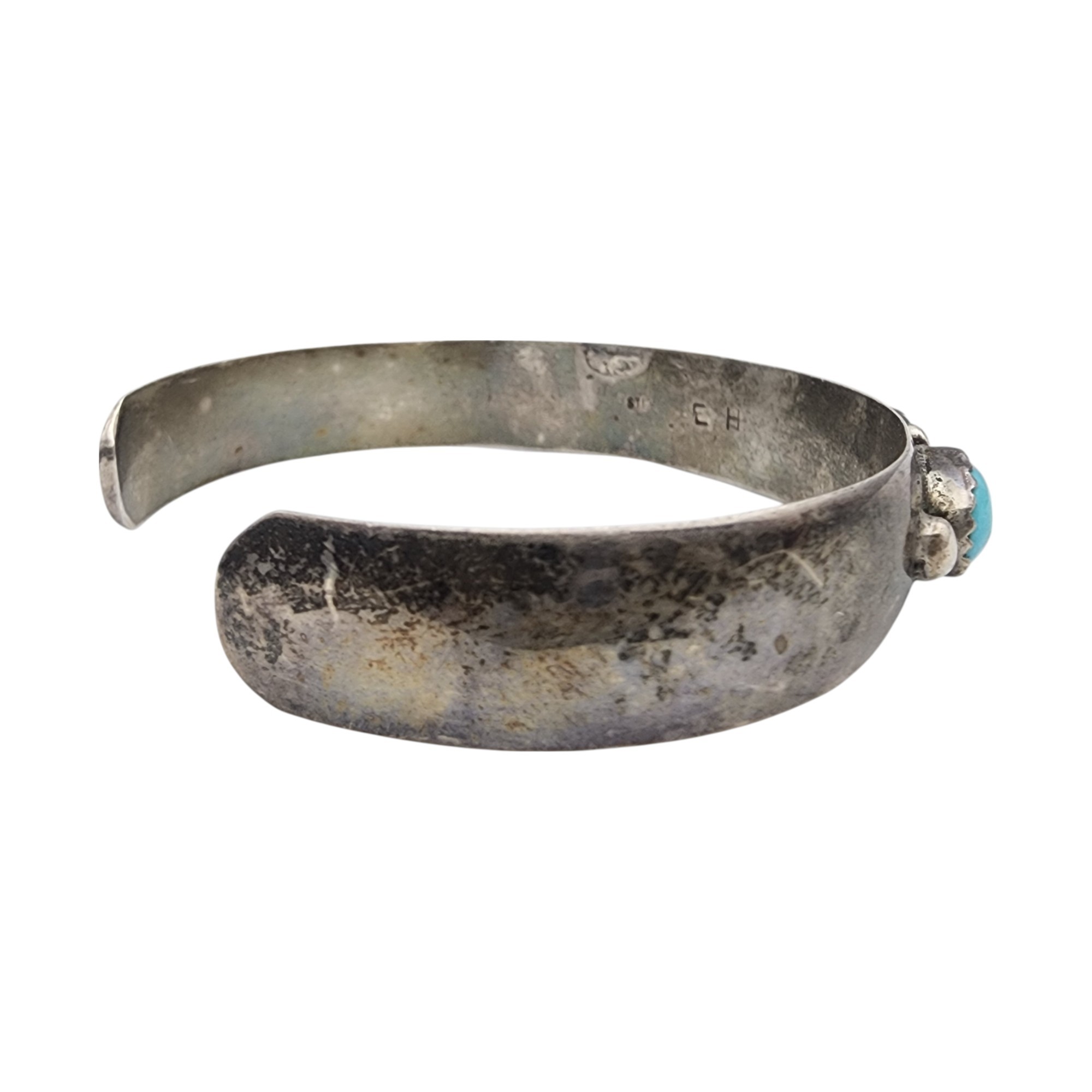 Signed CH or EH Vintage Navajo Sterling Turquoise Cuff Bracelet | 20.3g