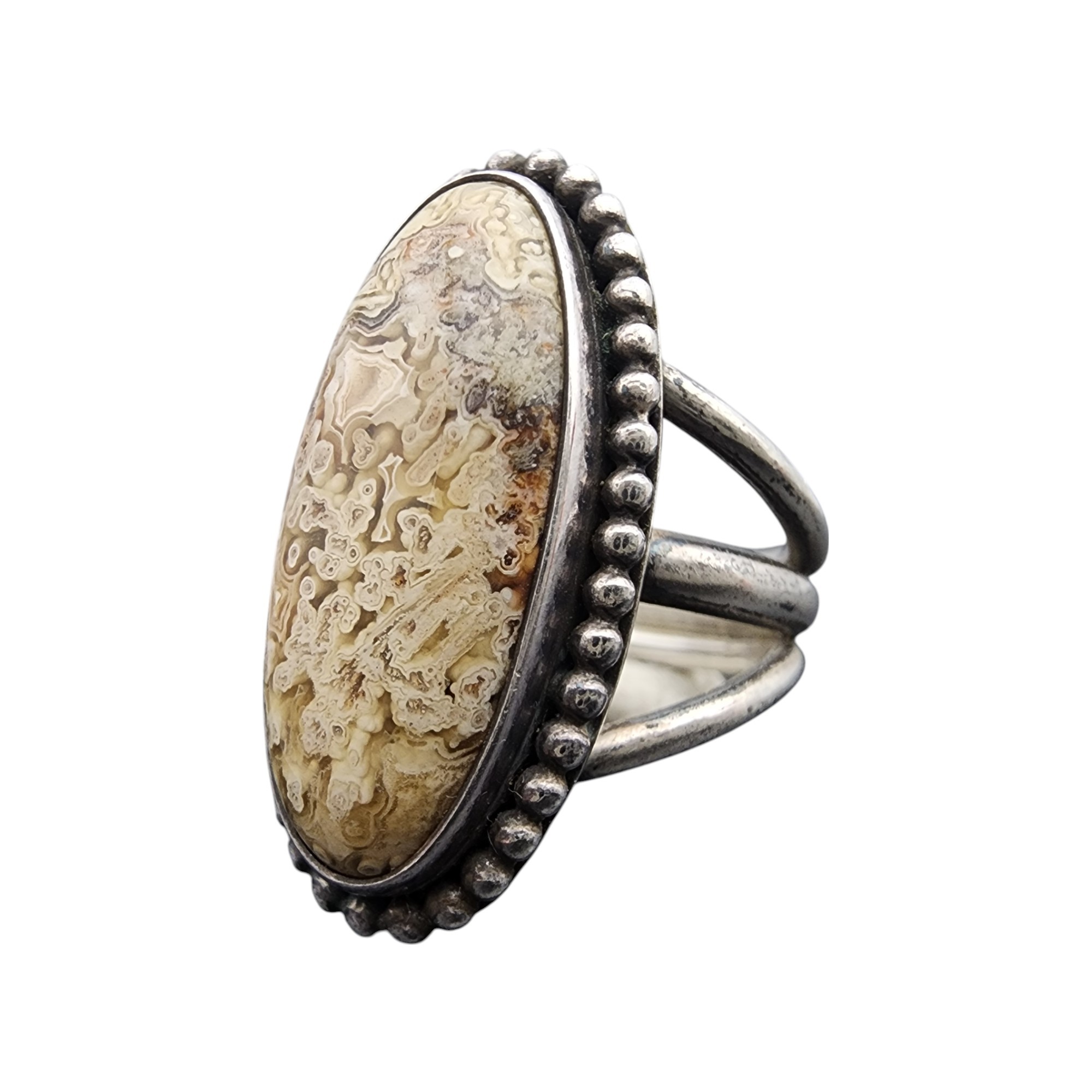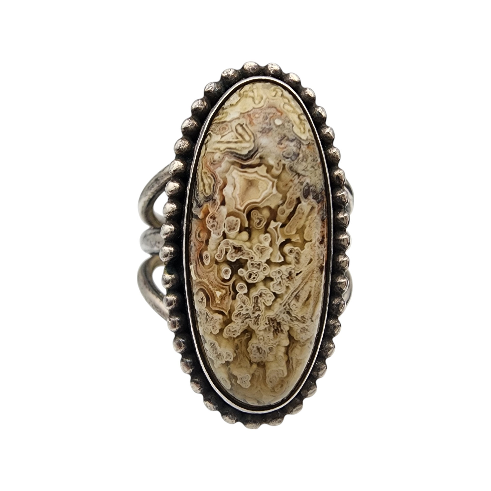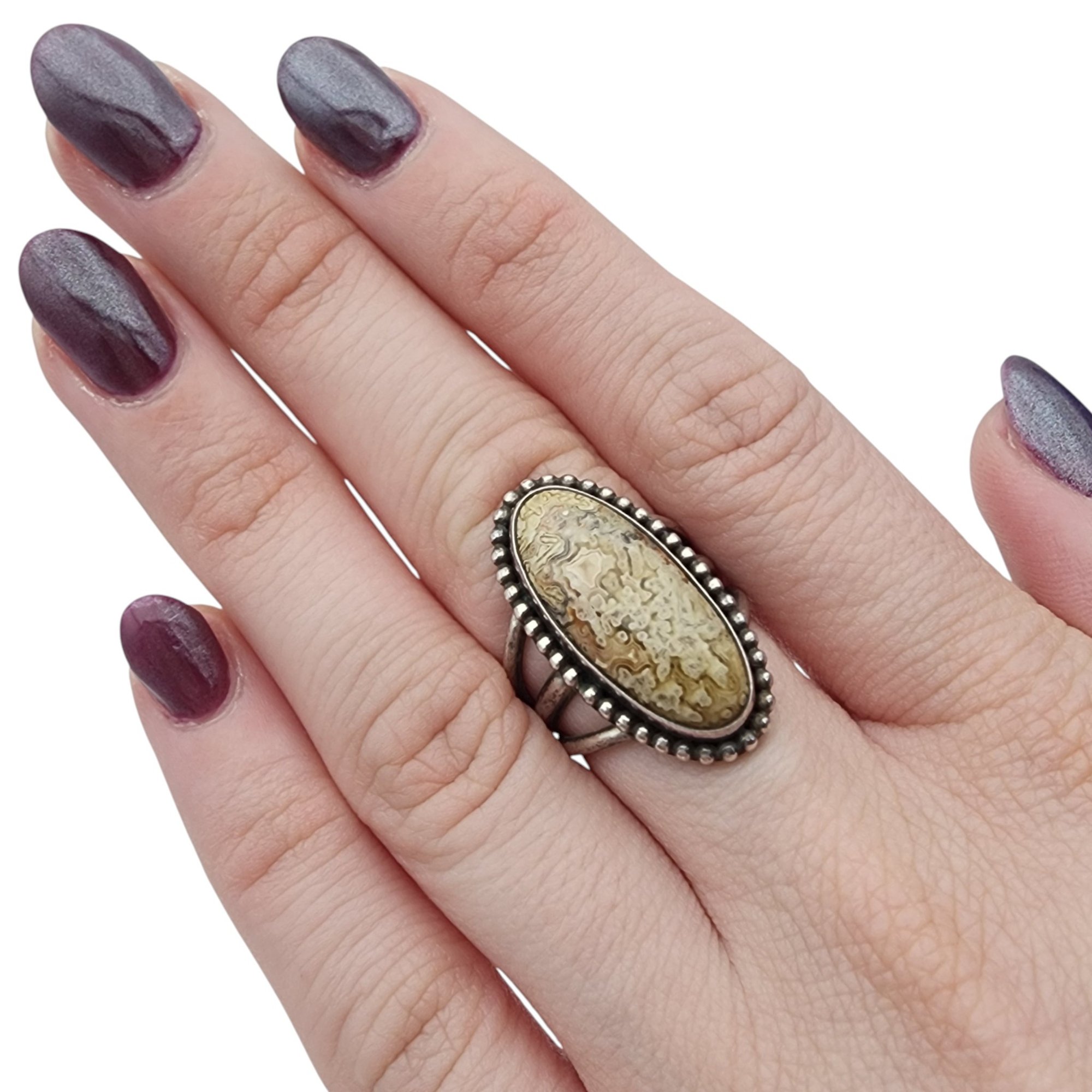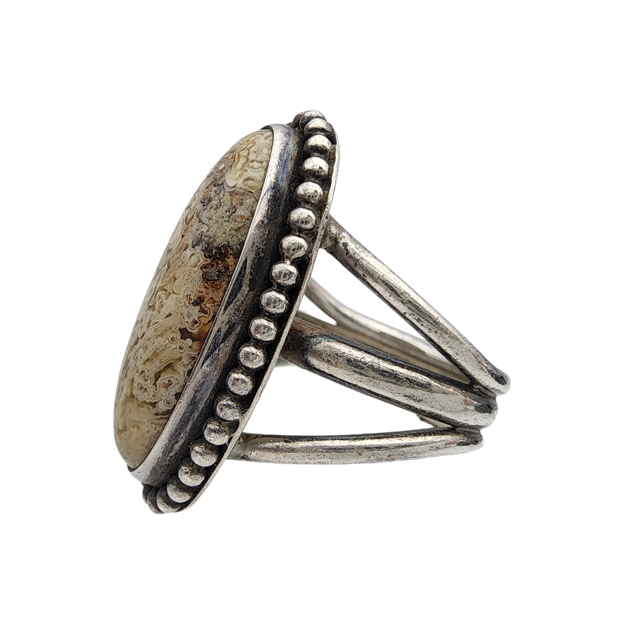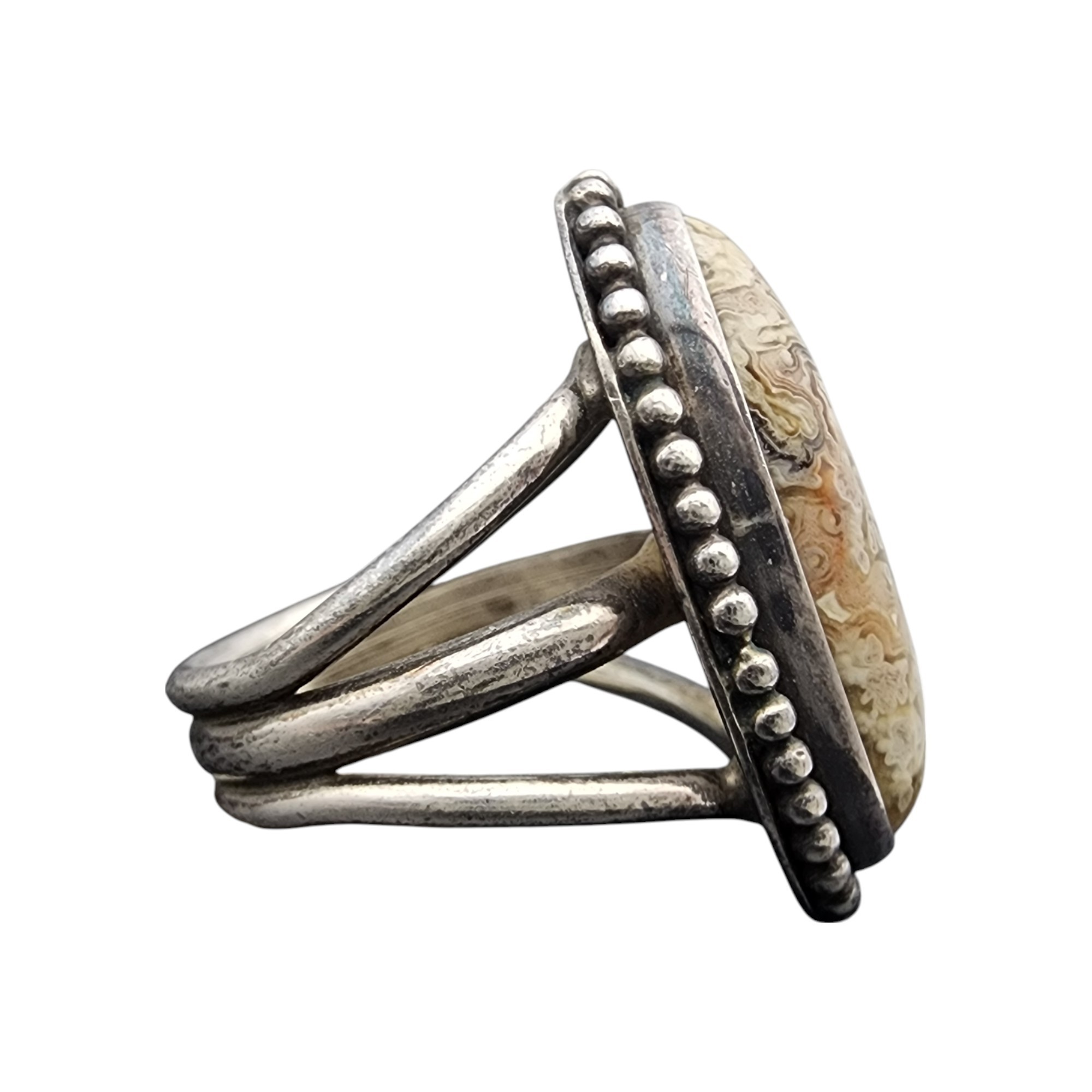 Gorgeous stone! Pictomark Signed Navajo Sterling Lace Agate Ring Sz 6.5 | 9.3g