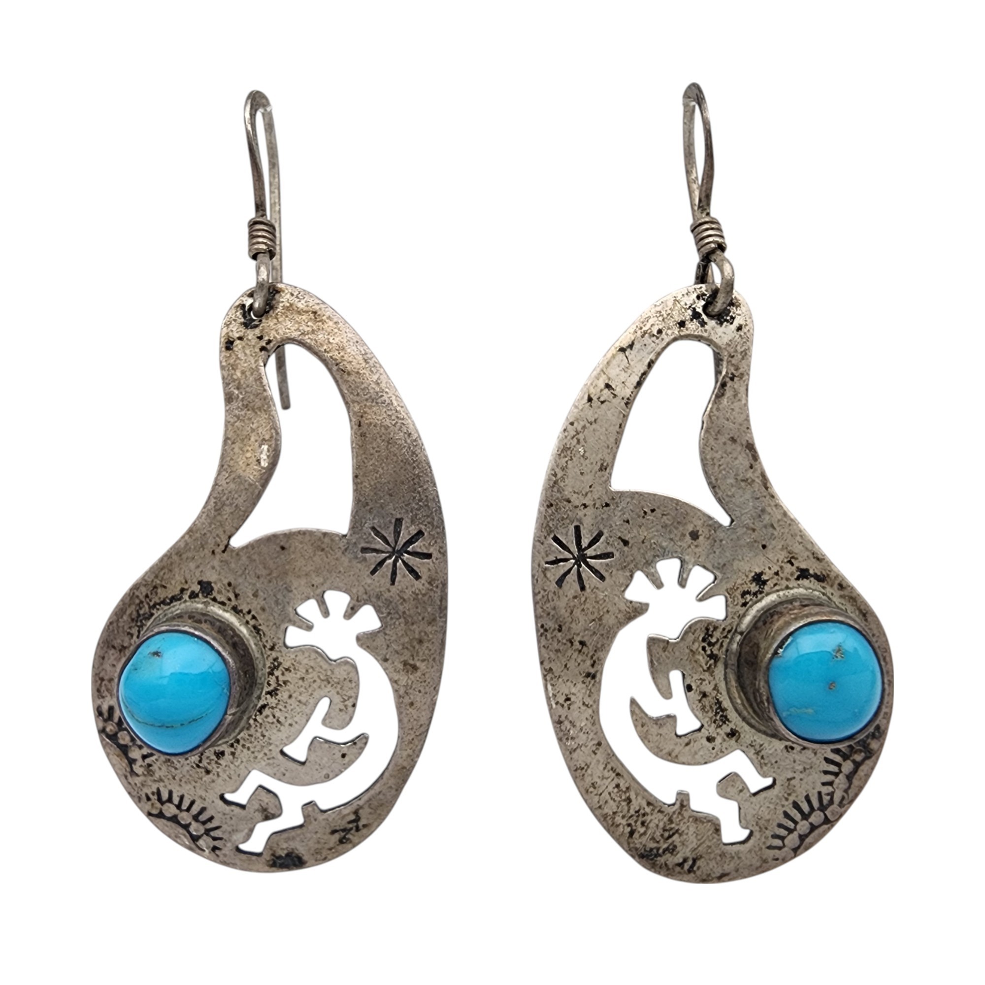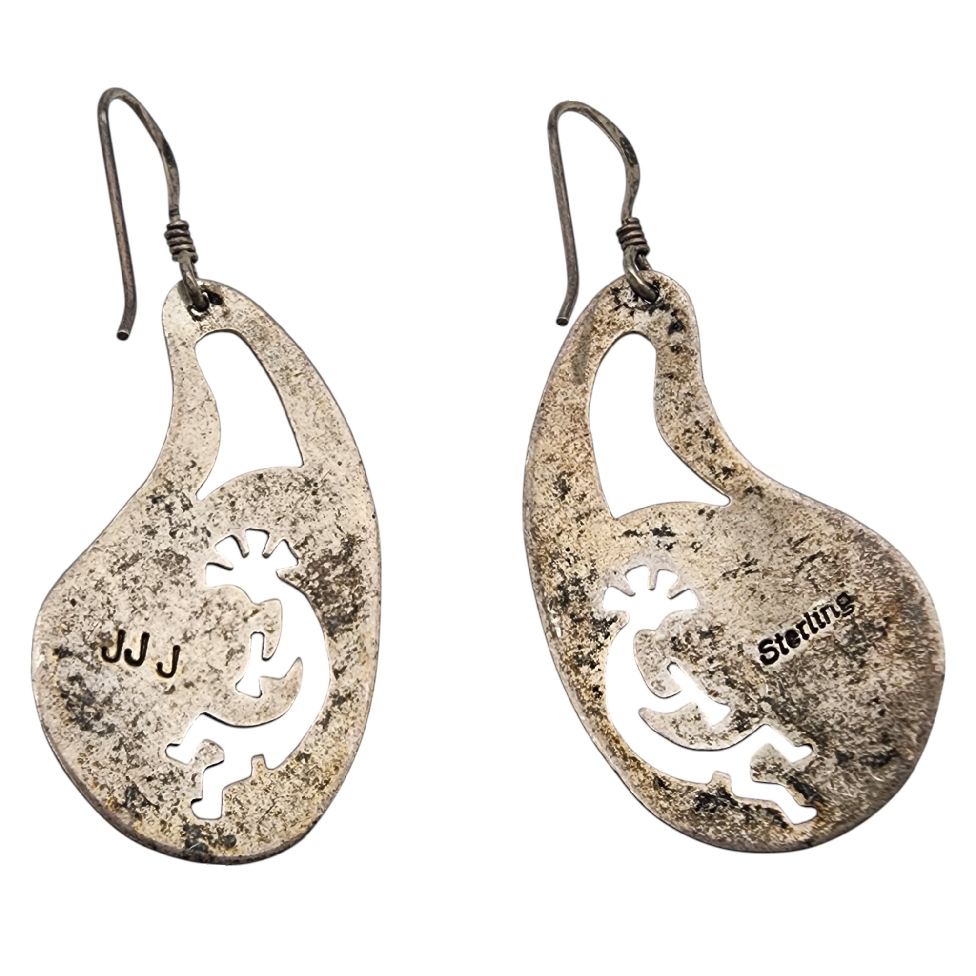Jeff James Jr Navajo Sterling Turquoise Kokopelli Earrings