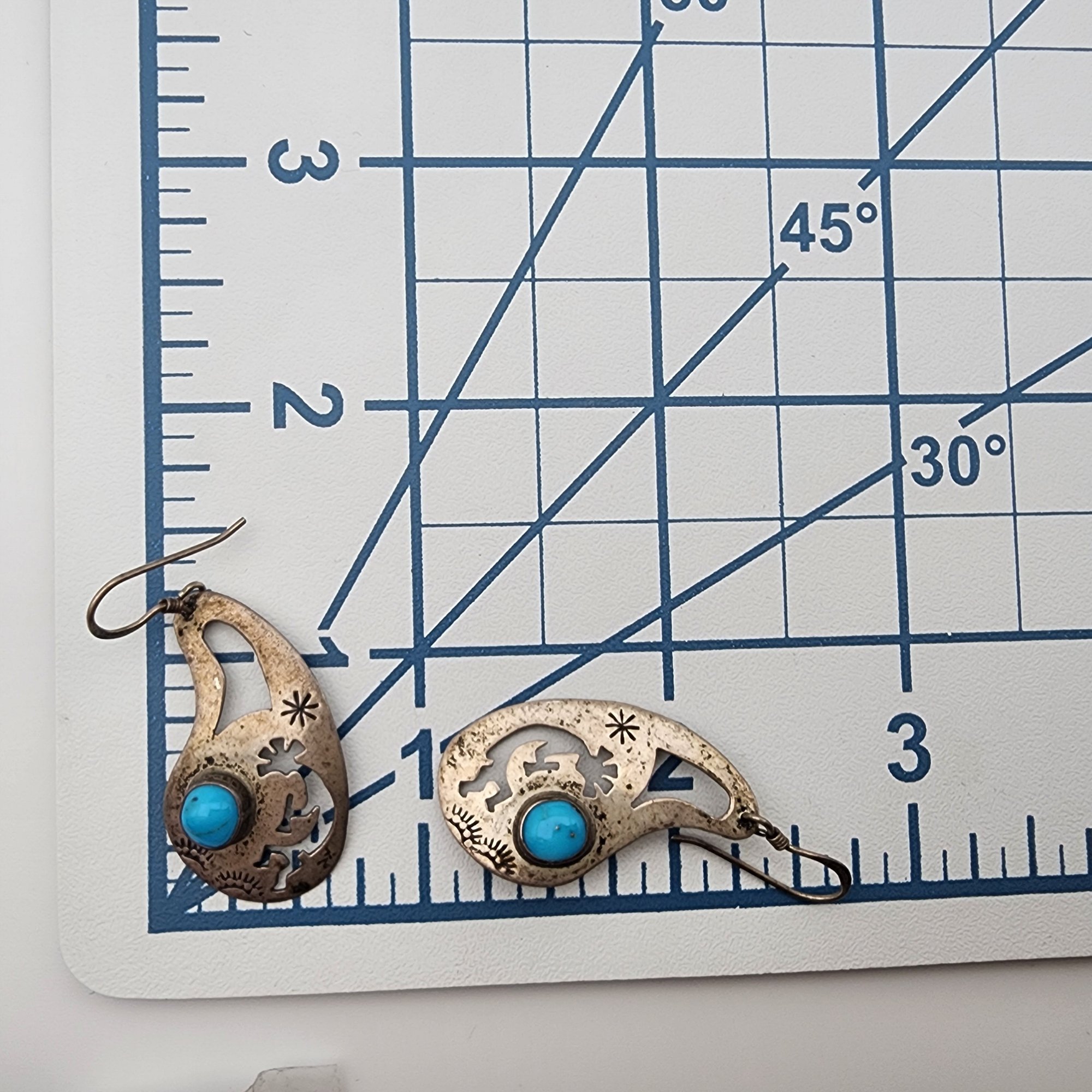 Jeff James Jr Navajo Sterling Turquoise Kokopelli Earrings | 4.5g