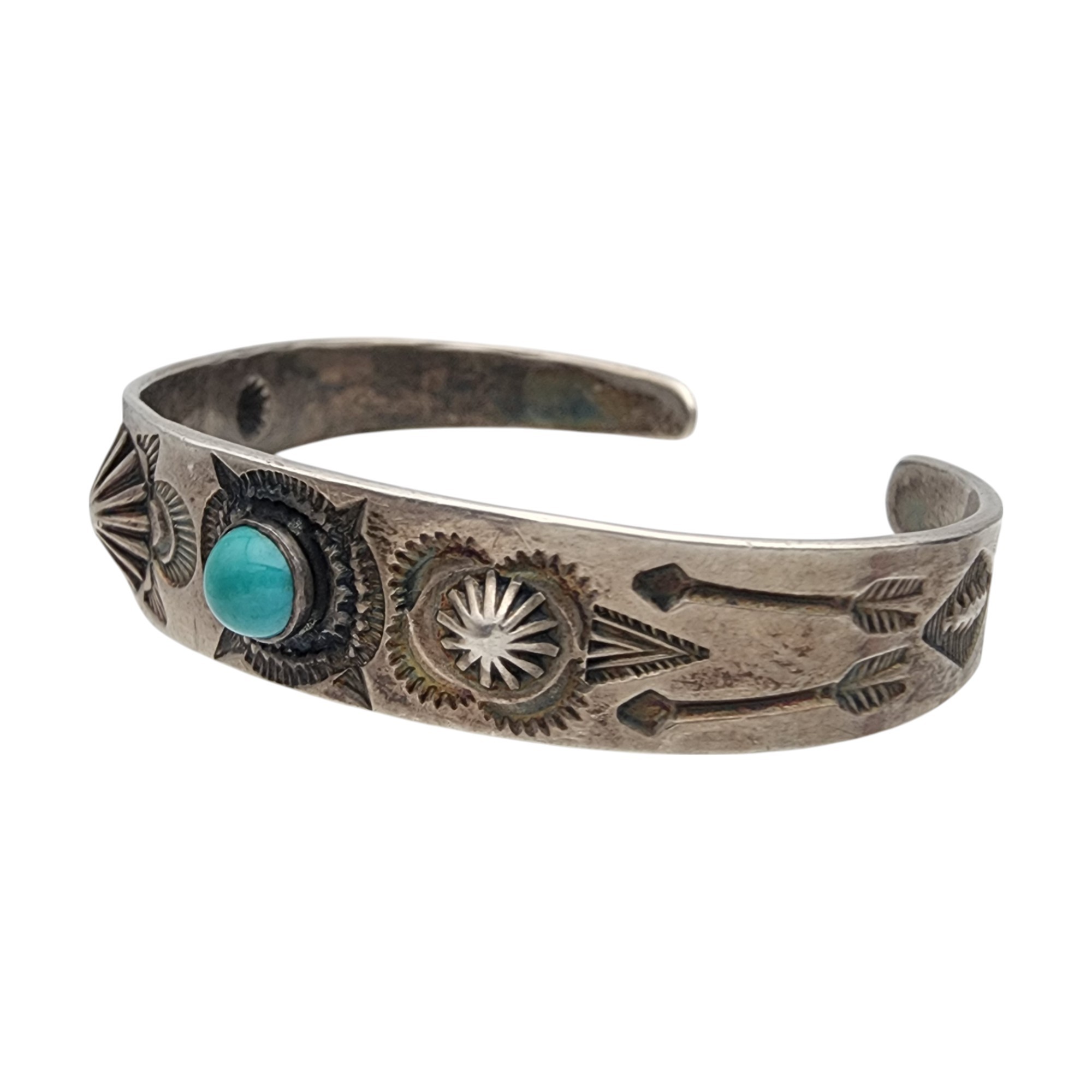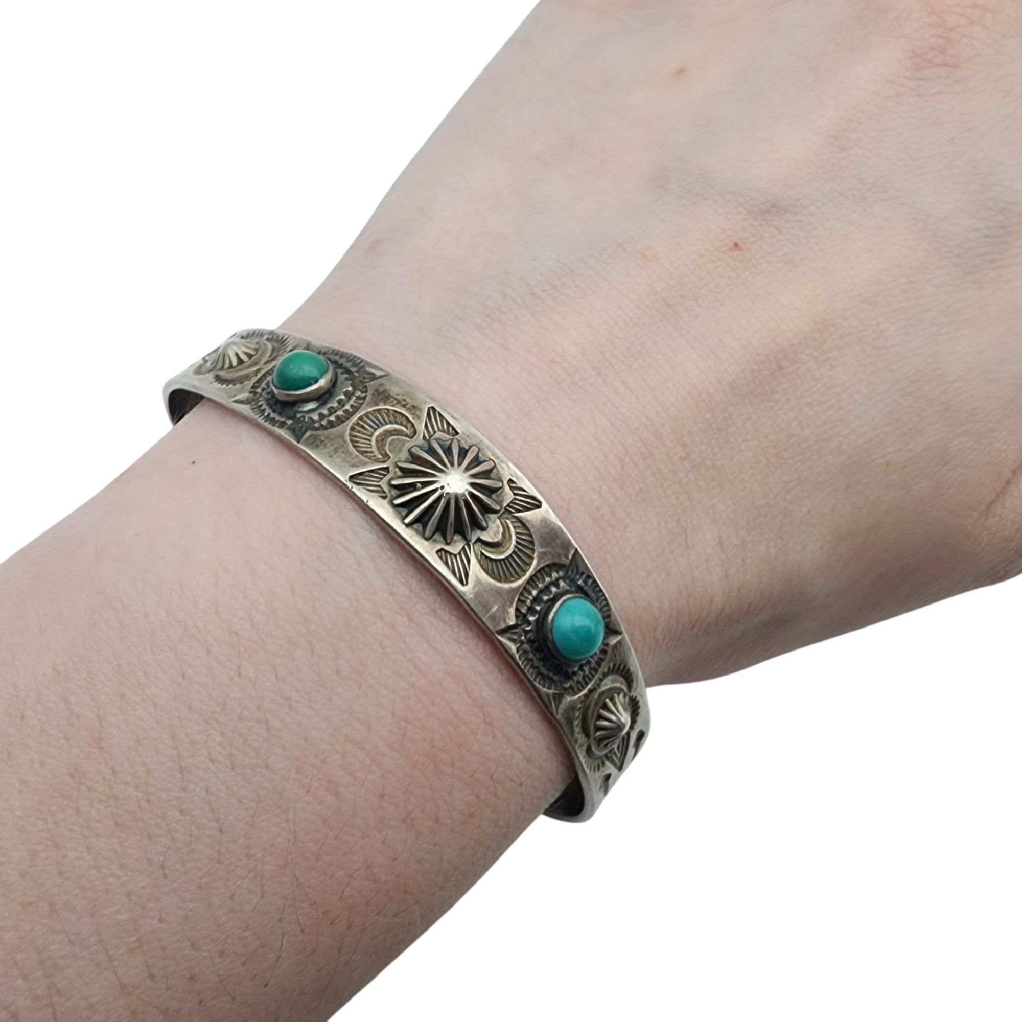 Fred Harvey Era Navajo Sterling Turquoise Cuff Bracelet | 16.3g