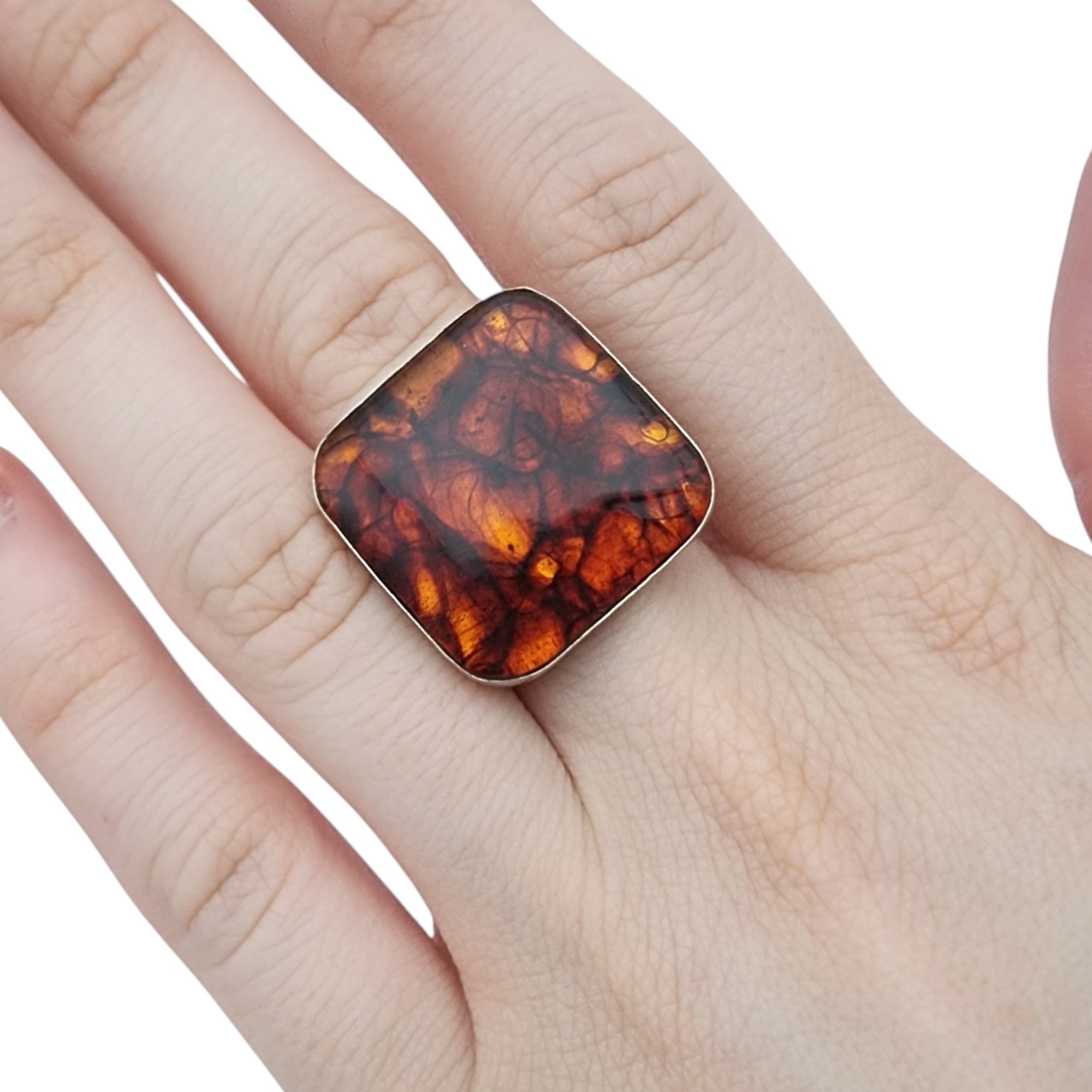 Jay King Mine Finds/Desert Rose Trading Sterling Amber Ring Sz 7 | 9.8g