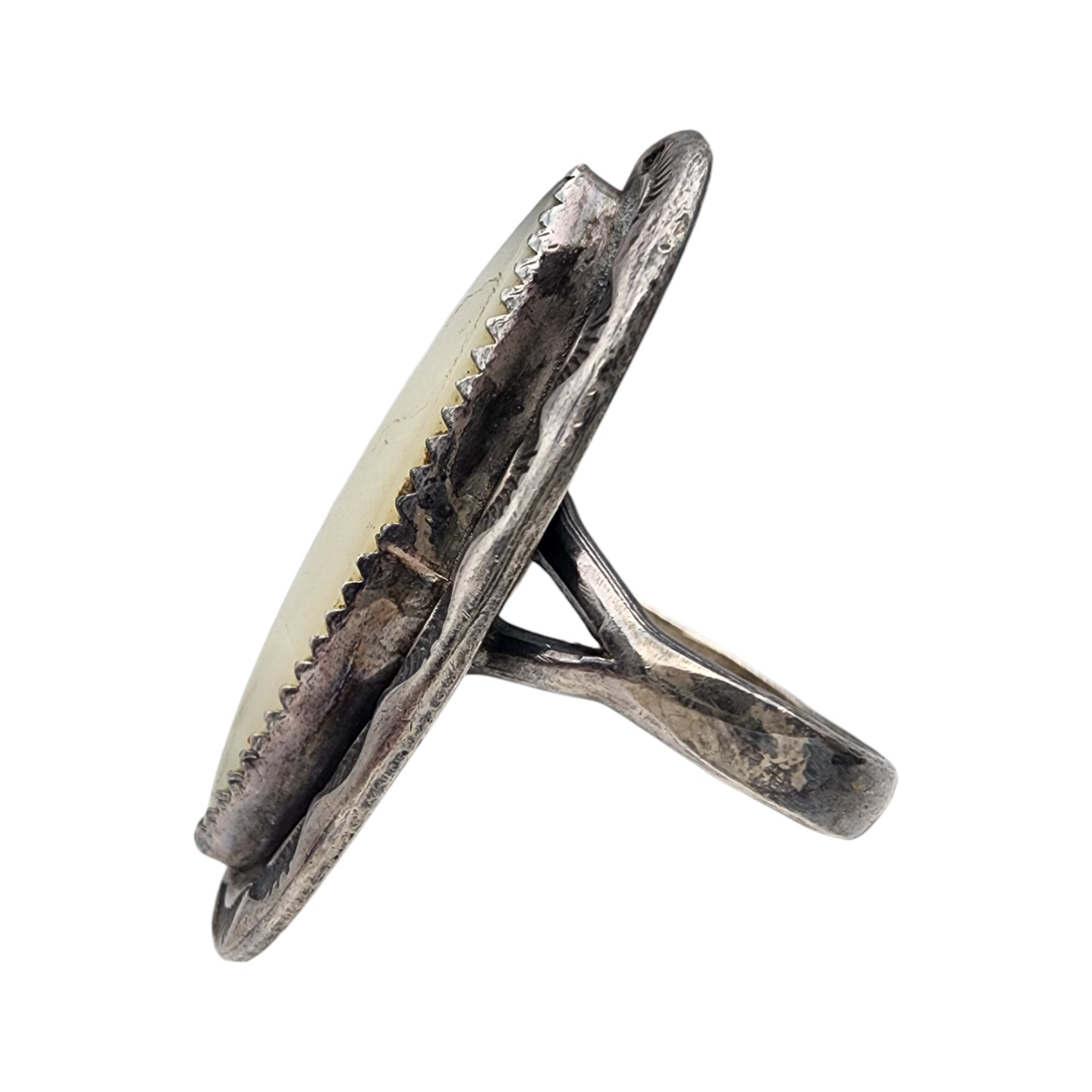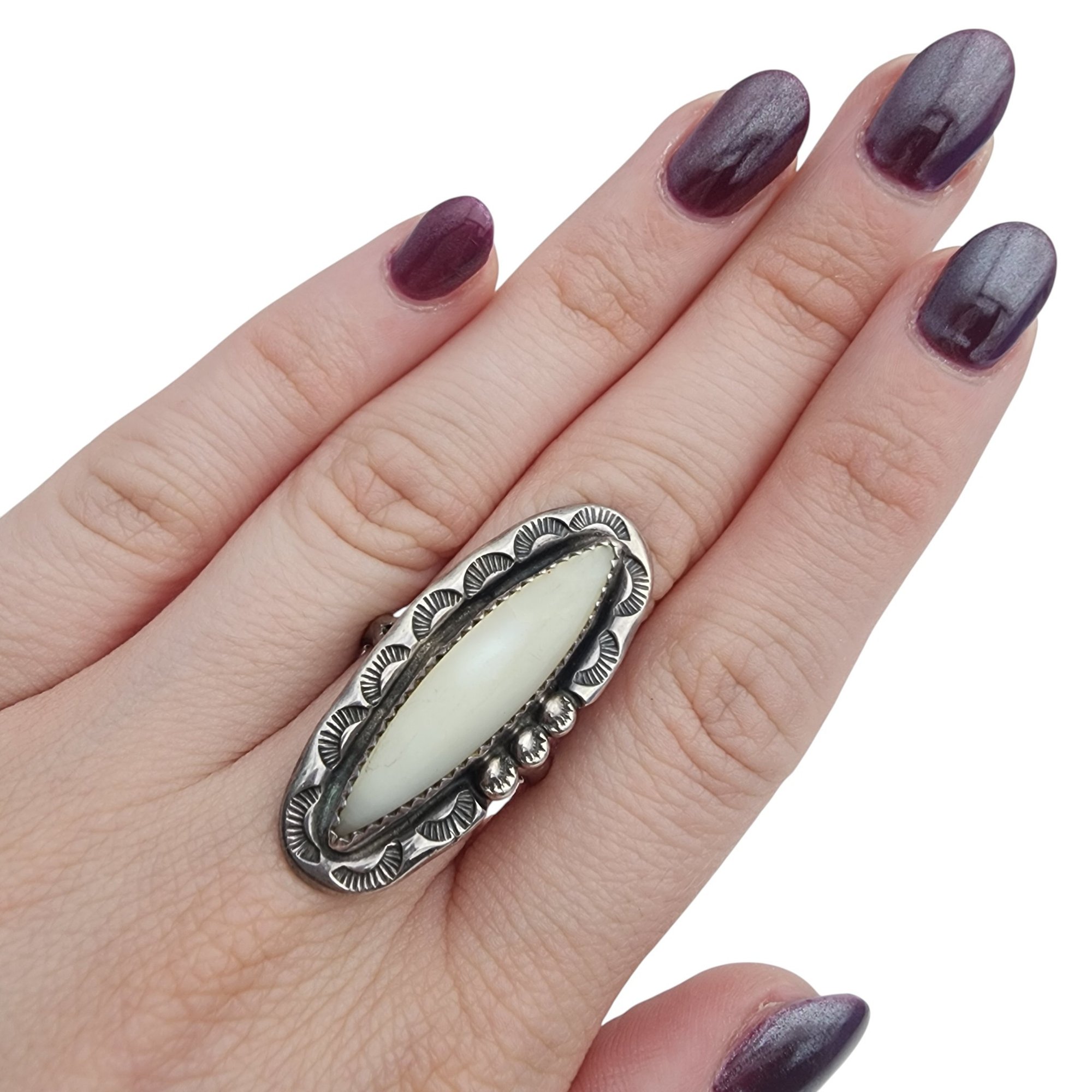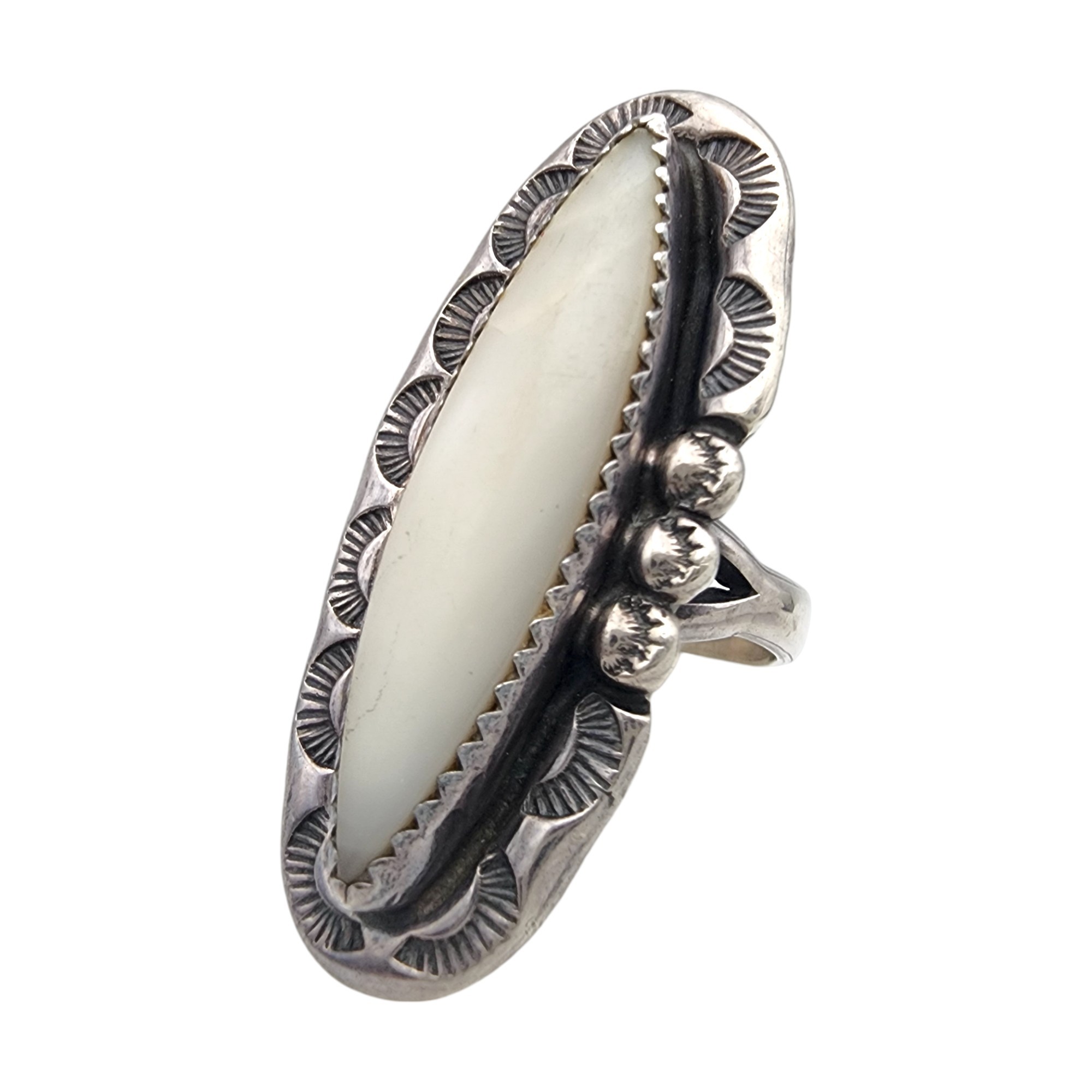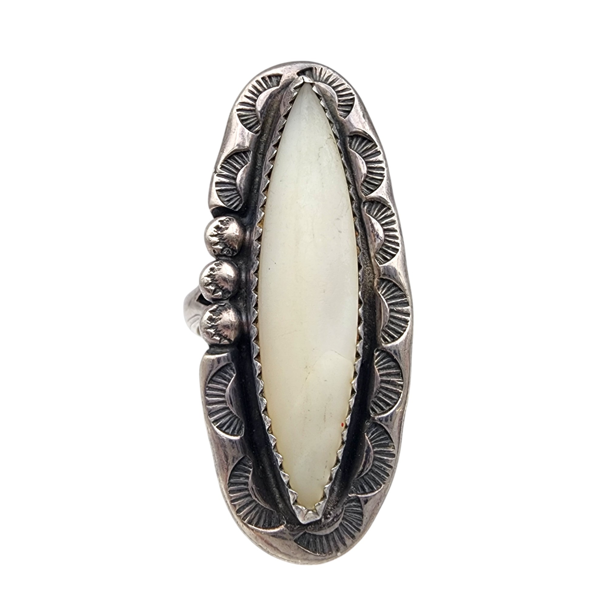 Vintage Navajo Sterling Stamped Mother of Pearl Ring Sz 8.5 | 10.2g