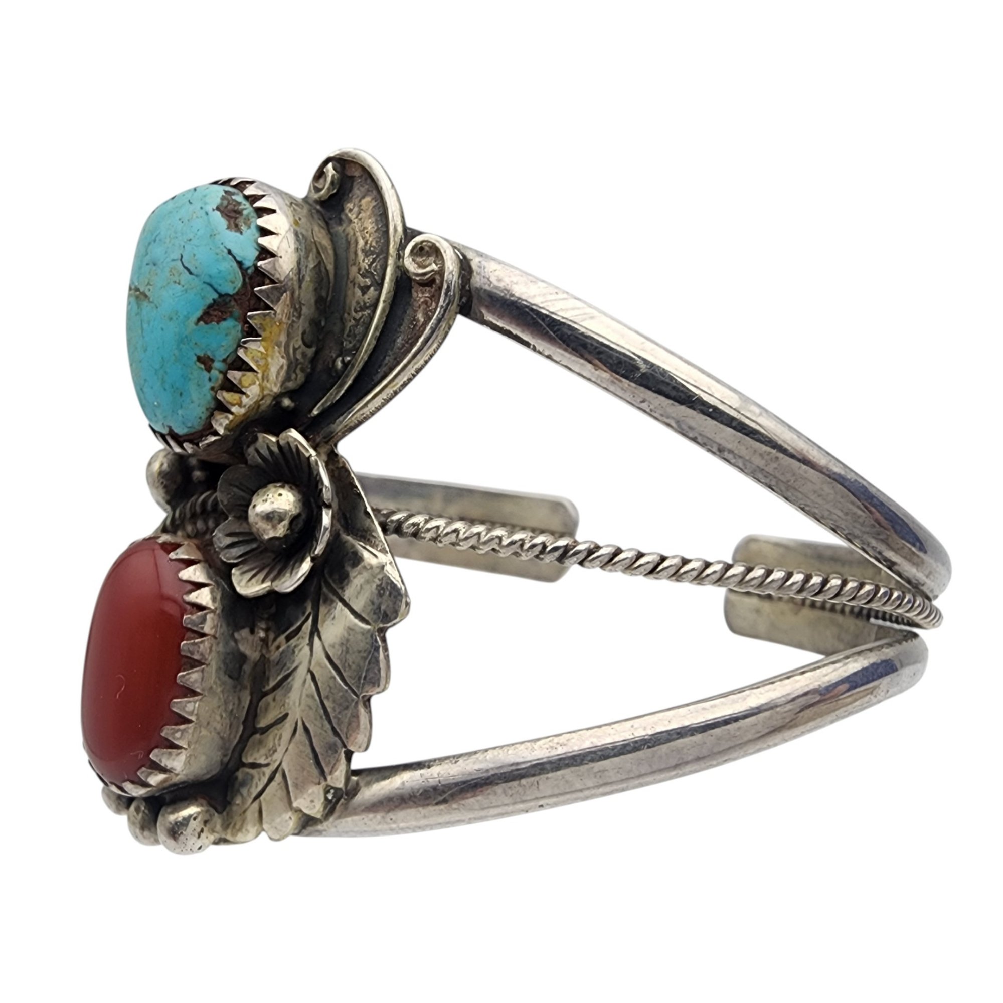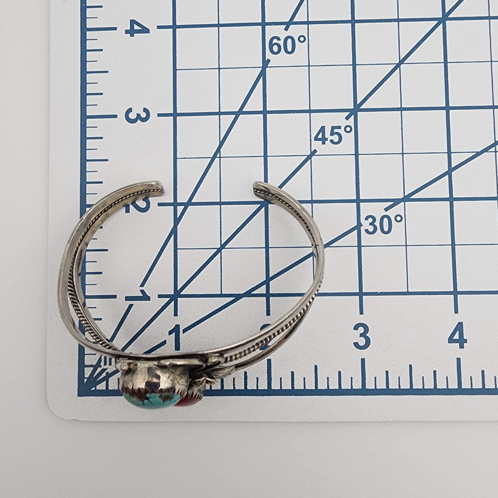 Vintage Navajo Turquoise and Coral Cuff Bracelet