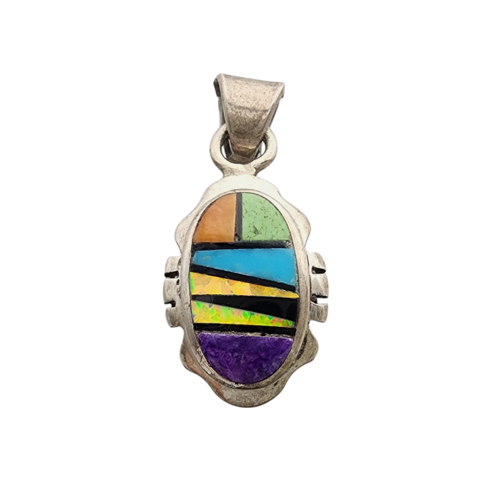 Ervin Hoskie Navajo Sterling Multistone Inlay Pendant | 3.3g
