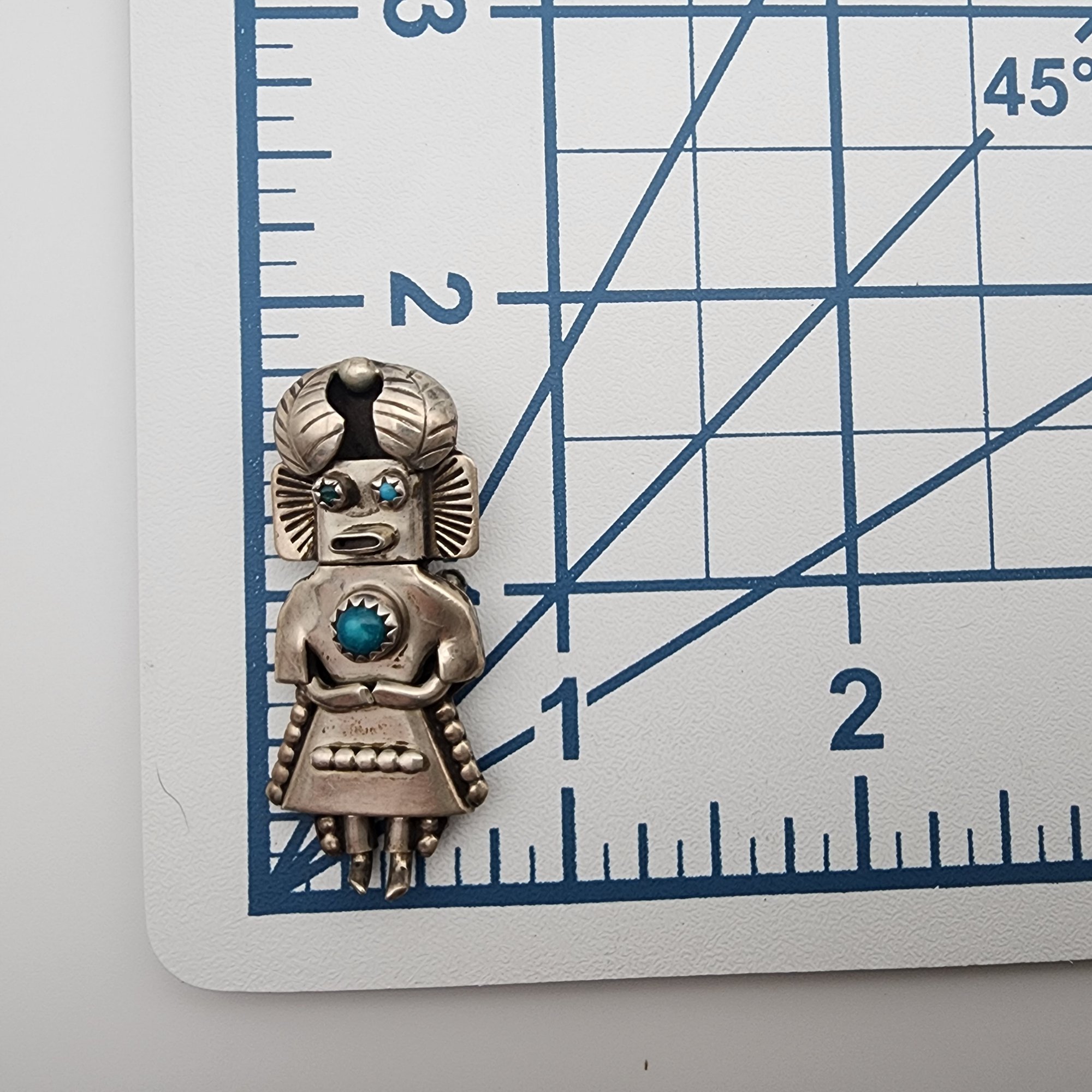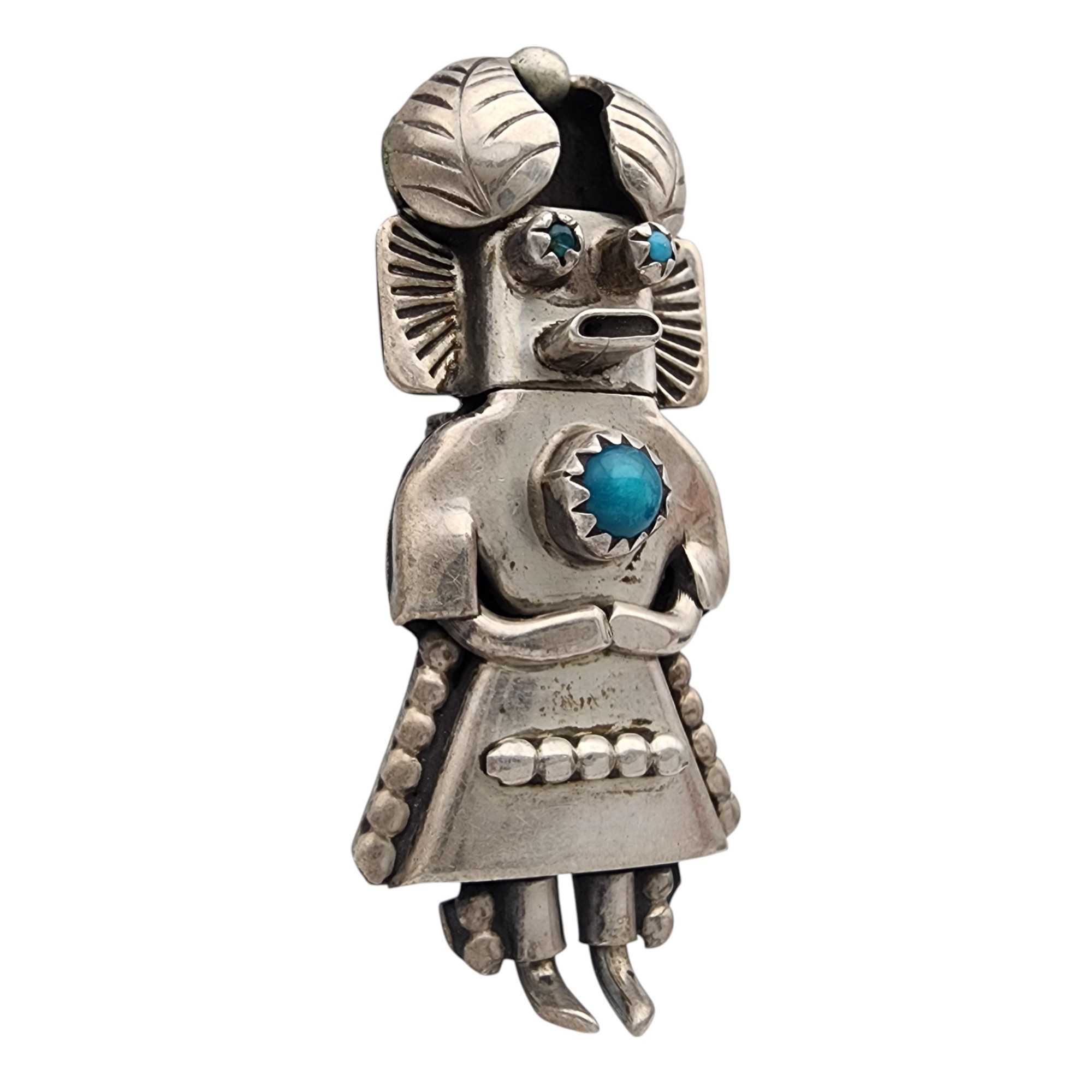 Orville Manygoats Navajo Sterling Turquoise Kachina Doll Pendant Brooch | 7.8g