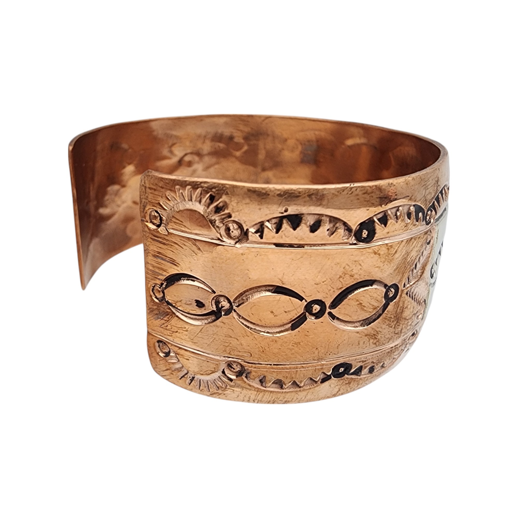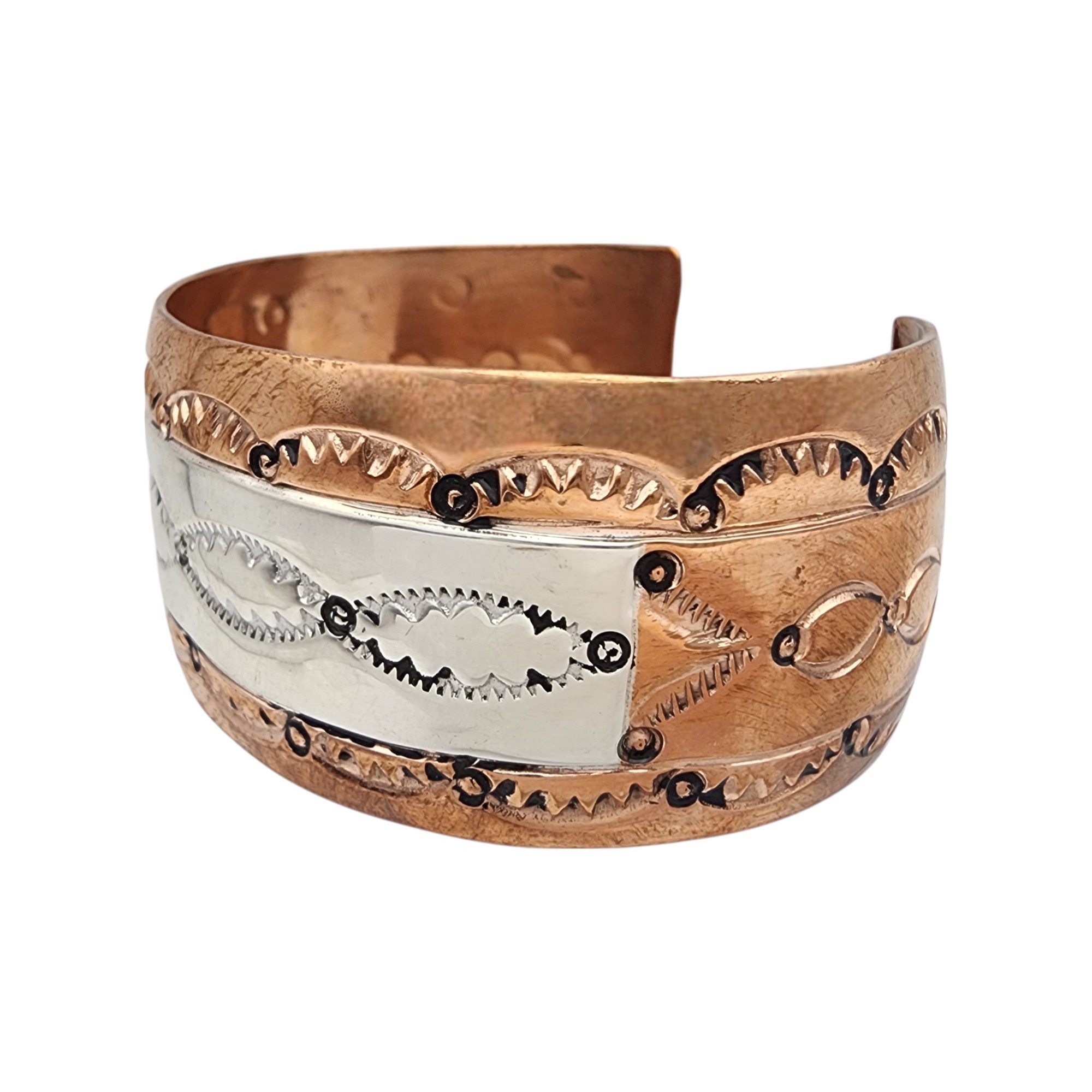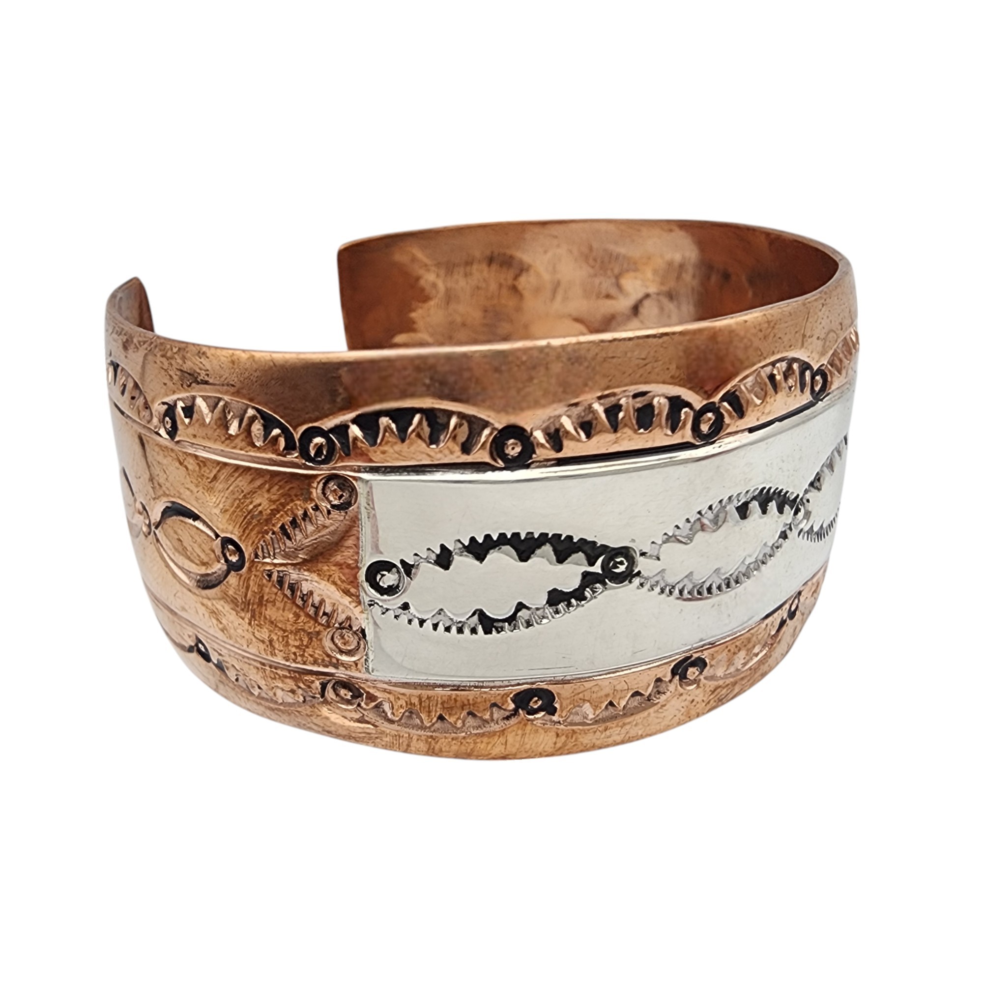 Charlene & Robert Little Navajo Sterling Copper Stamped Cuff Bracelet | 37.8g