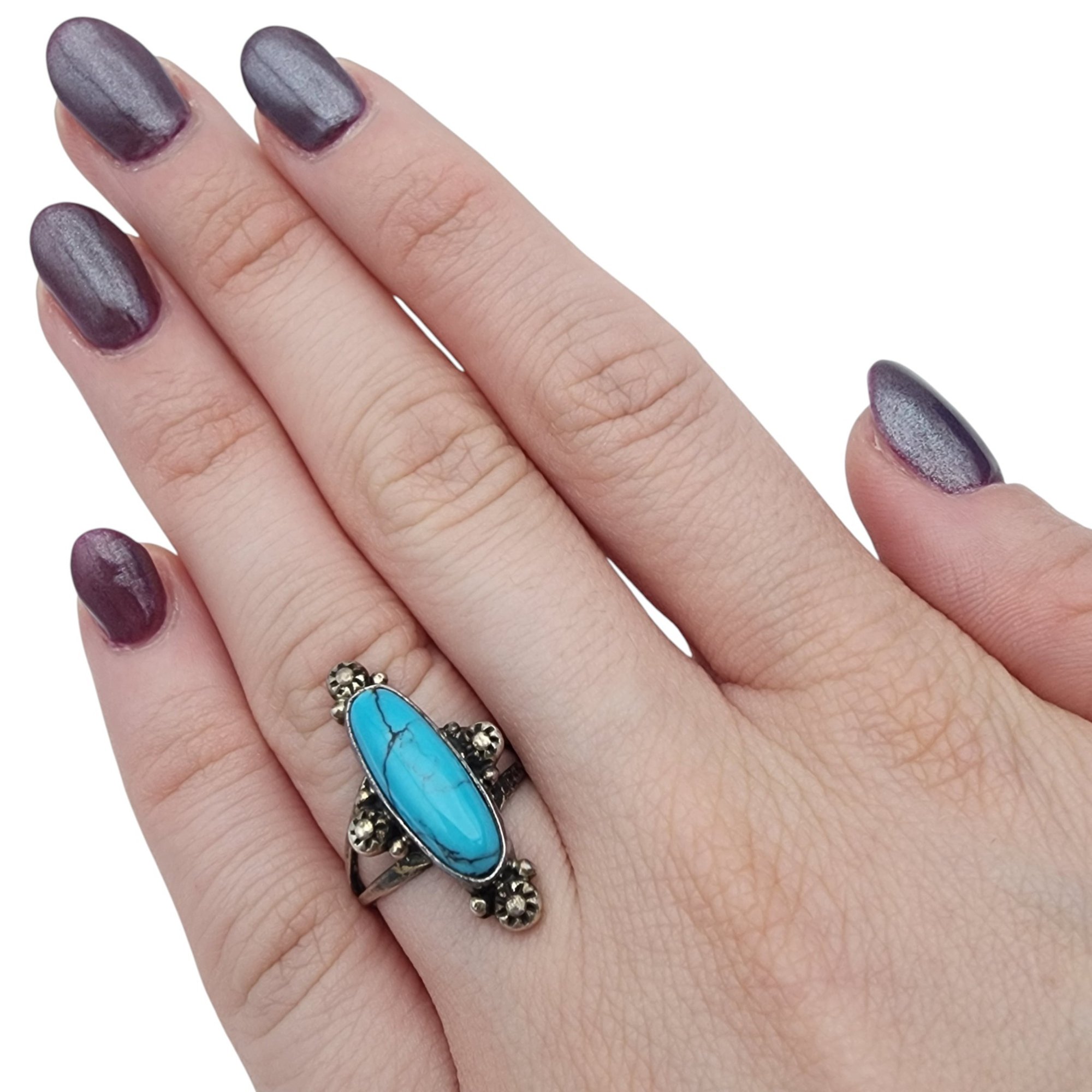 Rayna Platero Secatero Navajo Sterling Turquoise Ring Sz 6 | 4.3g