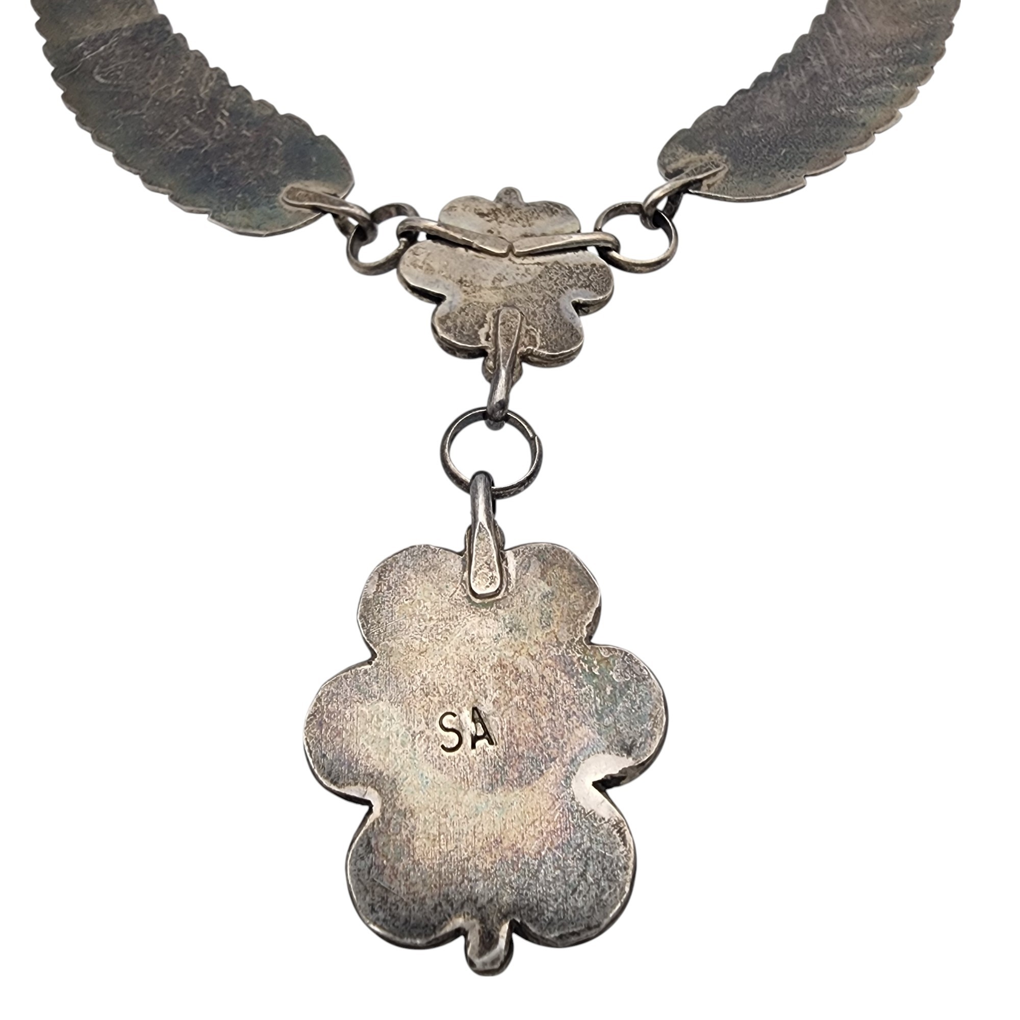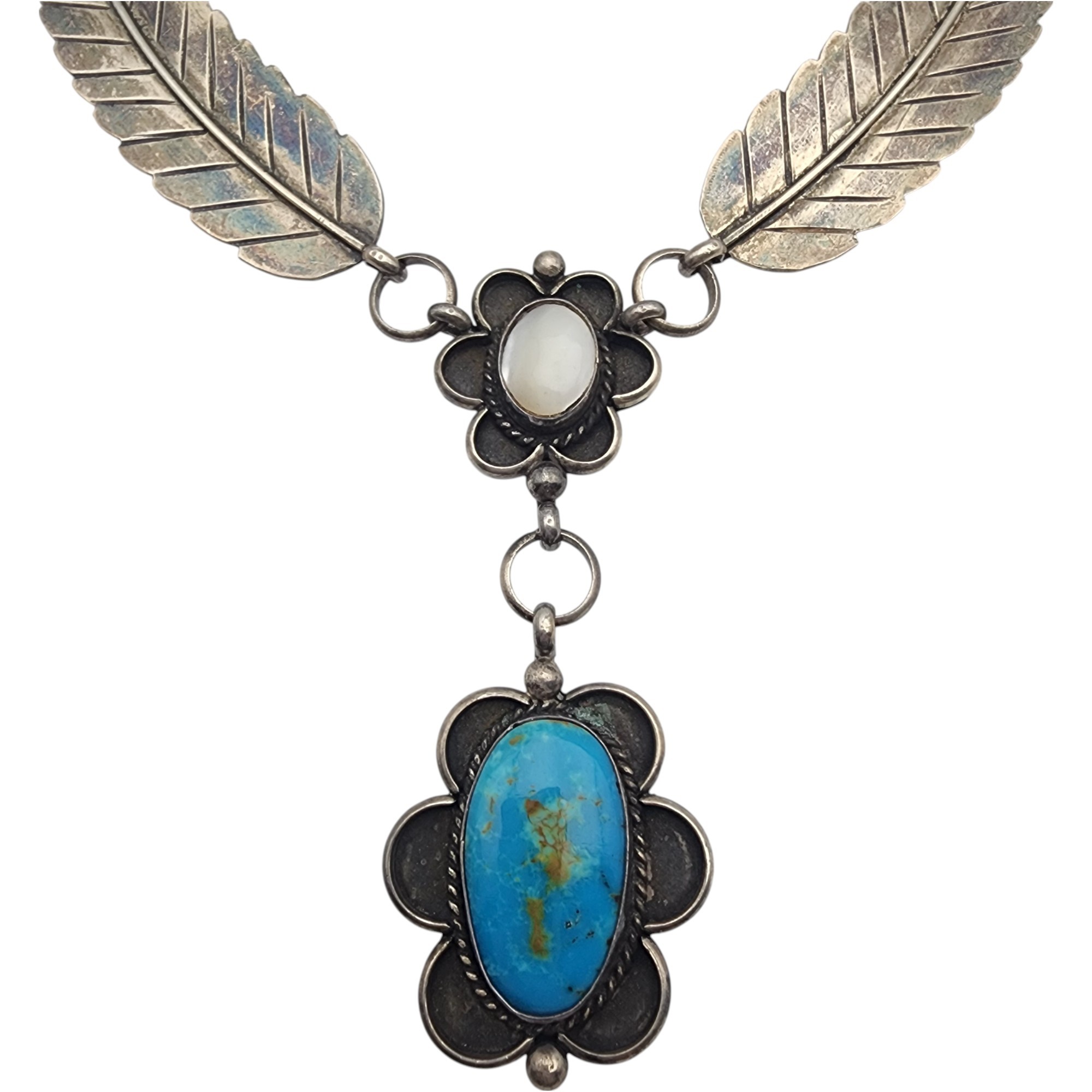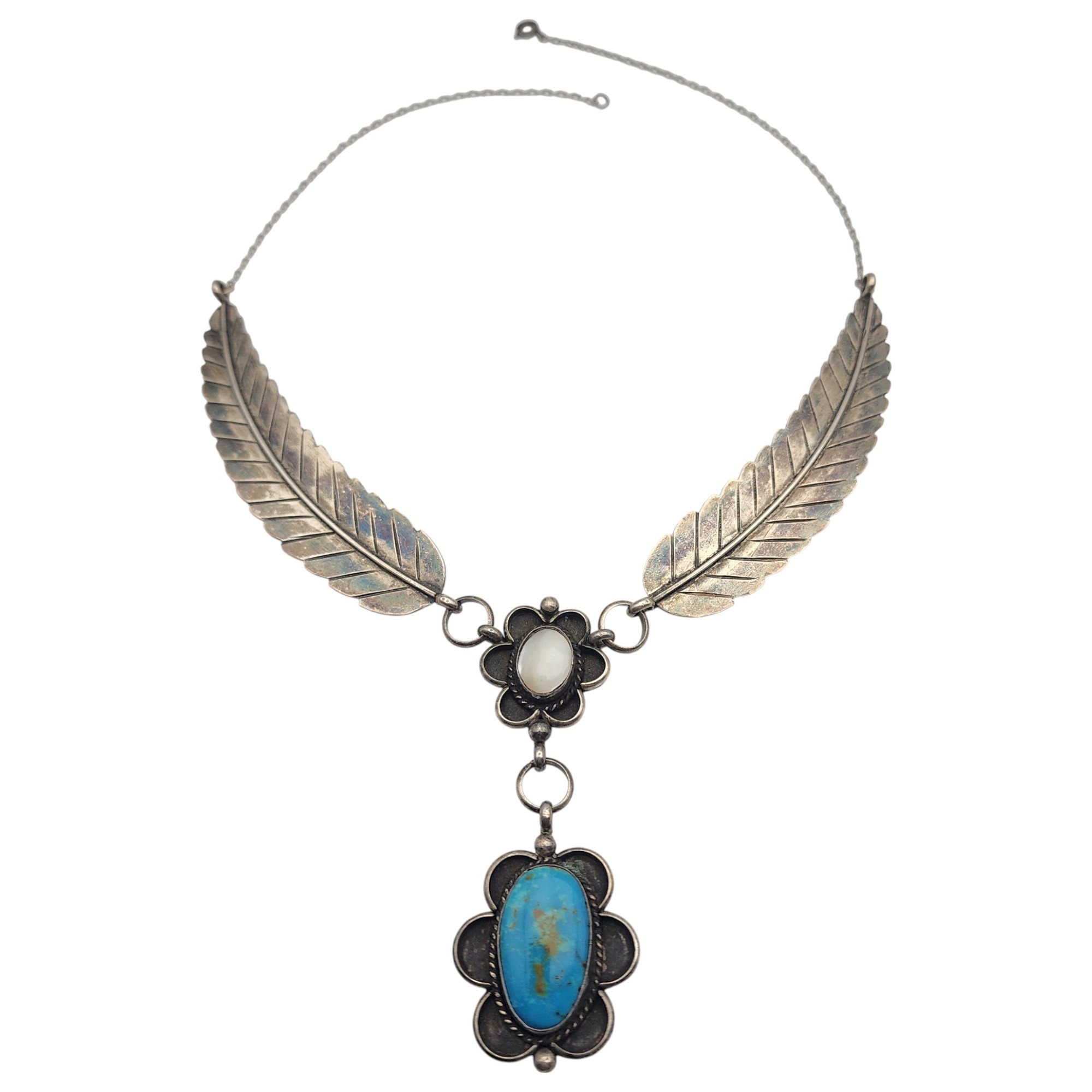 Steven Apache Navajo Sterling Turquoise & Mother of Pearl Feather Necklace | 42.6g