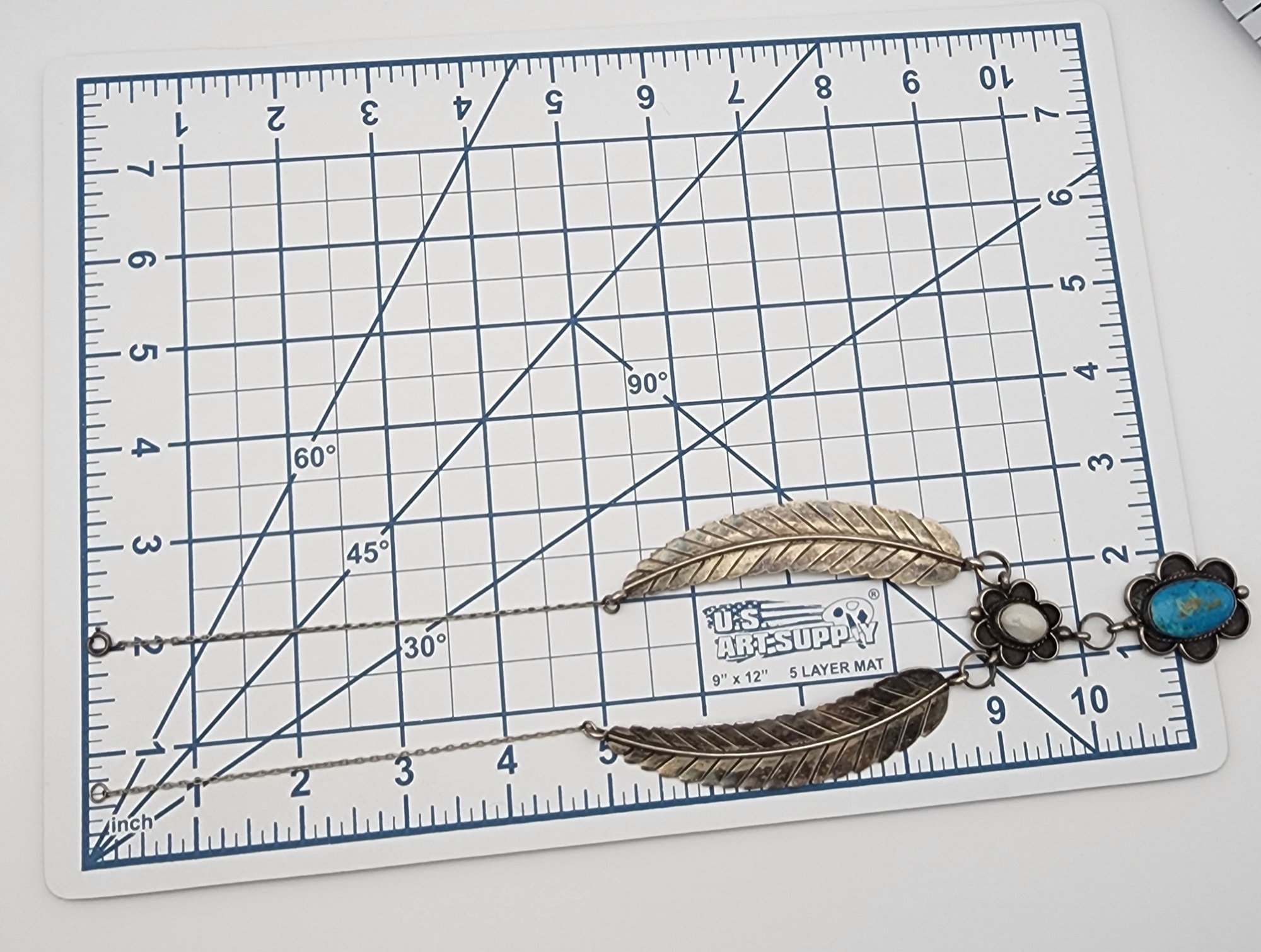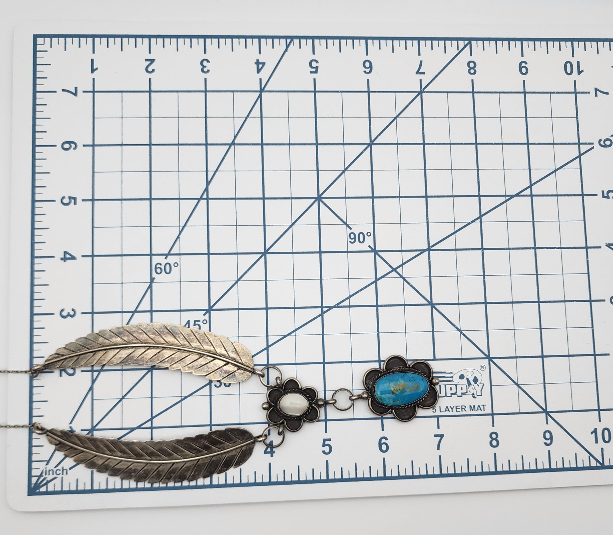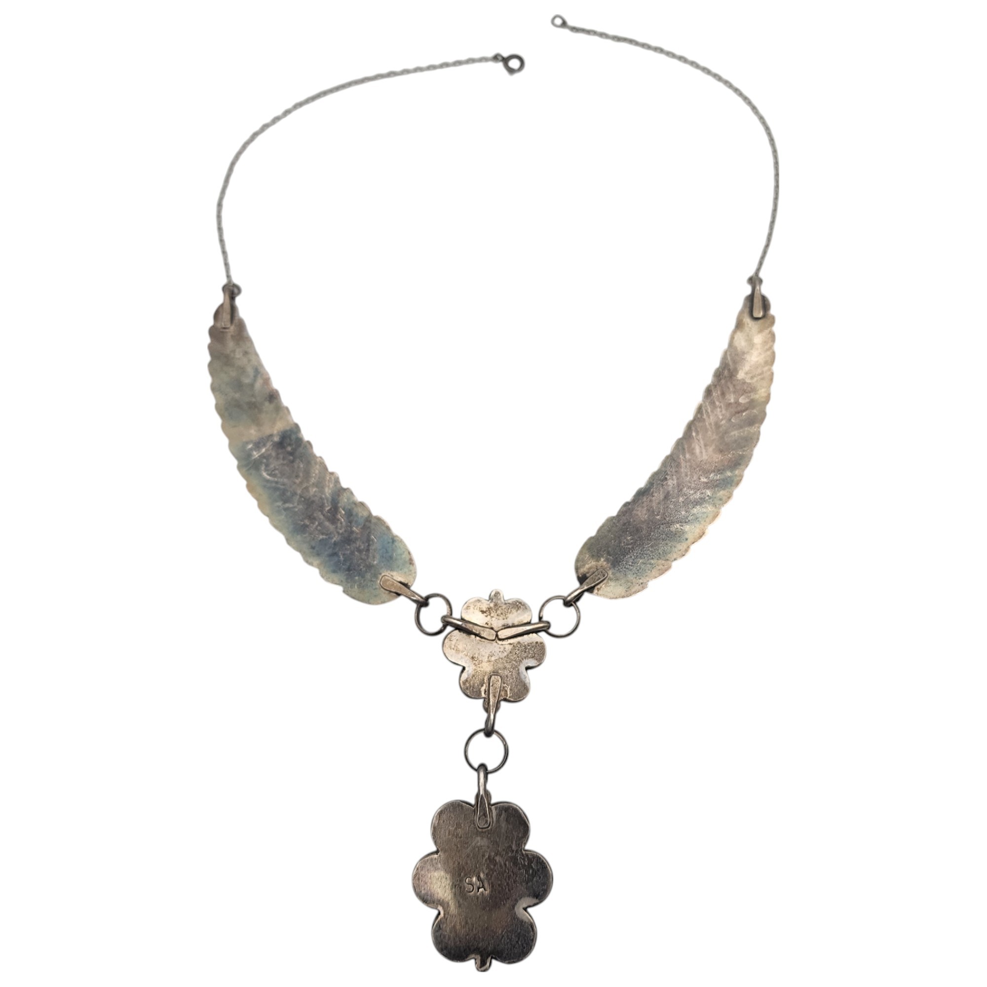 Steven Apache Navajo Sterling Turquoise & Mother of Pearl Feather Necklace | 42.6g