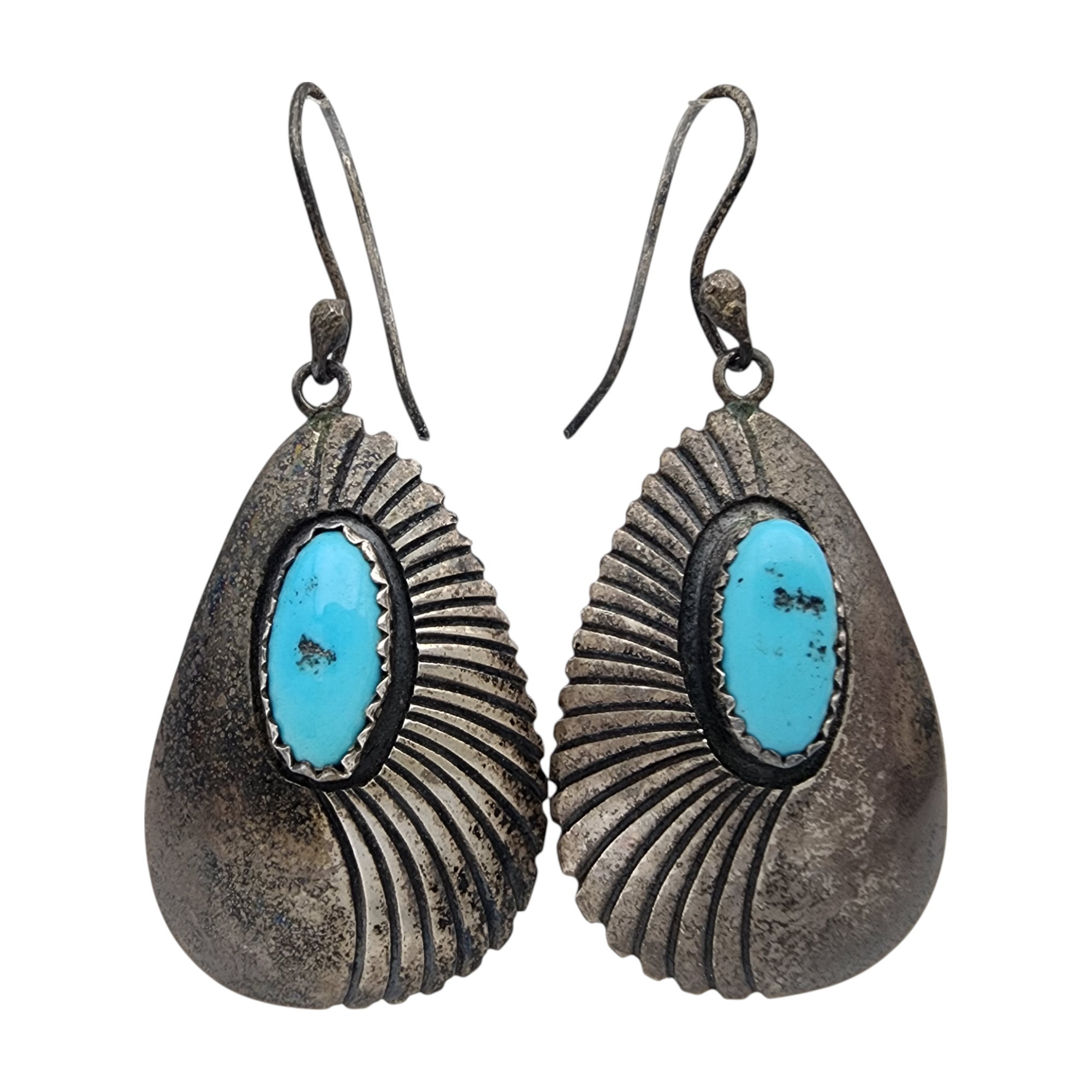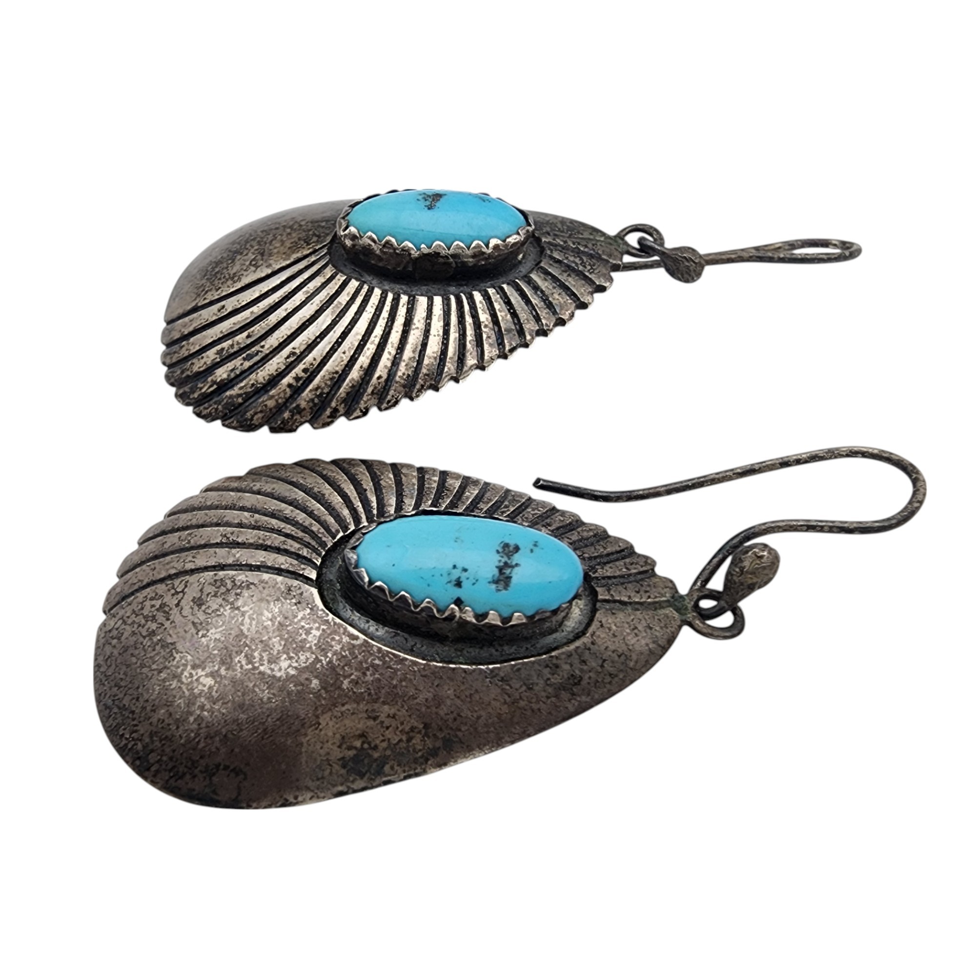 Vintage Navajo Sterling Turquoise Earrings | 11.9g